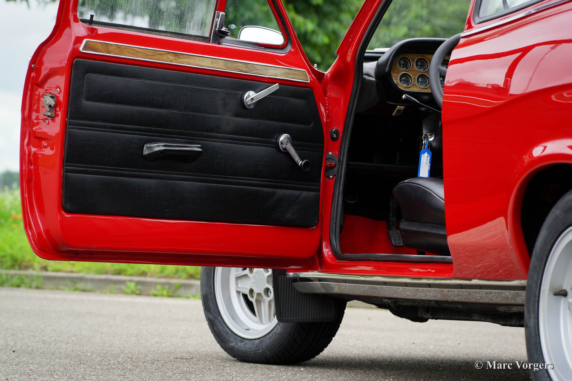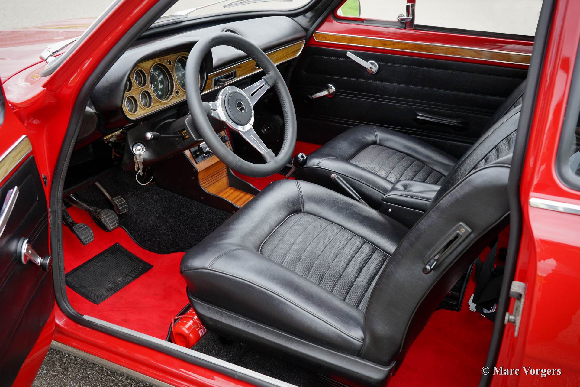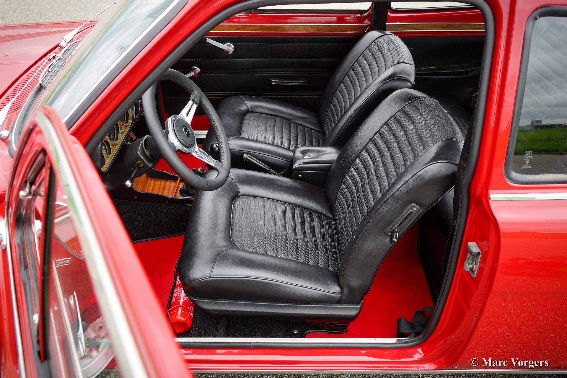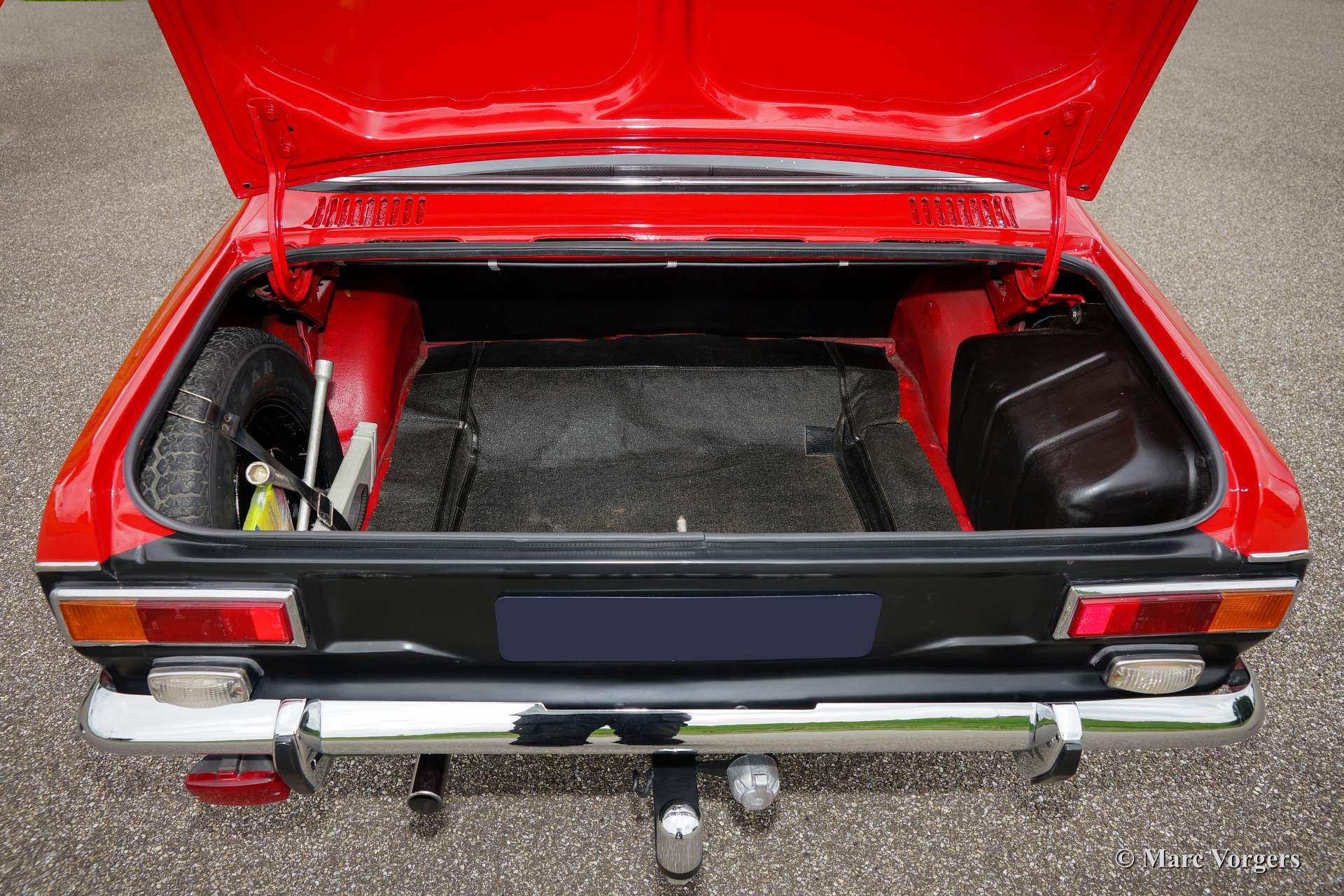 Ford Escort 1300 GT Mk I, year 1973. Colour red with a black leatherette interior and red carpet. This fantastic Ford Escort was extensively restored recently. The car is in excellent condition and the car drives, steers, brakes and handles perfectly. The car looks like new! This Escort GT was sold new in Portugal, very interesting because the beautiful red colour was only available in Portugal! This Escort 1300 GT features the original 75 bhp. HC (high compression) engine. The Escort was available as 2 or 4 door model, this 2-door version certainly looks most sporty! The car features Ford light alloy wheels and a beautiful leather rimmed MotoLita sports steering wheel. The original steering wheel and the original wheels (restored) with hub caps are also present! This is a delightful classic car with simple and robust mechanics. The car is very suitable for historic (touring) rallyes and regularity events.