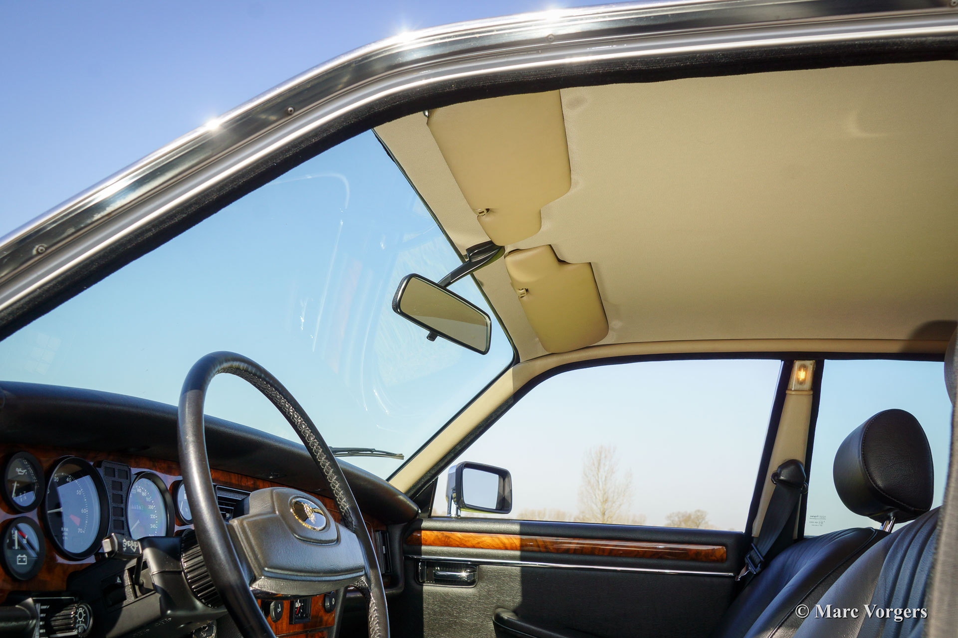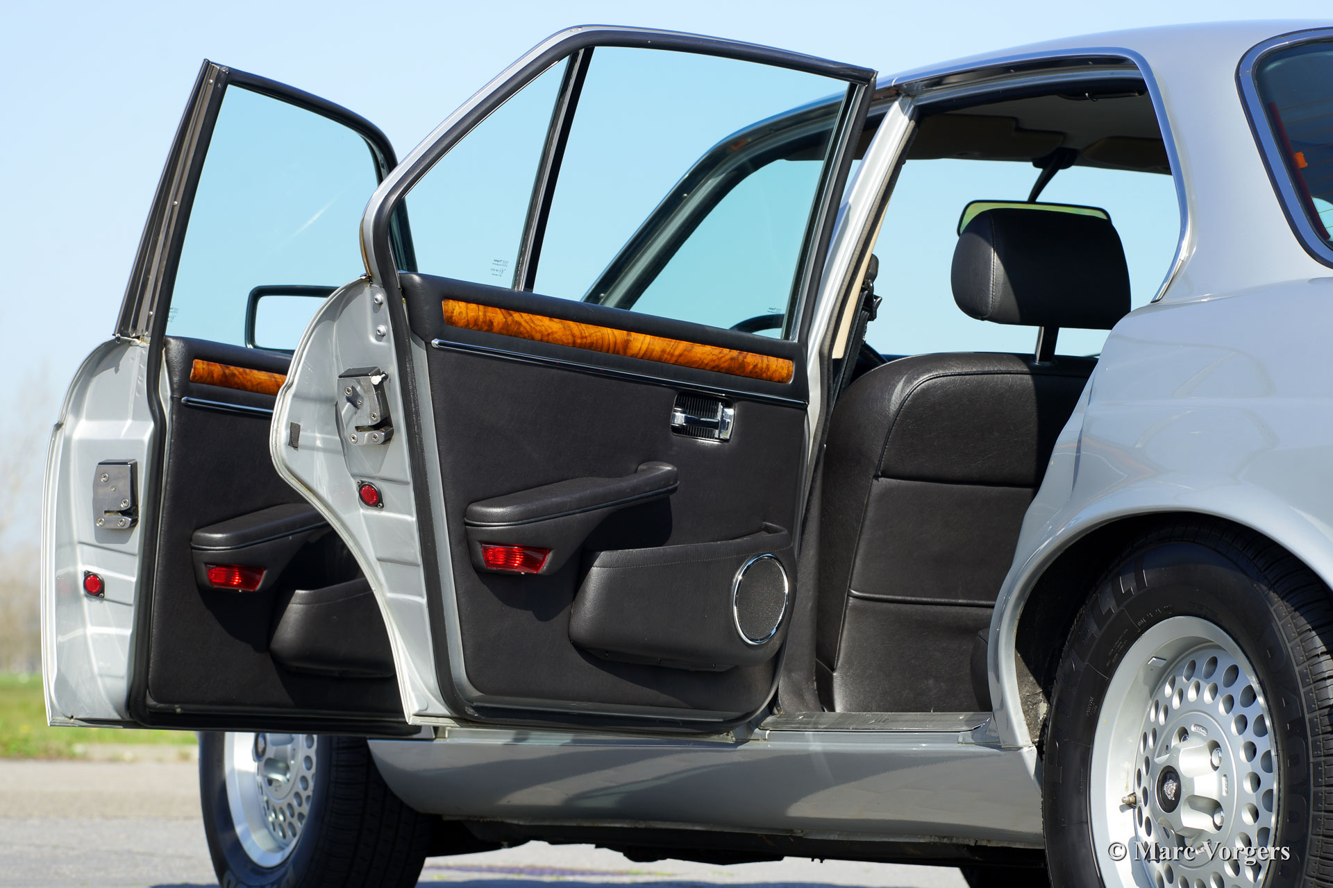 Jaguar XJ12 Sovereign LWB, year 1987. Colour silver metallic with a black leather interior and grey carpet. This beautiful Jaguar XJ12 is in excellent original condition, like new! The Jaguar has known only two owners, and the car has driven 145.000 kilometres from new. The durable V12 engine and the automatic gearbox feel like they have been just run in. This XJ12 with long wheelbase (LWB) offer ample space for the passengers in the rear. The car shows only the tiniest signs of use, very remarkable! This fine XJ12 Sovereign features original alloy ‘pepperpot’ wheels and the original toolset is present.