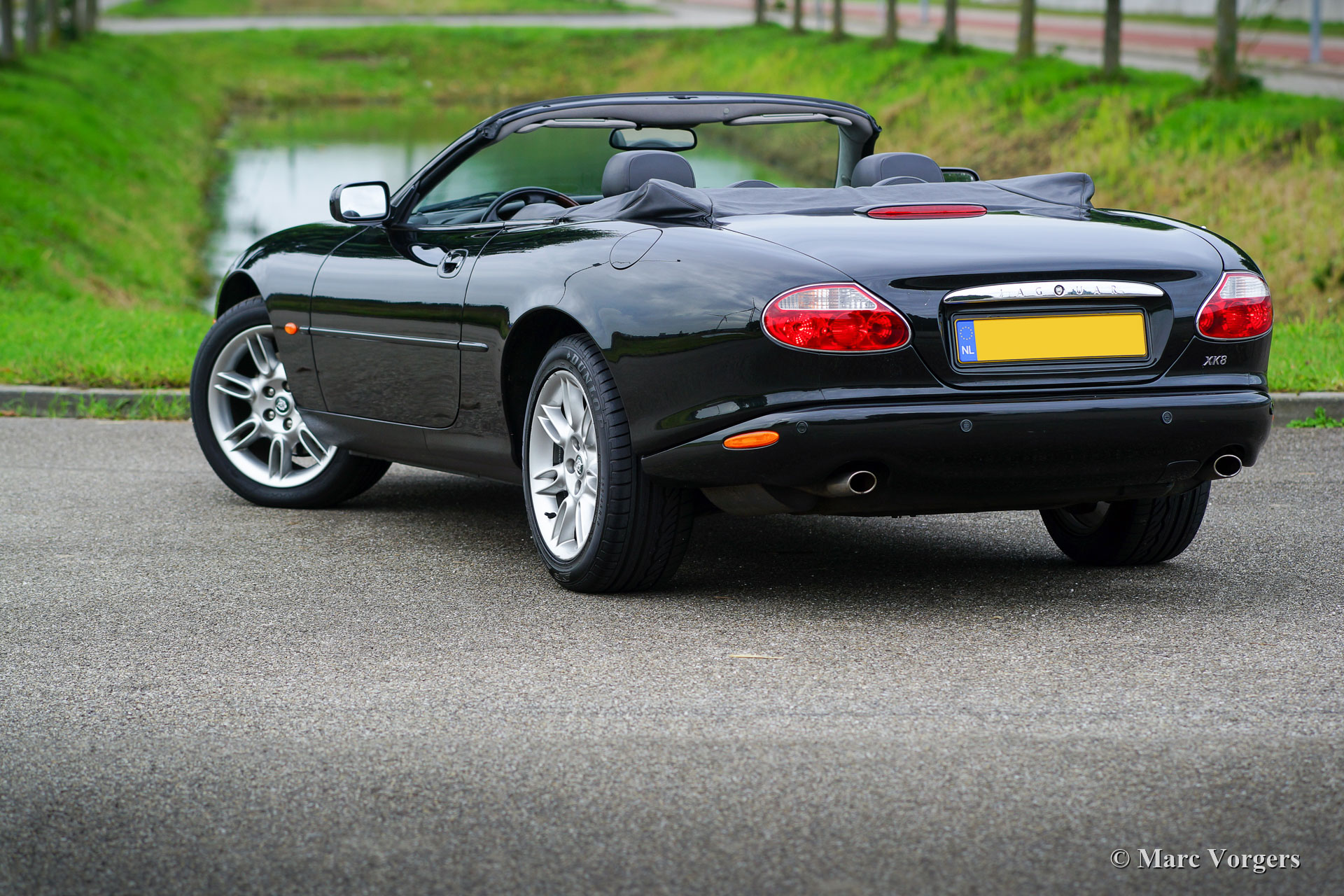 Jaguar XK8 Convertible, year 2001. Colour black metallic combined with a black leather interior and a black hood. This gorgeous Jaguar XK8 has driven 173.000 kilometres from new. The Jaguar is in very good original condition and the car drives perfectly. The 4.0 Litre V8 engine is a sheer delight with its about 300 horsepower. The Jaguar XK8 shows its British pedigree by its shape which hints to the legendary Jaguar E-type. The interior offers all comfort and luxury one may need in a top-class sports car. A special British ‘touch’ is the walnut dashboard with the many clocks and gauges. The Jaguar XK8 features power steering, power windows, an automatic, electrically powered, hood and factory fitted 18-inch alloy wheels.