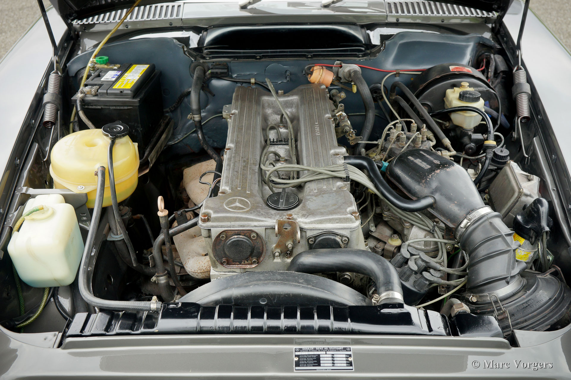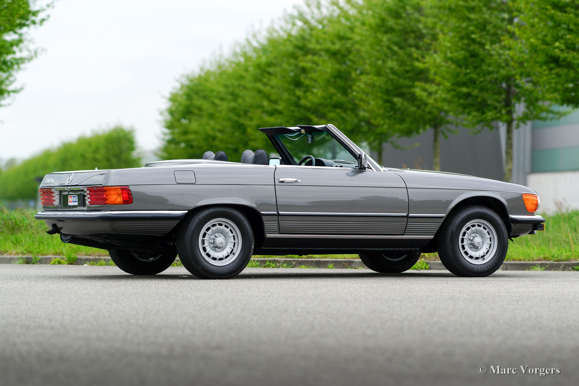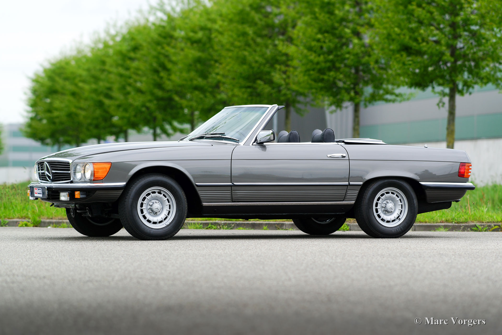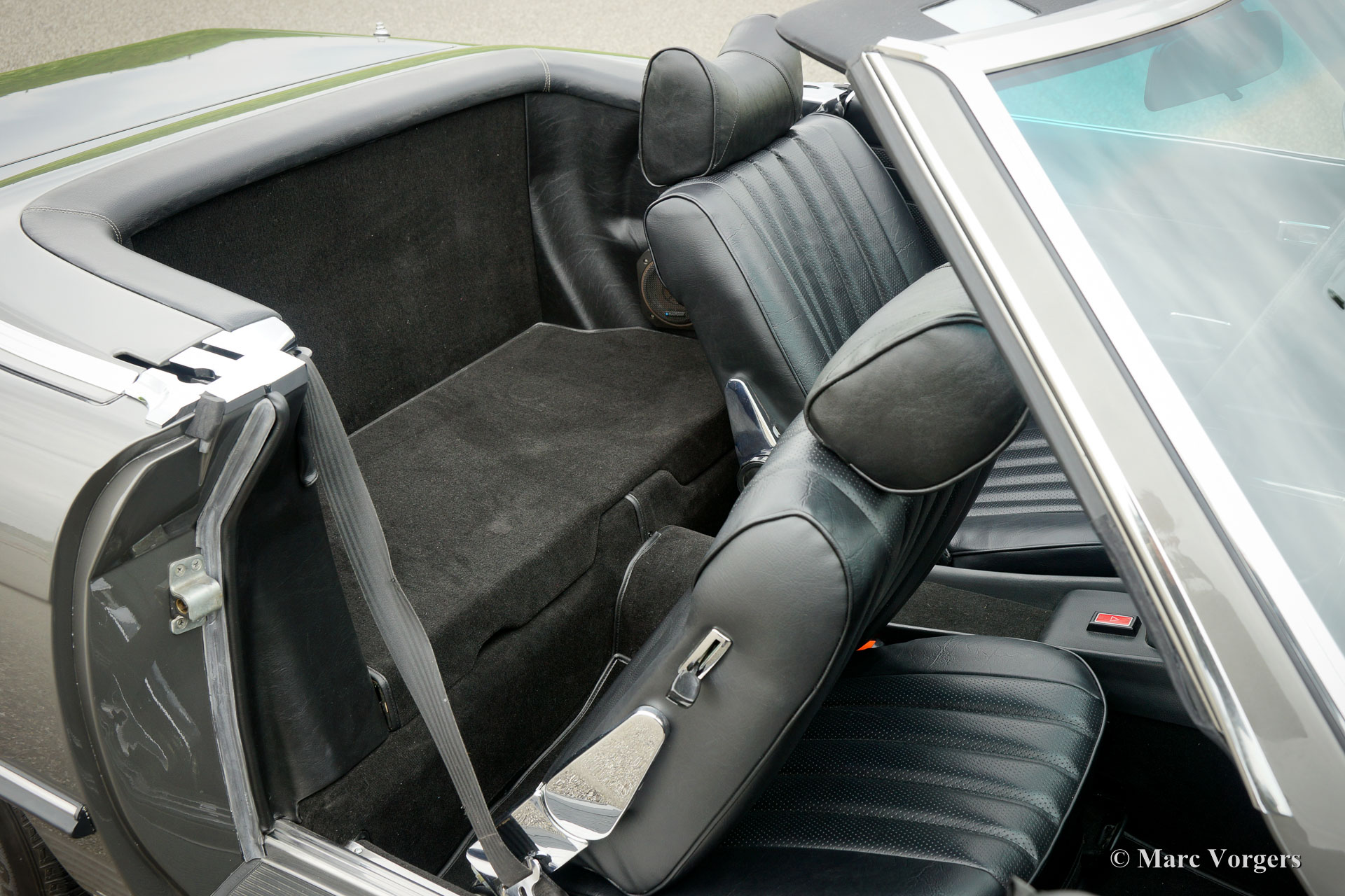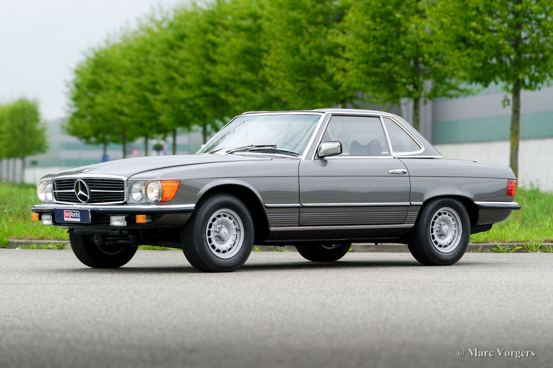 The Mercedes 280 SL, 350 SL and 450 SL are the successors of the 230 SL, 250 SL and 280 SL as we know under the nickname "Pagoda". The "Pagoda was built from the year 1963 until the year 1971, the year the new SL generation was presented to the market. Again Mercedes-Benz achieved to create a timeless design with slick, proper lines. In this shape the SL was sold for over twenty years. The "new" generation Mercedes SL is bigger, wider and heavier than its predecessor but again it was a perfect car considering construction, road holding and driving-comfort. The Mercedes-Benz SL was built with several engines. the buyer had to choose between a V8 with 3.5 or 4.5 liter cylinder capacity or a six cylinder engine with a cylinder capacity of 2.8 liter. The SL was standard equipped with a soft-top which could neatly be stowed away under a lid fully integrated in the car. Optionally the SL could be fitted with a hard-top. The hardtop can easily be fitted to the car, in a couple of minutes, with the soft-top down in place.