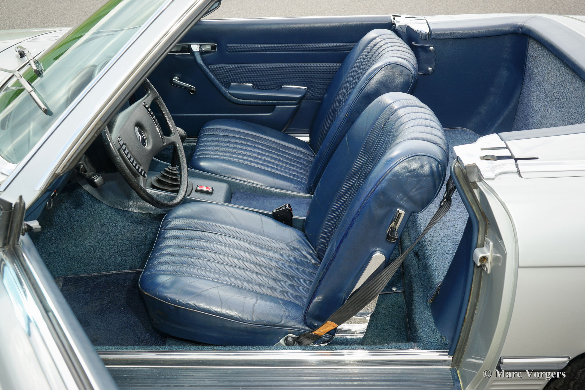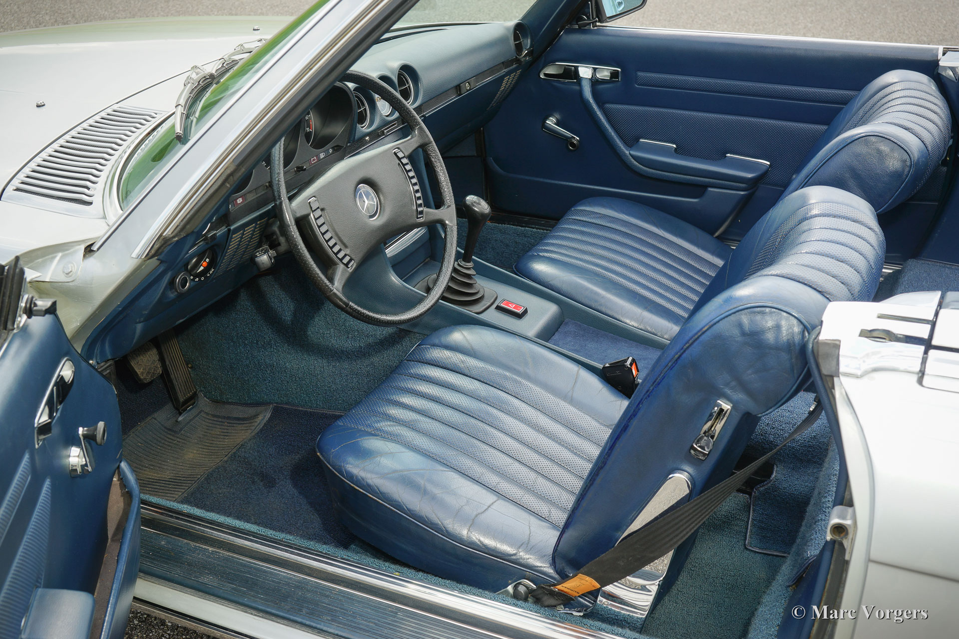 Mercedes-Benz 350 SL (R107), year 1971. Colour silver metallic with a blue leather interior and blue carpet. Original hard-top in body colour and a black soft-top. This magnificent Mercedes-Benz 350 SL was sold new in the Netherlands. The car drove only 93.000 kilometres from new and the car has known only two caring owners. This Mercedes is in excellent to superb original condition and the car drives like new! The car comes beautifully documented, all original books are present including a ‘log-book’ confirming the current ‘mileage’. Very special is the fact that this V8 powered 350 SL features a manually operated gearbox; a very rare option with this model. Recently four new Michelin tyres have been fitted. This is a very original and superb specimen!