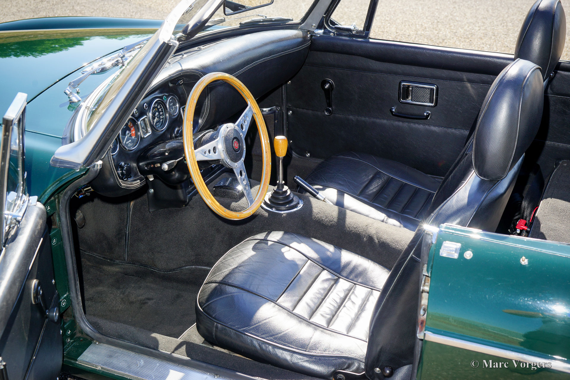 De MGC was built between 1967 and 1969 and was meant to be the successor of the Austin Healey. The MGC bodywork is identical to the MGB. De MGC was powered by a 2912 cc. six-cylinder in-line engine with an output of 145 bhp. The powerful engine made a top speed of 190 km/h (118 mph) possible. To cope with the weight of thee six-cylinder in stead of the four cylinder the MGC was equipped with a stronger torsion bar- suspension in front. 4542 MGC cars were built of which about 50% featured GT bodywork.