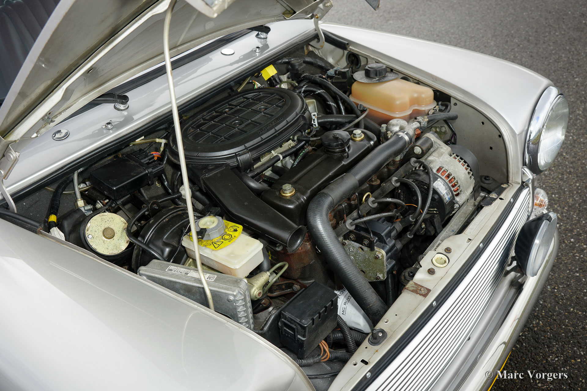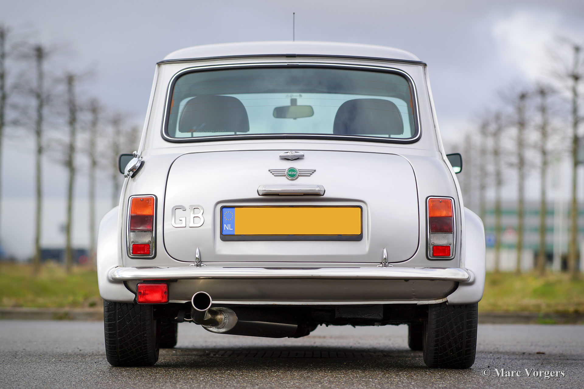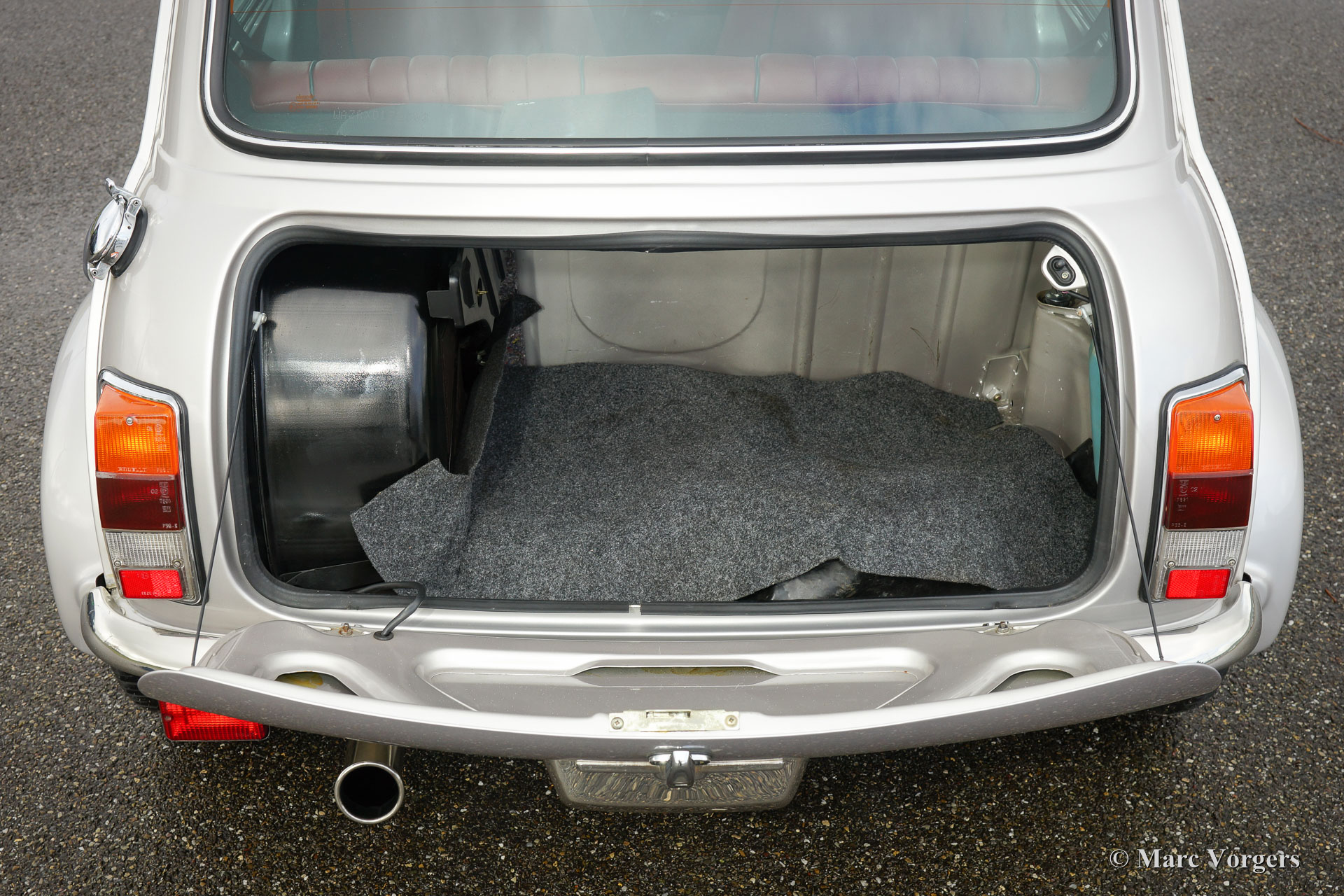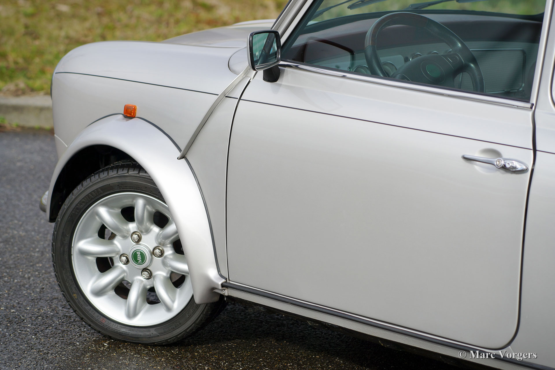 Rover Mini 40th Anniversary, year 2001. Colour Platinum silver metallic with a Burgundy red leather interior and red carpet. This fantastic Mini was imported from Germany to the Netherlands in the year 2003. The automobile is in superb original condition and the car drove only 35.000 km from new! This fine Mini 40th Anniversary shows very nice details like a polished aluminium dashboard, aluminium door handles and special ‘magnolia’ dashboard instruments with the 40th logo. The exterior features special flared wheel arches, wide light alloy wheels, special 40th badges and a ‘GB’ badge on the rear which is original for this model. This is a very rare Mini, only 800 examples have been built in seven colours. The car was given new tyres all round a few months ago. The car comes with a Dutch instruction manual.