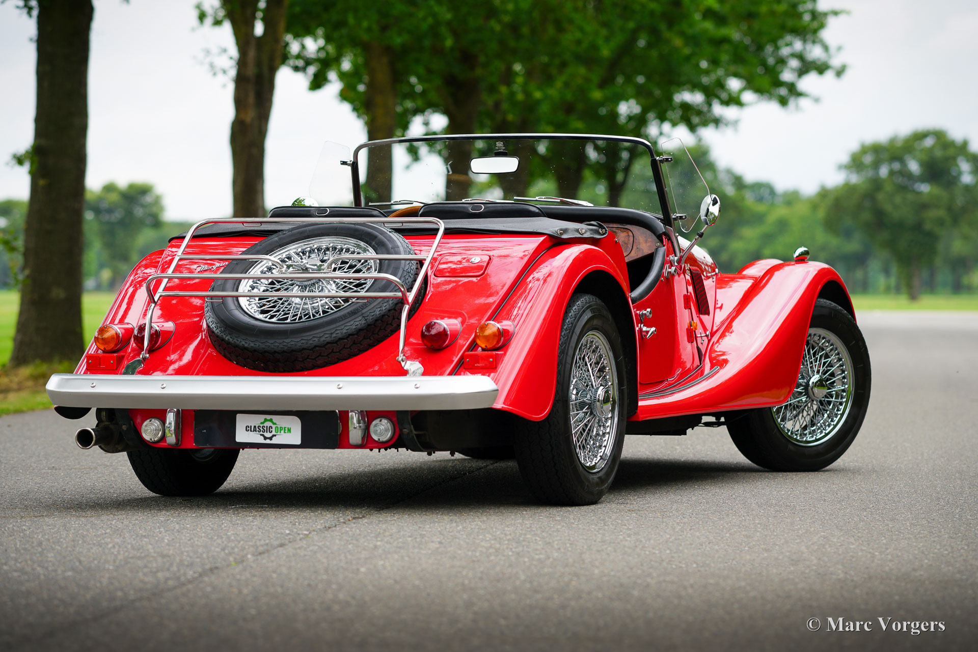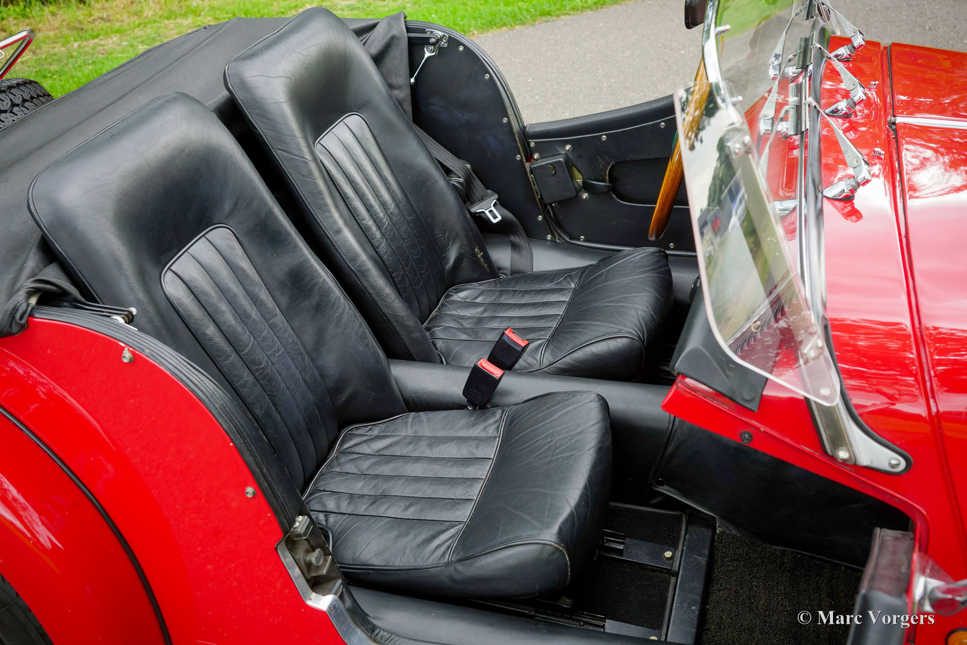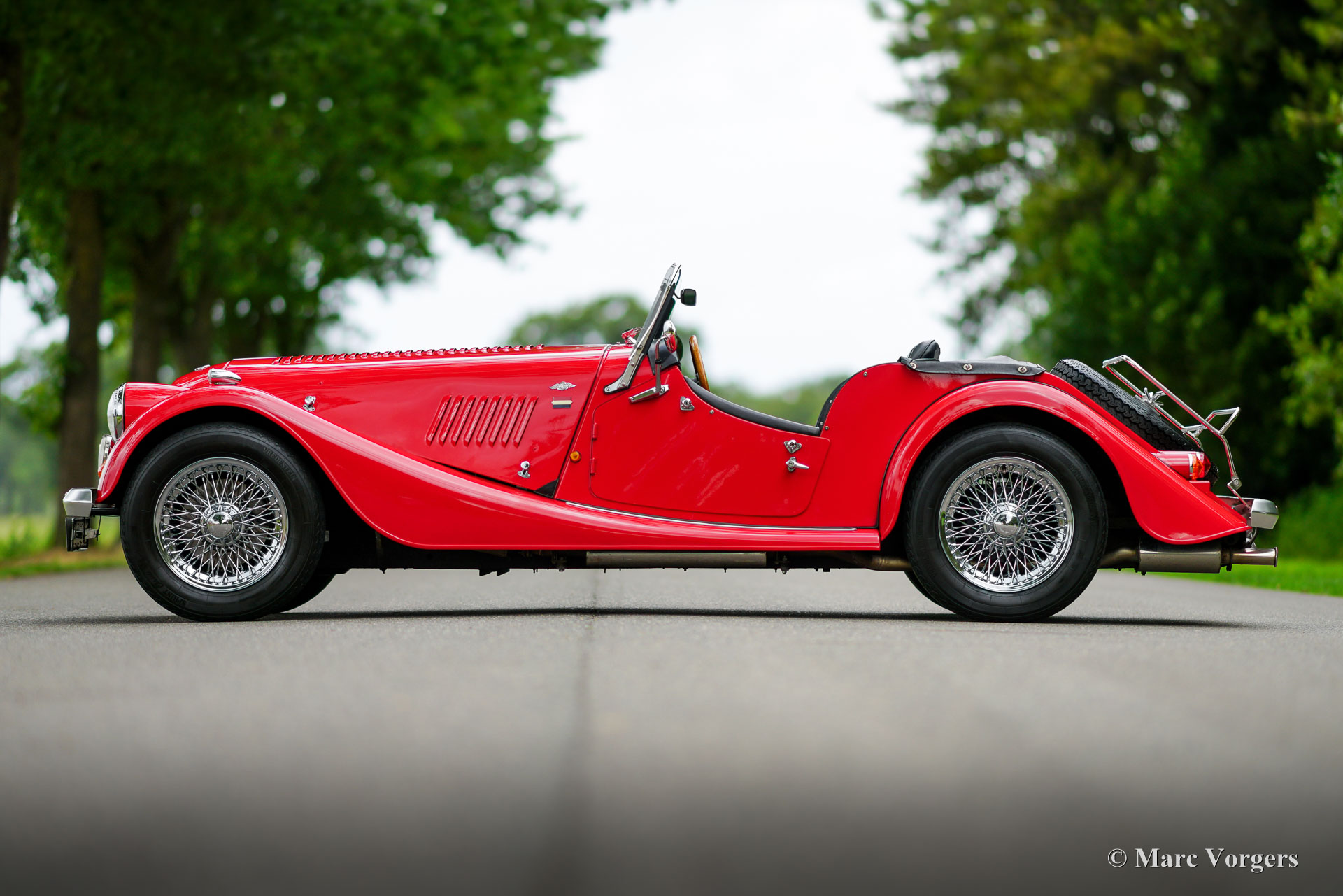 Morgan 4/4, year 1992. Colour red combined with a black leather interior. Black vinyl soft top and tonneau cover. This magnificent Morgan 4/4 was sold new in the Netherlands. The last owner has cherished this beauty for 24 years! The automobile was serviced and maintained perfectly; the service history is fully documented. From new the car has driven 96.610 kilometres. This Morgan 4/4 is still in an excellent condition, the car shows only the slightest signs of previous use. The 1992 Morgan 4/4 is fitted with a 100 bhp Ford CVH 1600 cc EFI (fuel injection) engine and a 5-speed gearbox. The weight is just over 900 kilogrammes which guarantees a sporty driving experience! This gorgeous Morgan 4/4 is fitted with many options like chrome wire wheels, a wood dashboard, a steering wheel with wood rim, two door mounted rear view mirrors, ‘wind wings’ on the windscreen frame, a chrome badge bar with Morgan club badges, a pair of auxiliary driving lamps, and a luggage rack over the spare wheel. This Morgan 4/4 is a very desirable and excellent example. Enjoy the vintage style and thrills of the 1940s, 1950s and 1960s combined with more modern technology!