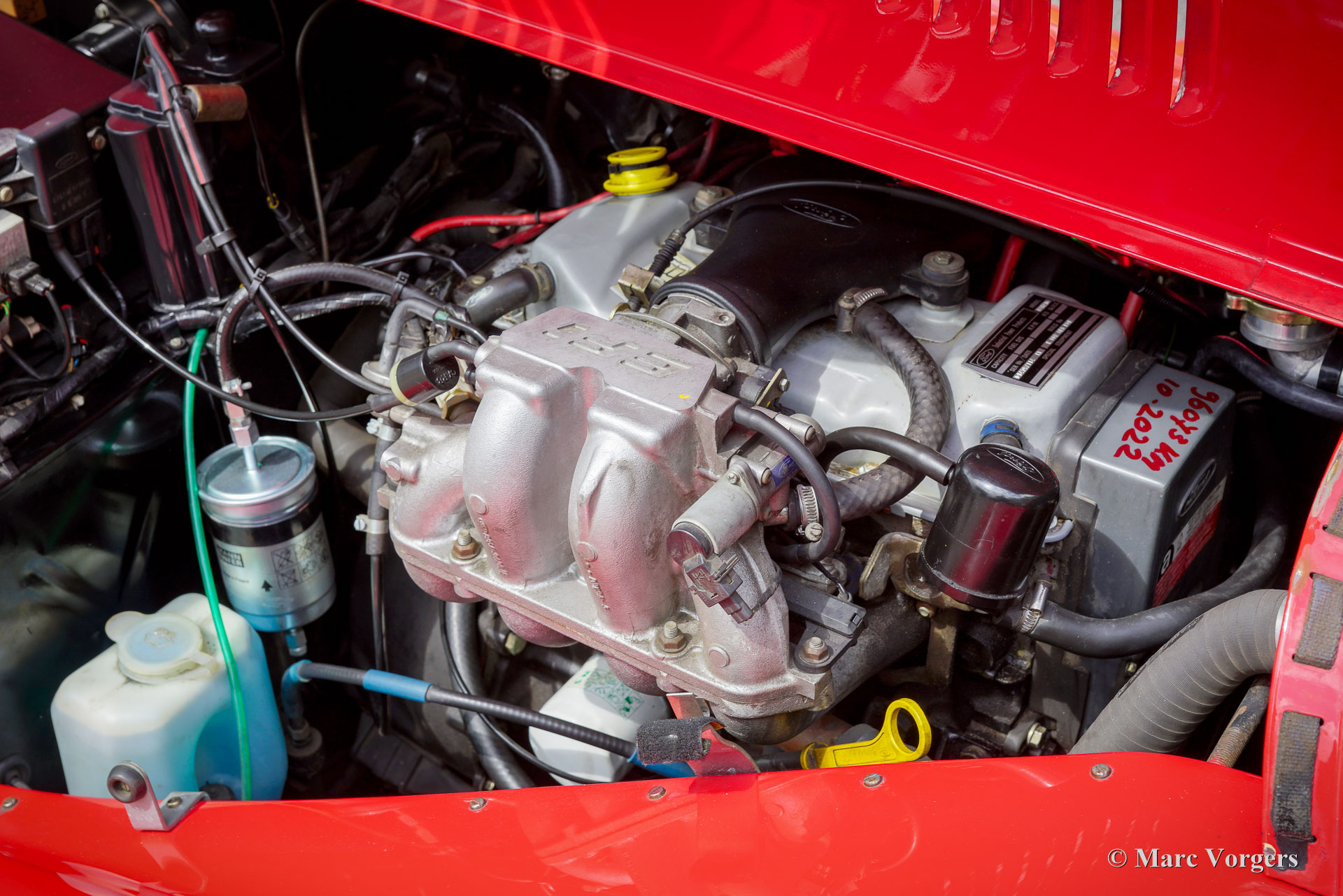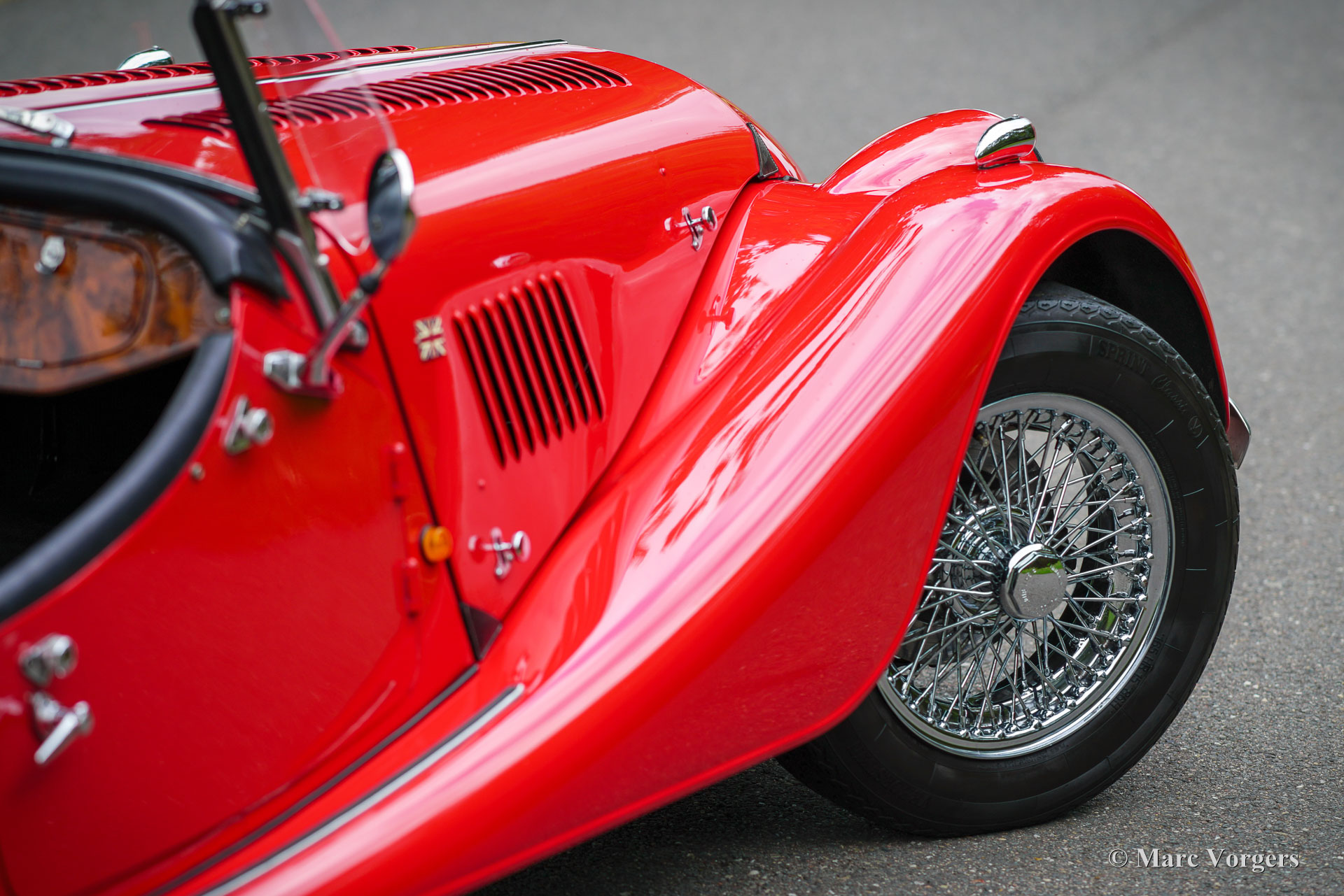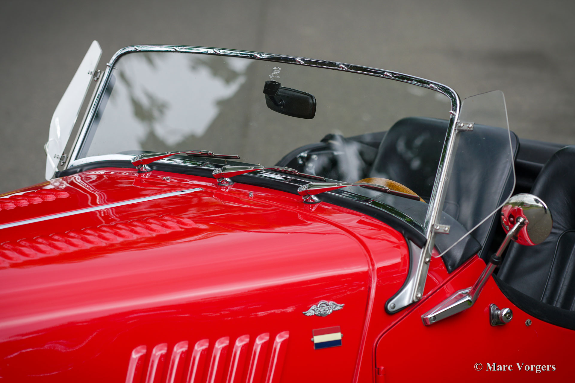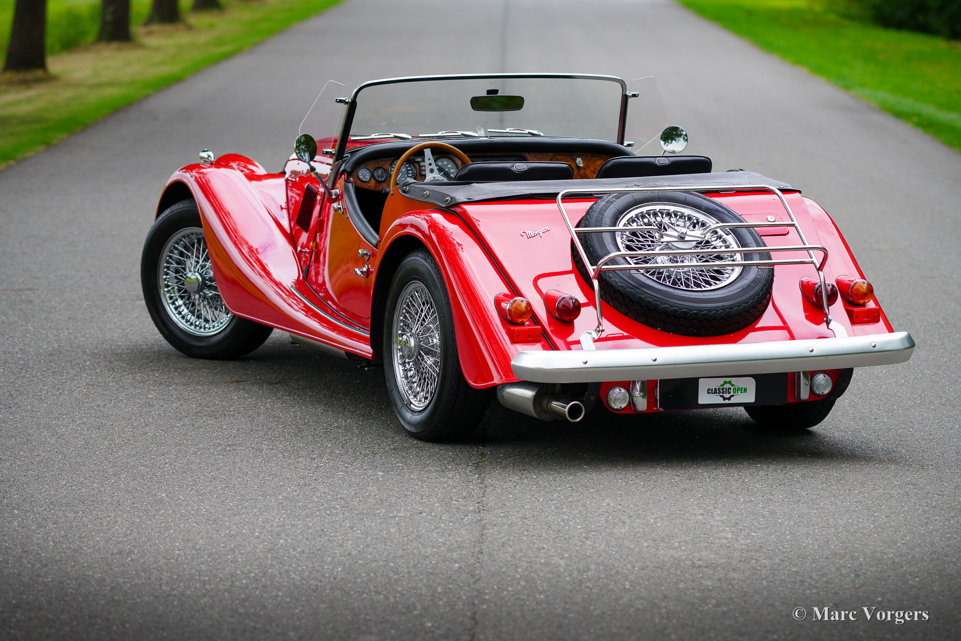 Morgan 4/4, year 1992. Colour red combined with a black leather interior. Black vinyl soft top and tonneau cover. This magnificent Morgan 4/4 was sold new in the Netherlands. The last owner has cherished this beauty for 24 years! The automobile was serviced and maintained perfectly; the service history is fully documented. From new the car has driven 96.610 kilometres. This Morgan 4/4 is still in an excellent condition, the car shows only the slightest signs of previous use. The 1992 Morgan 4/4 is fitted with a 100 bhp Ford CVH 1600 cc EFI (fuel injection) engine and a 5-speed gearbox. The weight is just over 900 kilogrammes which guarantees a sporty driving experience! This gorgeous Morgan 4/4 is fitted with many options like chrome wire wheels, a wood dashboard, a steering wheel with wood rim, two door mounted rear view mirrors, ‘wind wings’ on the windscreen frame, a chrome badge bar with Morgan club badges, a pair of auxiliary driving lamps, and a luggage rack over the spare wheel. This Morgan 4/4 is a very desirable and excellent example. Enjoy the vintage style and thrills of the 1940s, 1950s and 1960s combined with more modern technology!