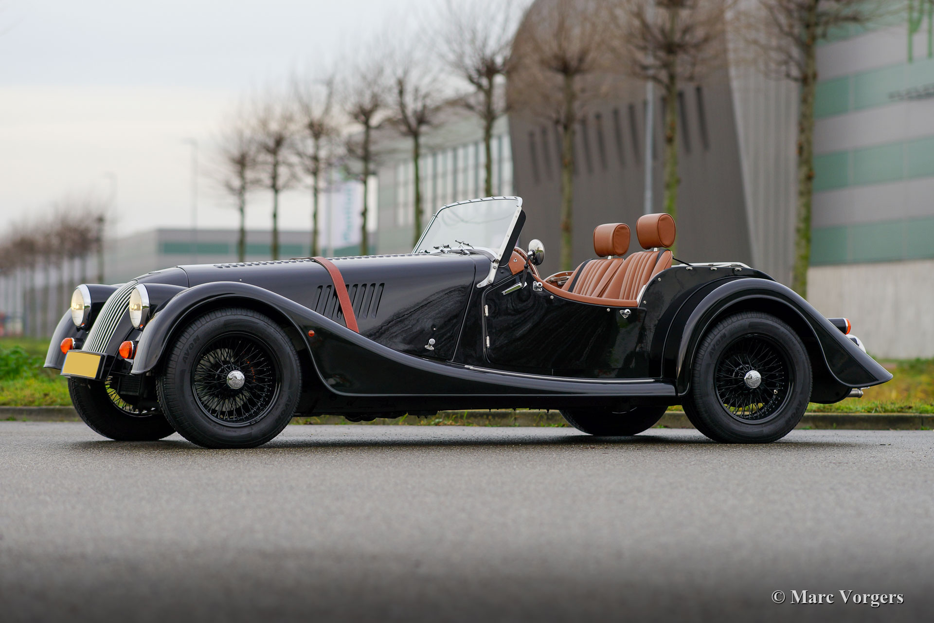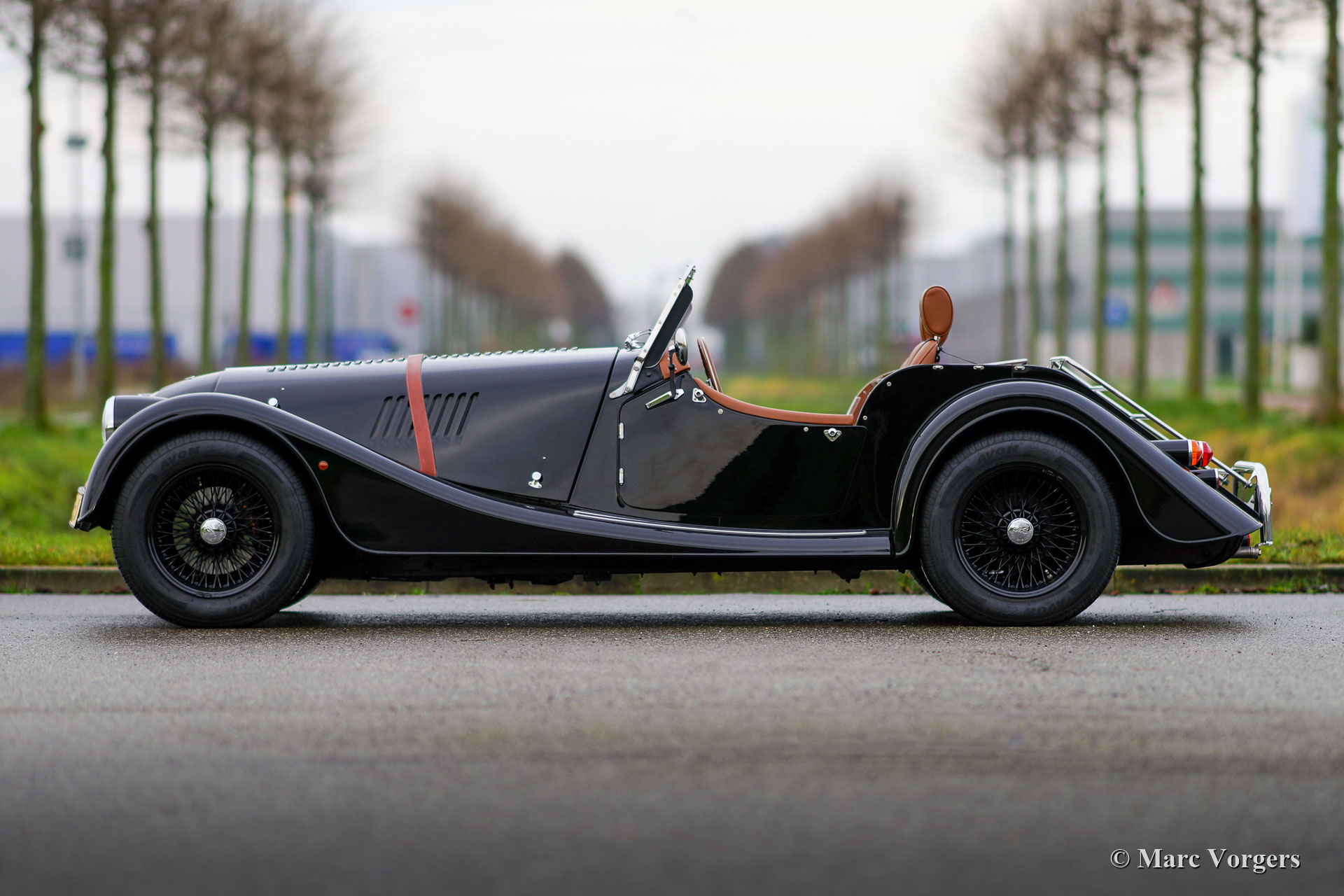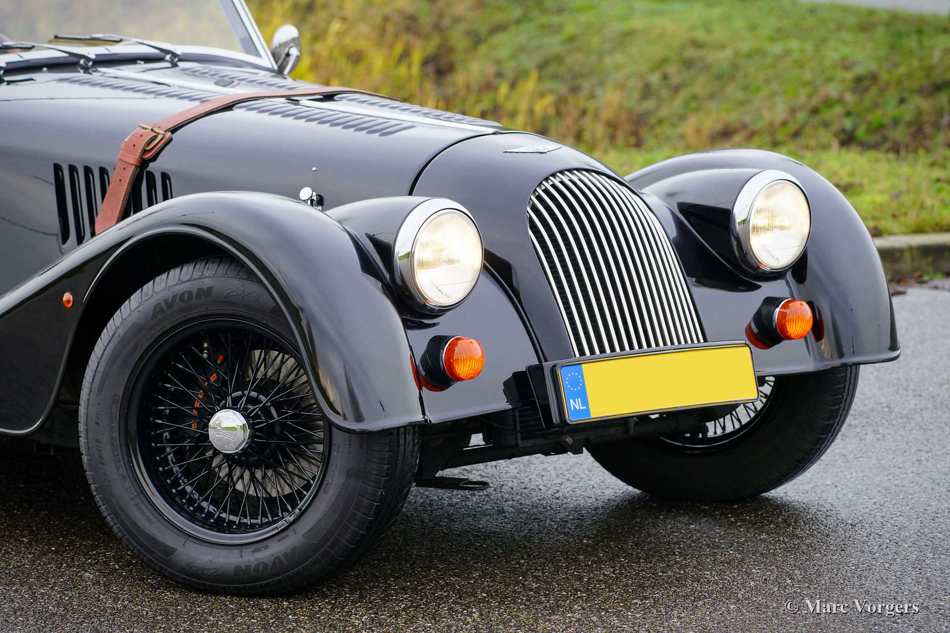 Morgan +4 Sport, year 2013. Colour black with a ‘saddle brown’ leather interior. Black soft-top, side-screens and tonneau-cover. This magnificent Morgan +4 Sport has driven only 13.000 miles from new. The car is in excellent condition and it drives impressively! From new the car has known two enthusiast owners. The Morgan is fitted with a 2000 cc Ford engine which delivers a healthy 145 bhp. With a weight of 877 kilogrammes the weight to bhp ratio is truly sporty! This Morgan +4 Sport features fantastic black wide wire wheels and a brown leather belt over the bonnet. This is a very desirable Morgan and it comes with a fully documented (service) history.