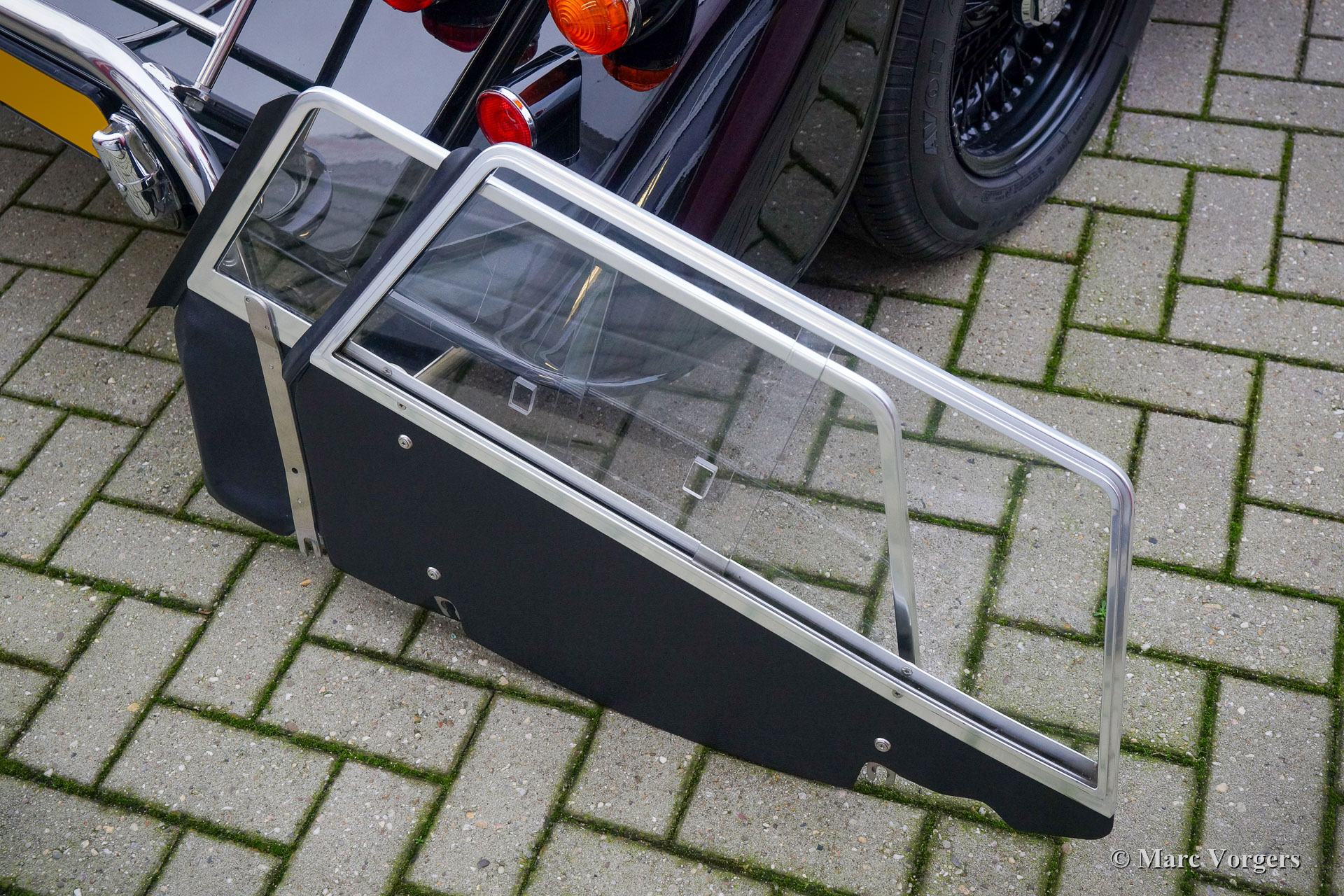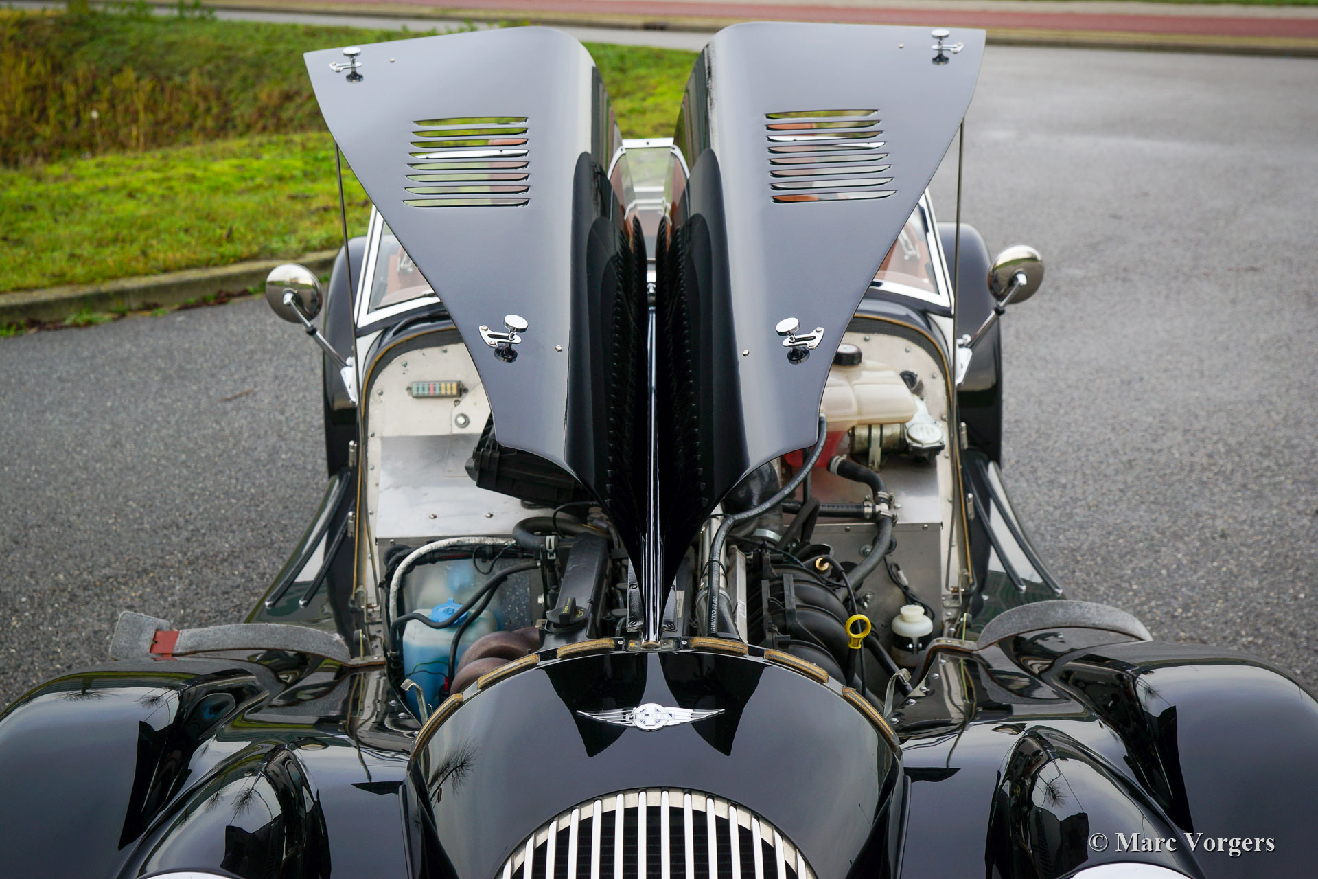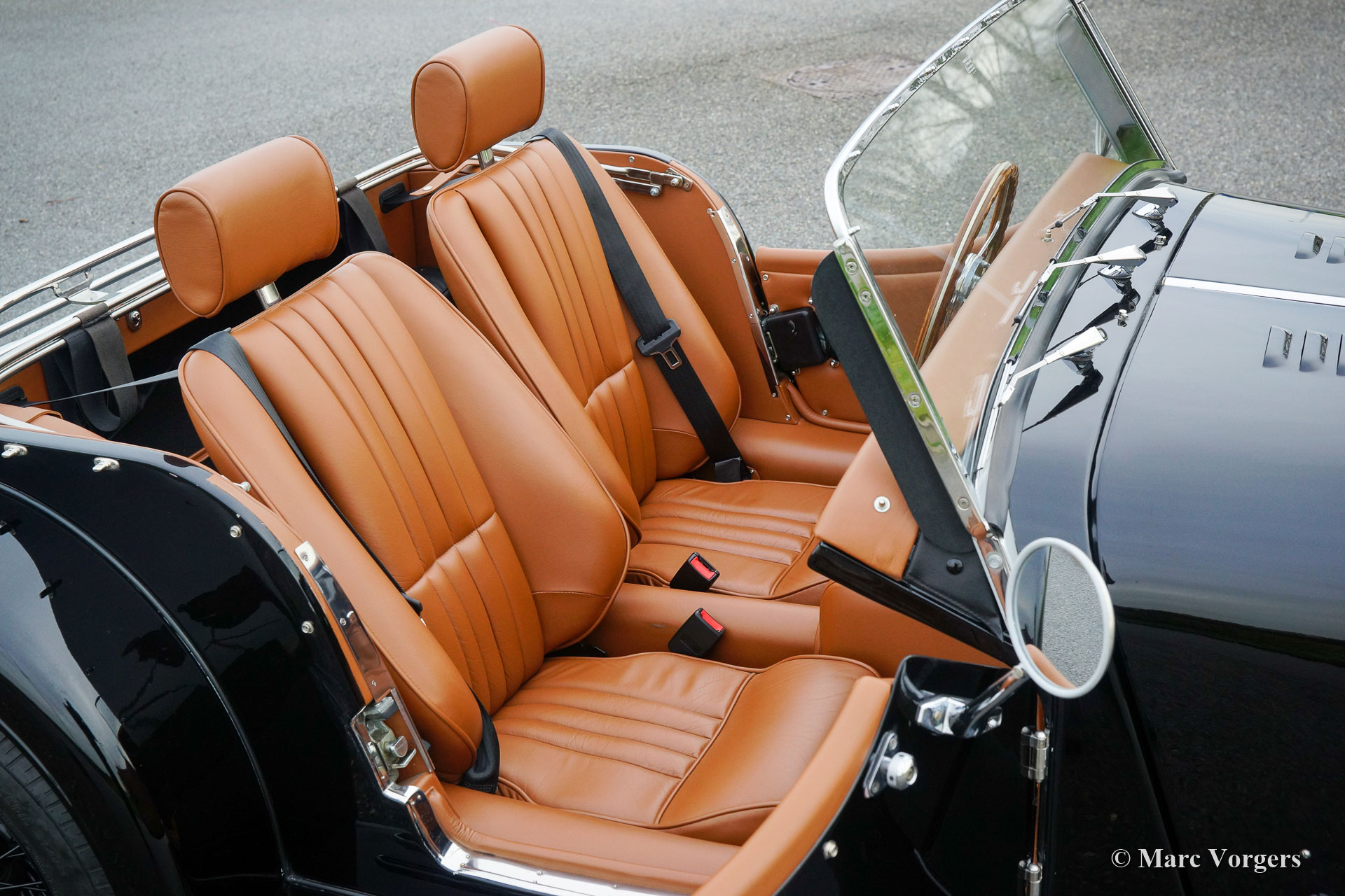 Morgan +4 Sport, year 2013. Colour black with a ‘saddle brown’ leather interior. Black soft-top, side-screens and tonneau-cover. This magnificent Morgan +4 Sport has driven only 13.000 miles from new. The car is in excellent condition and it drives impressively! From new the car has known two enthusiast owners. The Morgan is fitted with a 2000 cc Ford engine which delivers a healthy 145 bhp. With a weight of 877 kilogrammes the weight to bhp ratio is truly sporty! This Morgan +4 Sport features fantastic black wide wire wheels and a brown leather belt over the bonnet. This is a very desirable Morgan and it comes with a fully documented (service) history.