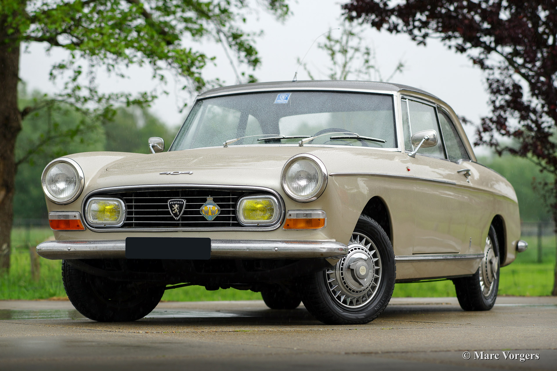 Peugeot 404 404 Pininfarina Coupé, year 1966. Colour beige metallic with a black interior. This very elegant Peugeot is one of the most striking post war Peugeot models of which 3616 specimen have been built. The automobile is in very good condition and the car shows beautiful original details like the dashboard with Jaeger gauges and the remarkable wheel covers with 'faux' wheel nuts. The car was given new paintwork in the past and the car is very well maintained. The driving experience is very comfortable and easy going. The engine delivers 80 brake horsepower which is directed to the road thru a four speed gearbox operated by a steering column mounted shift lever.