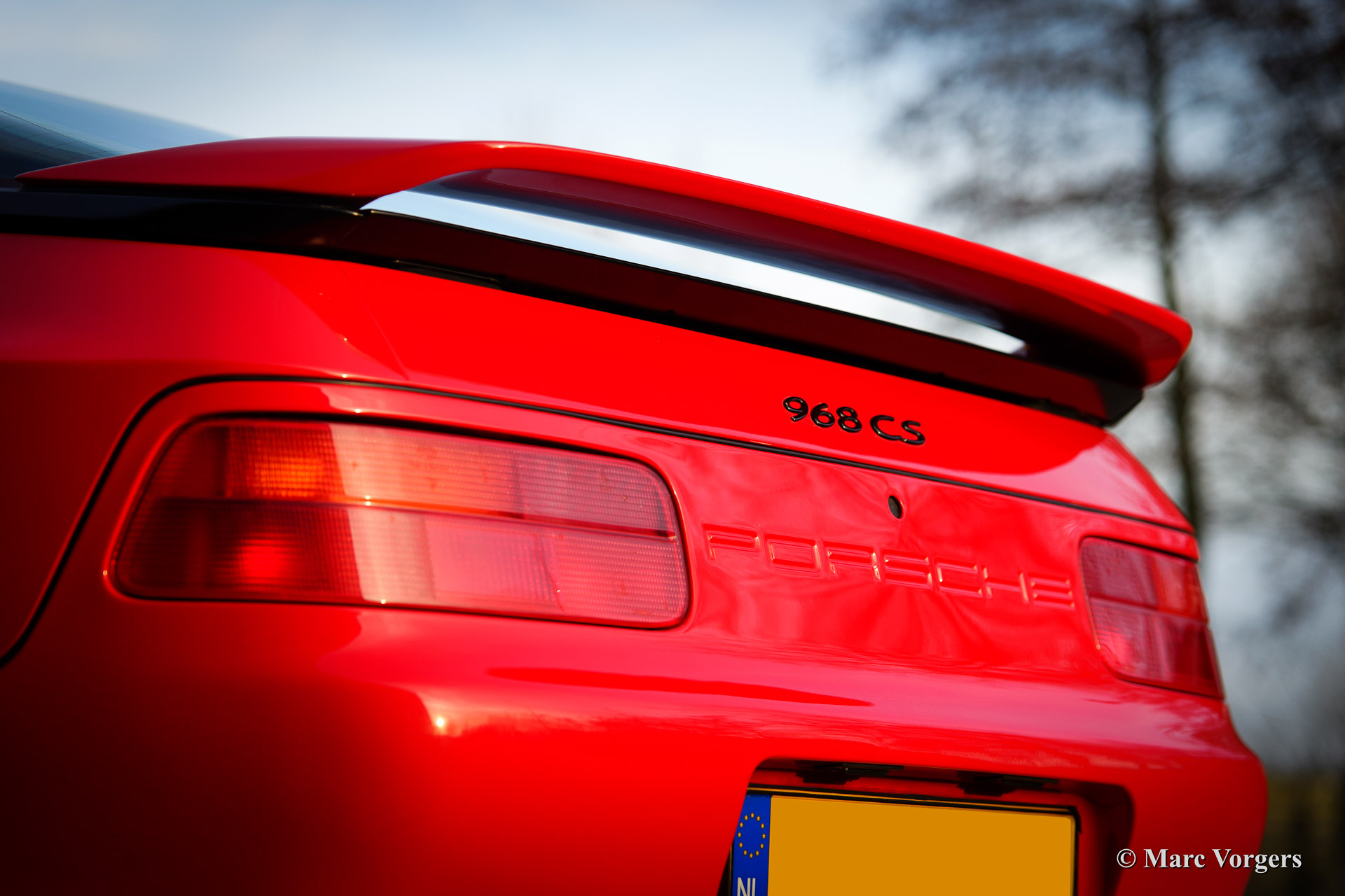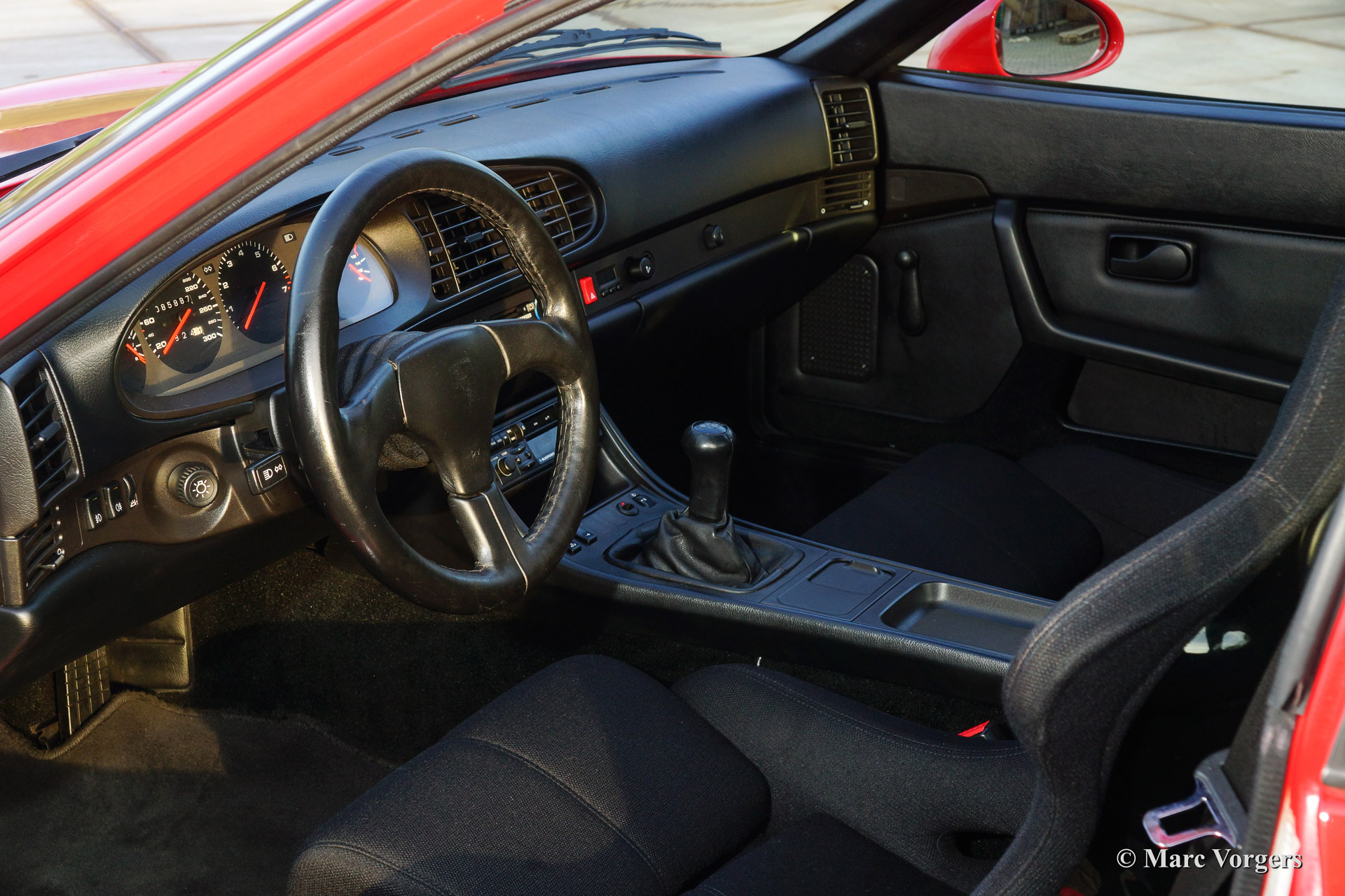 Porsche Porsche 968 CS (Club Sport), year 1993. Colour Guards red with a black interior. This magnificent Porsche 968 is in superb (excellent++) original condition, like new! The car has driven 85.850 km documented kilometres from new. The Porsche 968 was built from 1991 until 1995. In total 11.245 cars (5731 coupe/3959 cabriolet) and only 1538 of these lighter Club Sport cars were built. The CS was 50 kg. lighter than the standard coupe model. This fantastic 968 CS shows all original details, is fitted with Recaro bucket seats, no rear bench and a detachable sliding roof panel. A rare car, a superb driver and highly desirable! It will be hard to find a Porsche 968 Club Sport in better shape!
