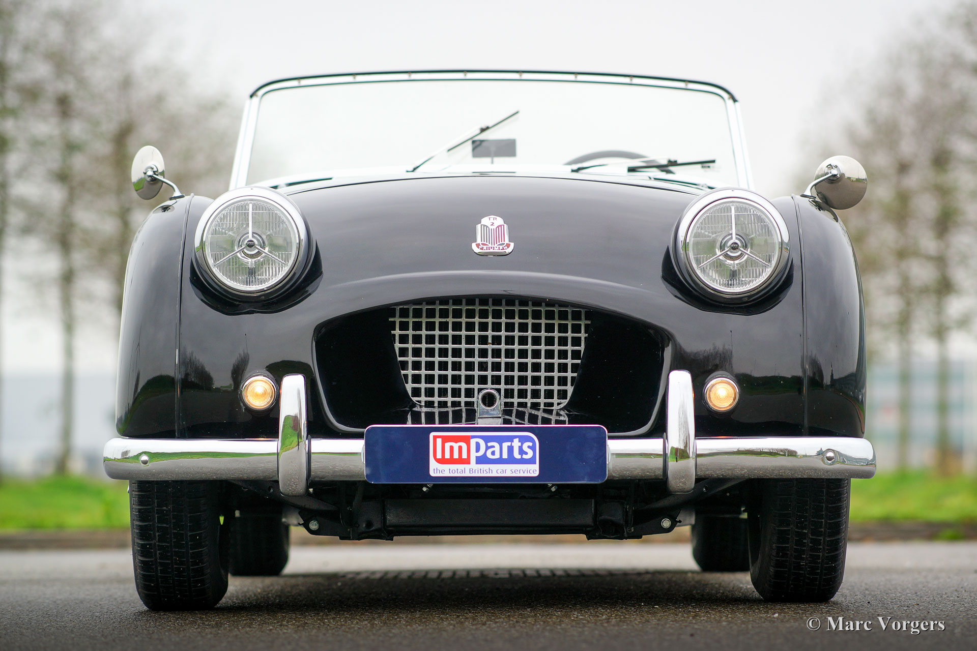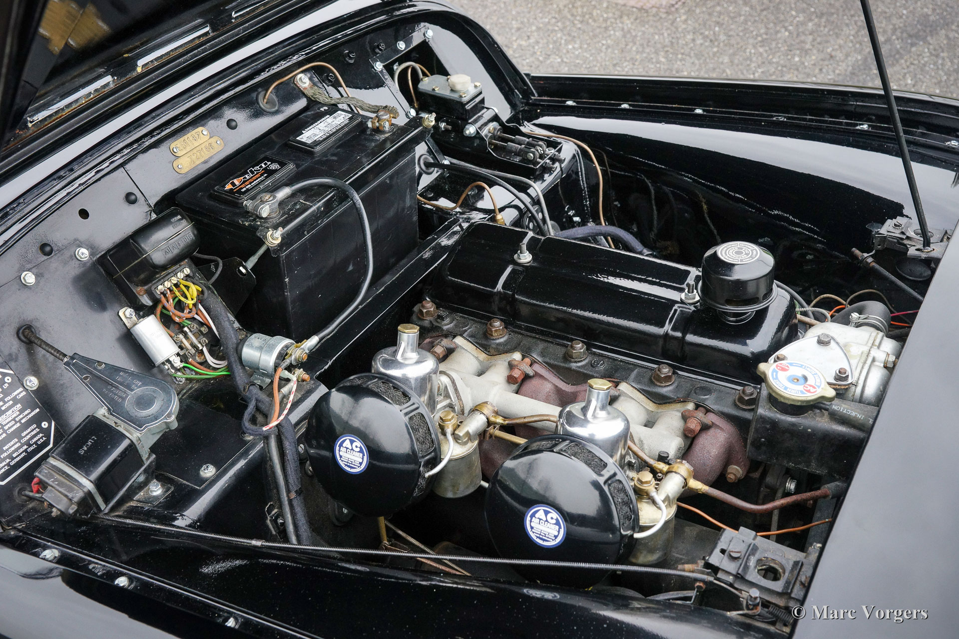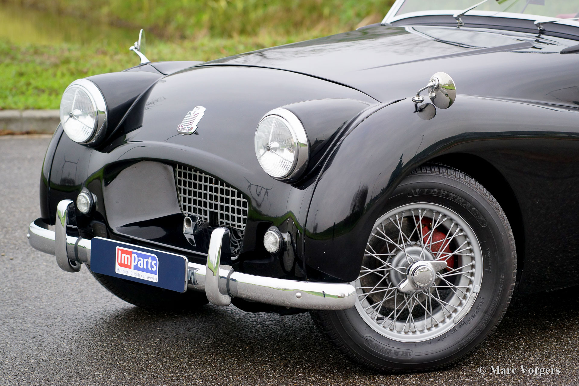 The Triumph TR 2 is a no nonsense sports car; very robust, simple and reliable, a true British sports car all over. The engine was a Standard Vanguard based, cast-iron, long stroke, in-line four cylinder with a displacement of 1991cc. The engine was equipped with two S.U. carburettors giving a power-output of almost 100 bhp.
