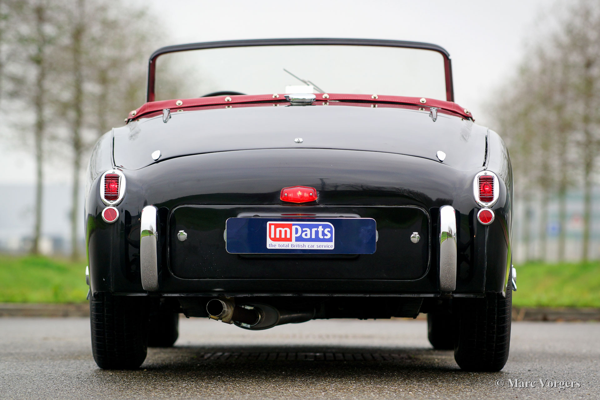 In the year 1957 the Triumph TR3a was presented. Again Triumph changed the grille (wider, covering the entire width of the car). Also the headlamps were placed a little backwards and door handles were fitted. Very short after the introduction of the TR 3a the Triumph TR 3b was introduced, the only change was the larger cylinder capacity of the engine.