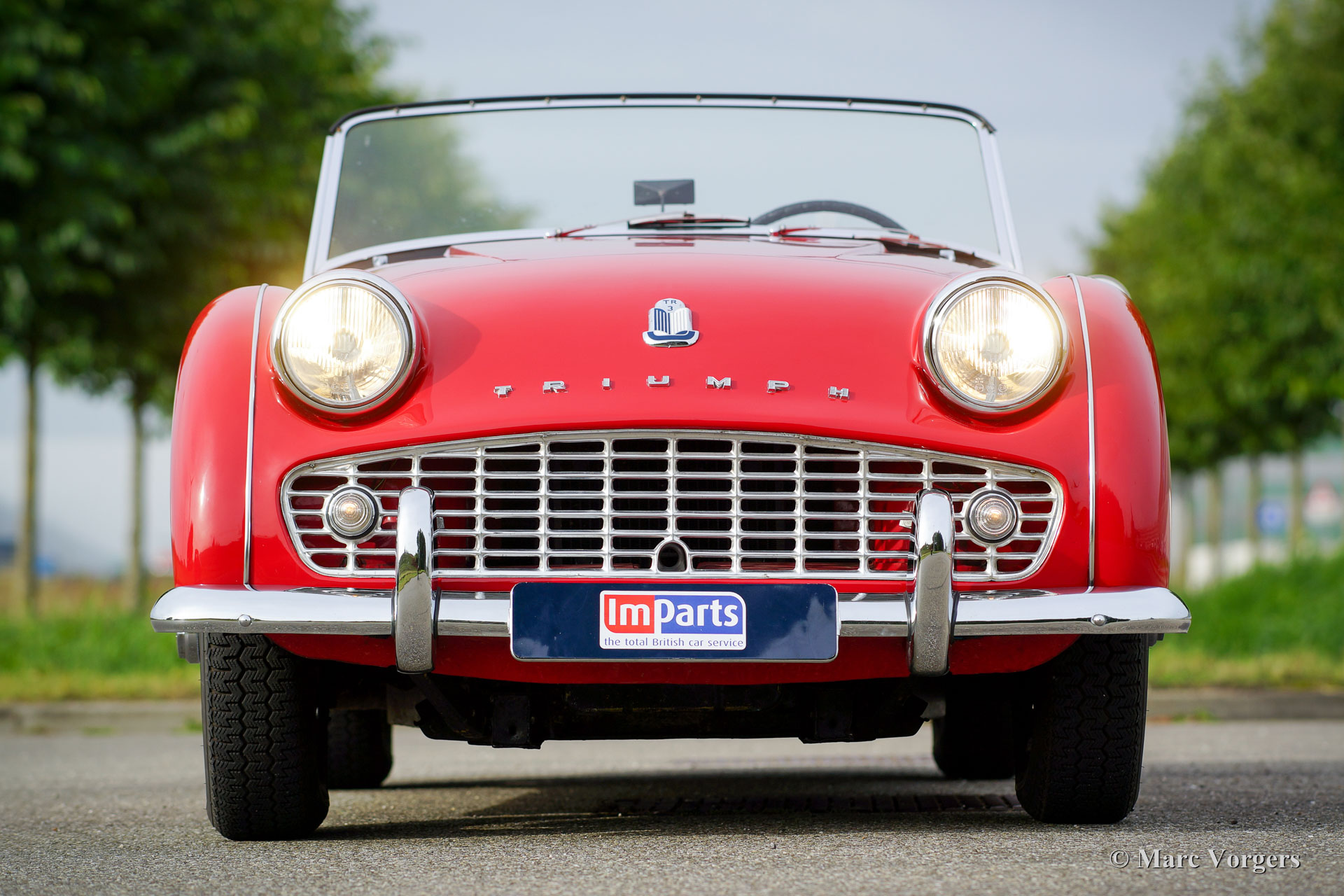 In the year 1957 the Triumph TR3a was presented. Again Triumph changed the grille (wider, covering the entire width of the car). Also the headlamps were placed a little backwards and door handles were fitted. Very short after the introduction of the TR 3a the Triumph TR 3b was introduced, the only change was the larger cylinder capacity of the engine.
