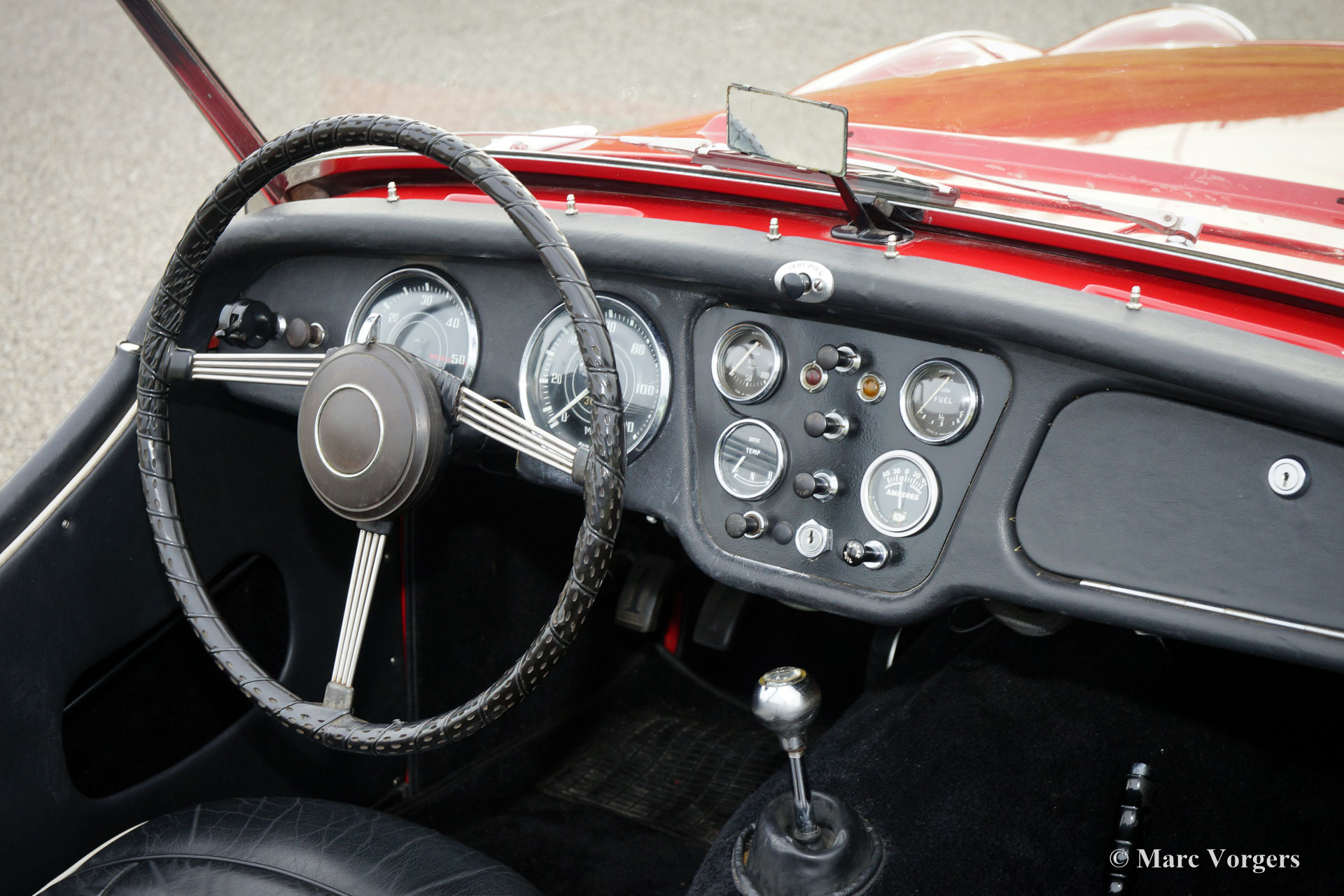 The Triumph TR 3 is a no nonsense sports car; very robust, simple and reliable, a true British sports car all over. The TR 3 was the first production car, off factory, equipped with disc brakes on the front-wheels. The engine was a Standard Vanguard based, cast-iron, long stroke, in-line four cylinder with a displacement of 1991cc. The TR 3 engine was equipped with two carburettors giving a power-output of almost 100 bhp.