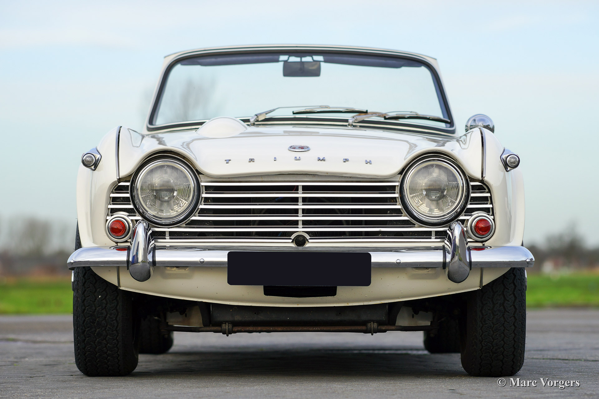 The Triumph TR 4 is a real British roadster; pure and honest. The TR 4 is built with a sturdy separate chassis with independent front suspension and a live rear axle. (IRS versions are equipped with independent rear suspension). The TR4 is equipped with disc brakes at the front and drum brakes at the rear. The bonnet shows a beautiful power bulge which gives space for the two carburettors. The Triumph TR 4 has a very beautiful wooden dashboard that is clear and functional and is equipped with large Smiths clocks. For the TR 4 a very nice "Surrey-top" is available as accessory. The Triumph "Surrey top inspired Porsche to built the Porsche "Targa" versions. The Triumph TR4 is as all the TR versions a real drivers car.