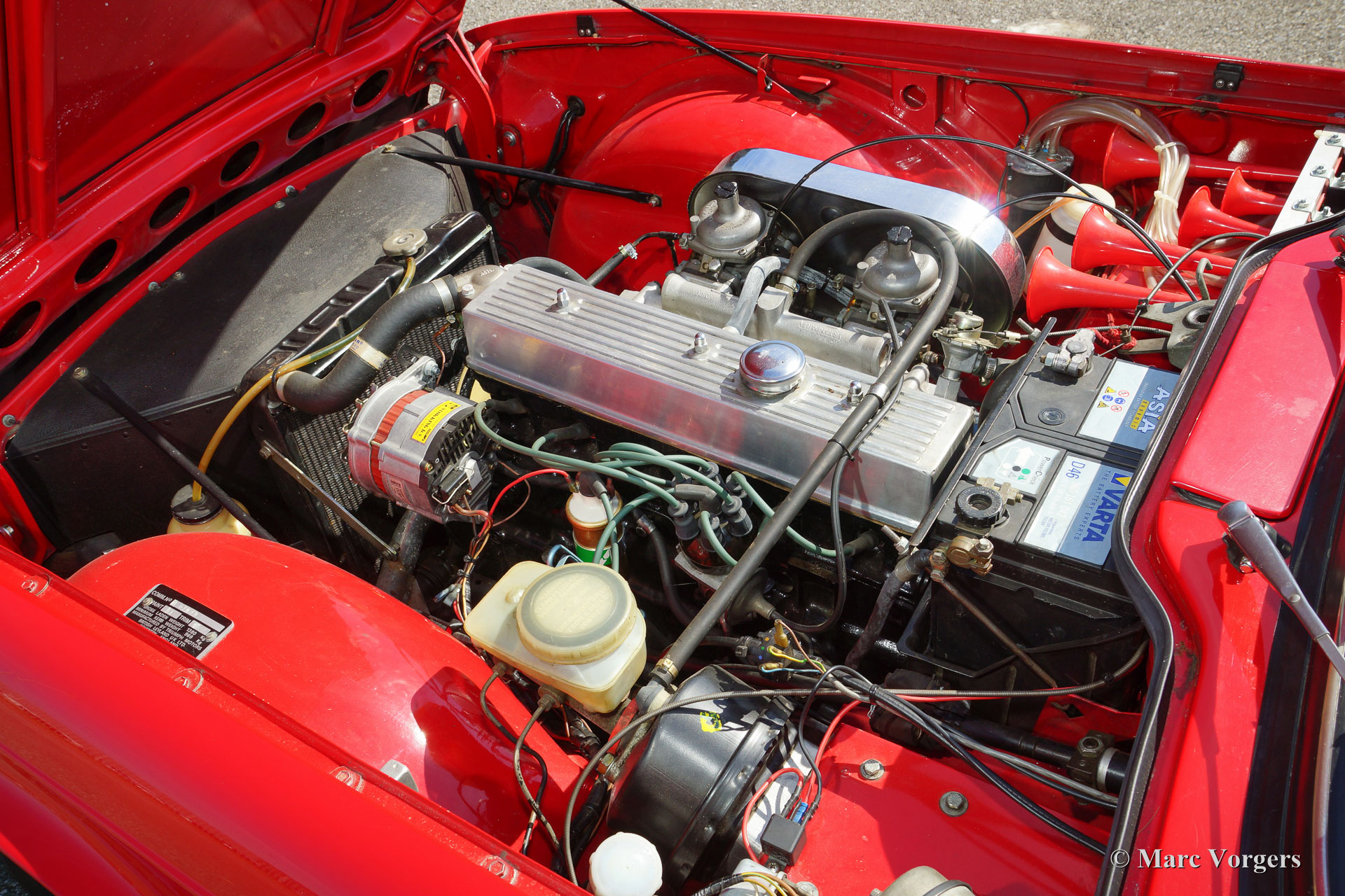 The 2498 cc. straight six with P.I. (Petrol Injection) system had a power output of 150 SAE hp. The complex P.I. system did not make it to the US market because is was delicate to service and adjust. The TR 5 for the US market was fitted with two carburettors and was named Triumph TR 250.