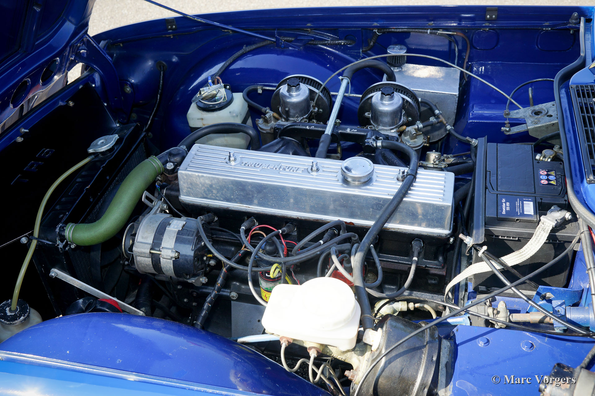 The 2498 cc. straight six with P.I. (Petrol Injection) system had a power output of 150 SAE hp. The complex P.I. system did not make it to the US market because is was delicate to service and adjust. The TR 5 for the US market was fitted with two carburettors and was named Triumph TR 250.