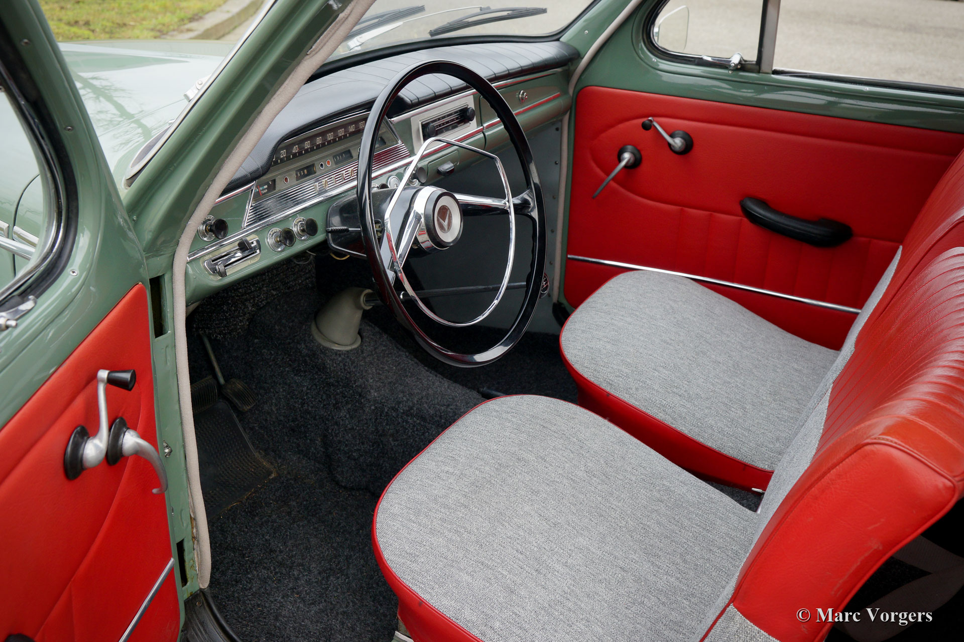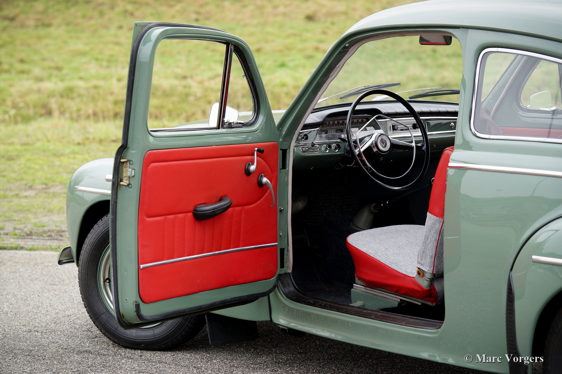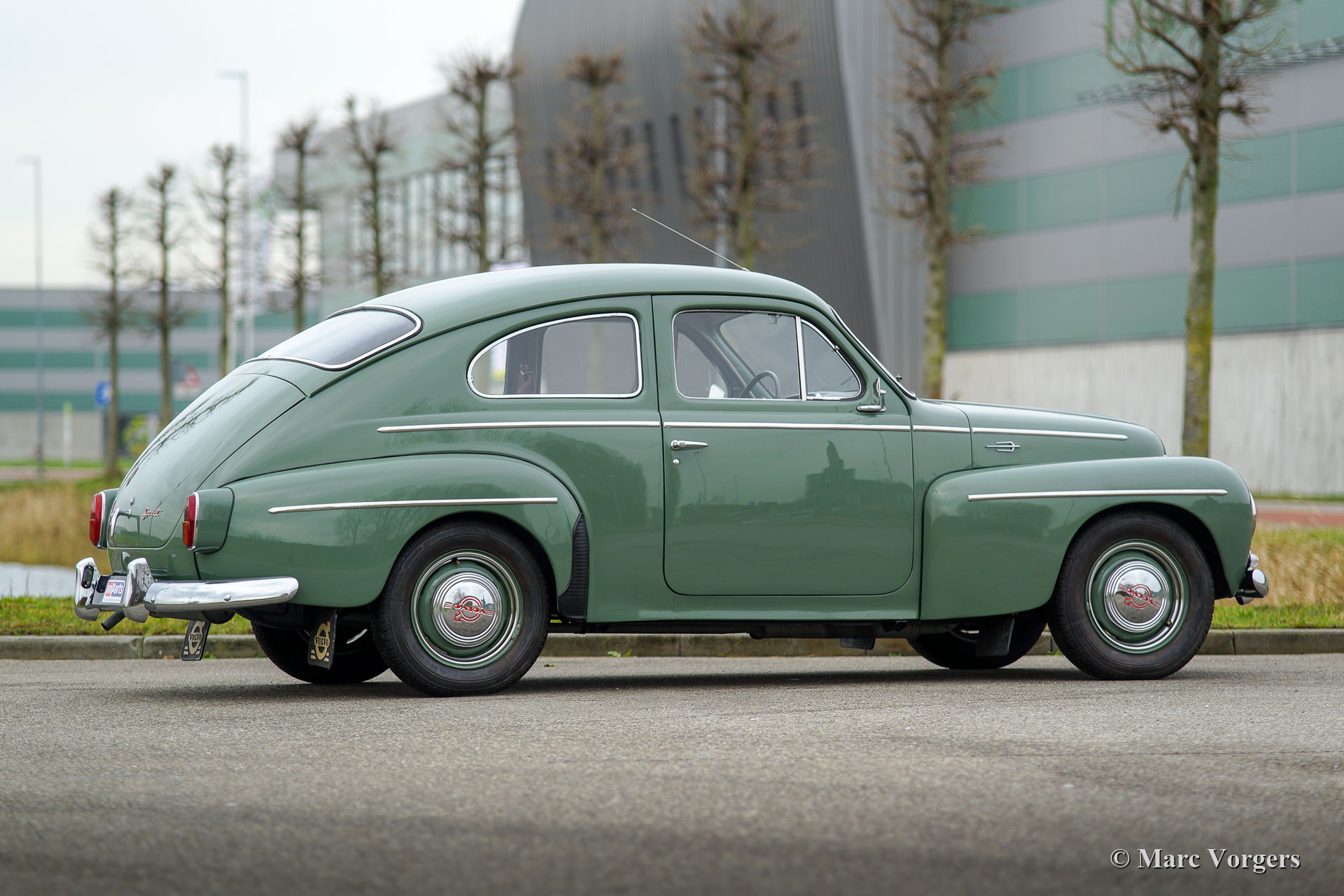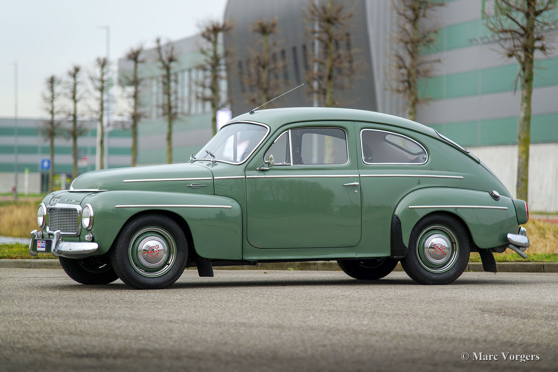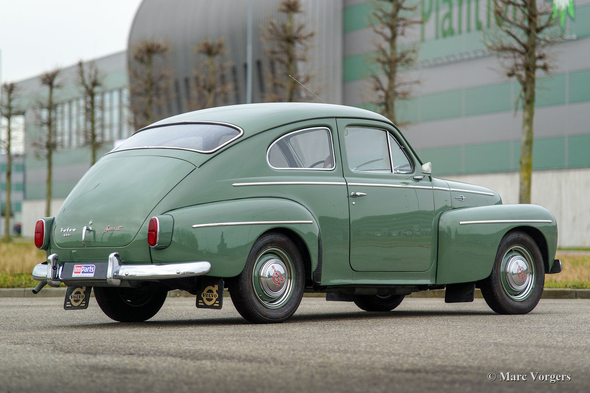 Volvo PV 544 Sport, year 1958. Colour pale green with a grey / red interior and black rubber carpet. This fantastic Volvo PV 544 Sport was beautifully restored in the past, the automobile is in excellent condition and it drives very well. The car features a 1600 cc four cylinder in-line engine mated to a four-speed manually operated gearbox. The ‘Sport’ engine features twin S.U. carburettors and the engine delivers a healthy 85 bhp. The colour combination of this car is stunning, and the grey / red interior is in perfect condition! The car is fitted with two door-mounted rear-view mirrors and a classic Blaupunkt Solingen radio. This is a fine specimen; a highly desirable Volvo PV 544 Sport!