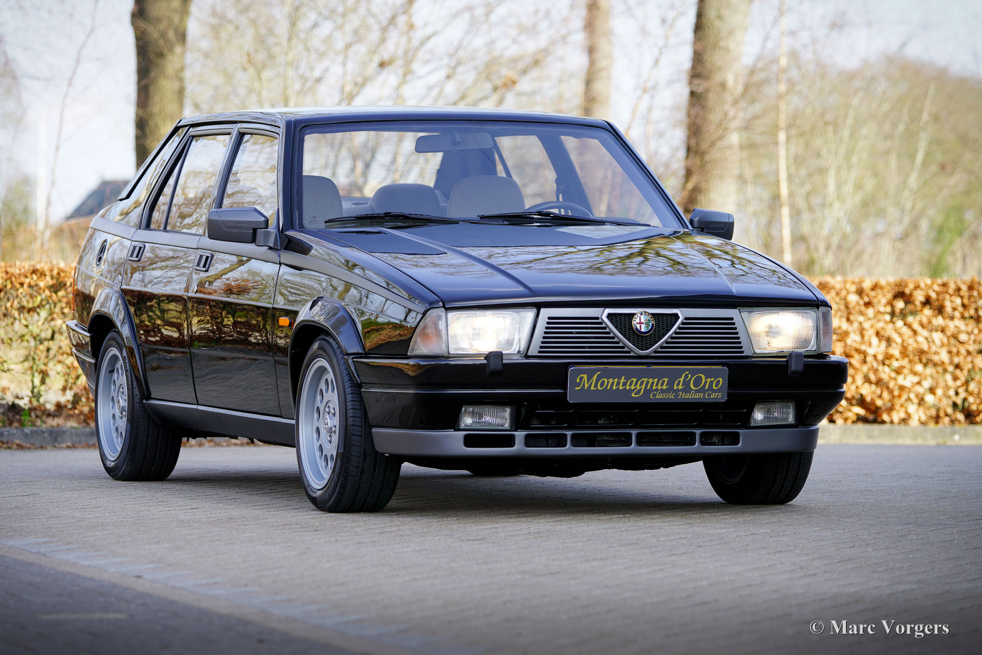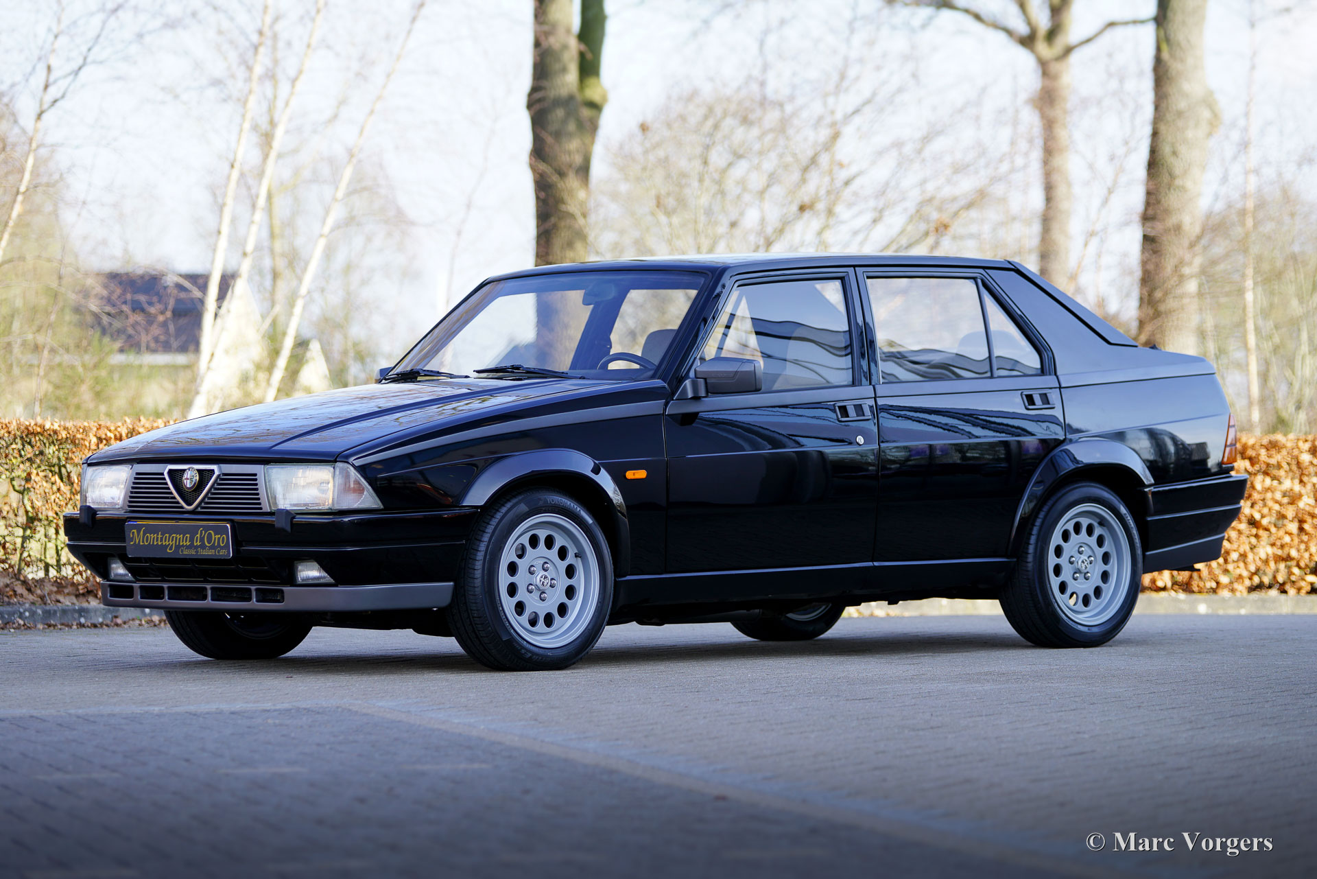 Alfa Romeo 75 1.8 Turbo, year 1986 (first registration 1 January 1986). Chassis (VIN) number ZAR162B1000050918. Exterior finished in black (Nero AR 913) combined with an interior in black, dark grey, and light grey tones. The like new seats are clad in checked fabric (very light grey and dark grey) with dark grey leather patches on the side seat squabs of the front seats. This magnificent Alfa Romeo 75 Turbo was sold new in Italy. A very special option is factory fitted air-conditioner! Several years ago, this stunning car was refurbished and overhauled by the renowned Museo Fratelli Cozzi from Legnano, a Milan suburb. They have overhauled the engine and the gearbox and fitted a magnificent brand-new interior! In 2024 the car was imported to the Netherlands. Recently the paintwork was perfected and given a Labocosmetica glass coating, and new original Ronal alloy wheels were fitted. Service invoices are present. To further perfect this rare 75 Turbo we have purchased original new rear lights, and a rear reflector bar which will be fitted shortly. This tremendous Alfa Romeo 75 1.8 Turbo has driven 101.511 kilometres from new. The car is in a stunning near perfect condition, and it drives like a new car! You will be hard pressed to find another example in this pristine condition! Exact production figures are not known for the Alfa Romeo 75 1.8 Turbo, but Alfa Romeo had to build at least 5000 cars to meet the FIA homologation for Group A touring cars. Under the bonnet you will find the 1800 cc. inline four-cylinder engine, with a Garrett T3 turbocharger and intercooler, producing 155 hp and 226 Nm of torque. The turbo gave the 75 brisk performance for its time, including a top speed of 210 km/h (130 mph) and acceleration from 0-100 km/h (62 mph) in 7.6 seconds. (That's still very fast with the soft whistle of the Turbo in your ears!) These figures placed the 75 Turbo firmly among the top compact executive cars of its time. This is your chance to acquire an Alfa Romeo 75 1.8 Turbo in near immaculate collector condition coming from the renowned Museo Fratelli Cozzi!