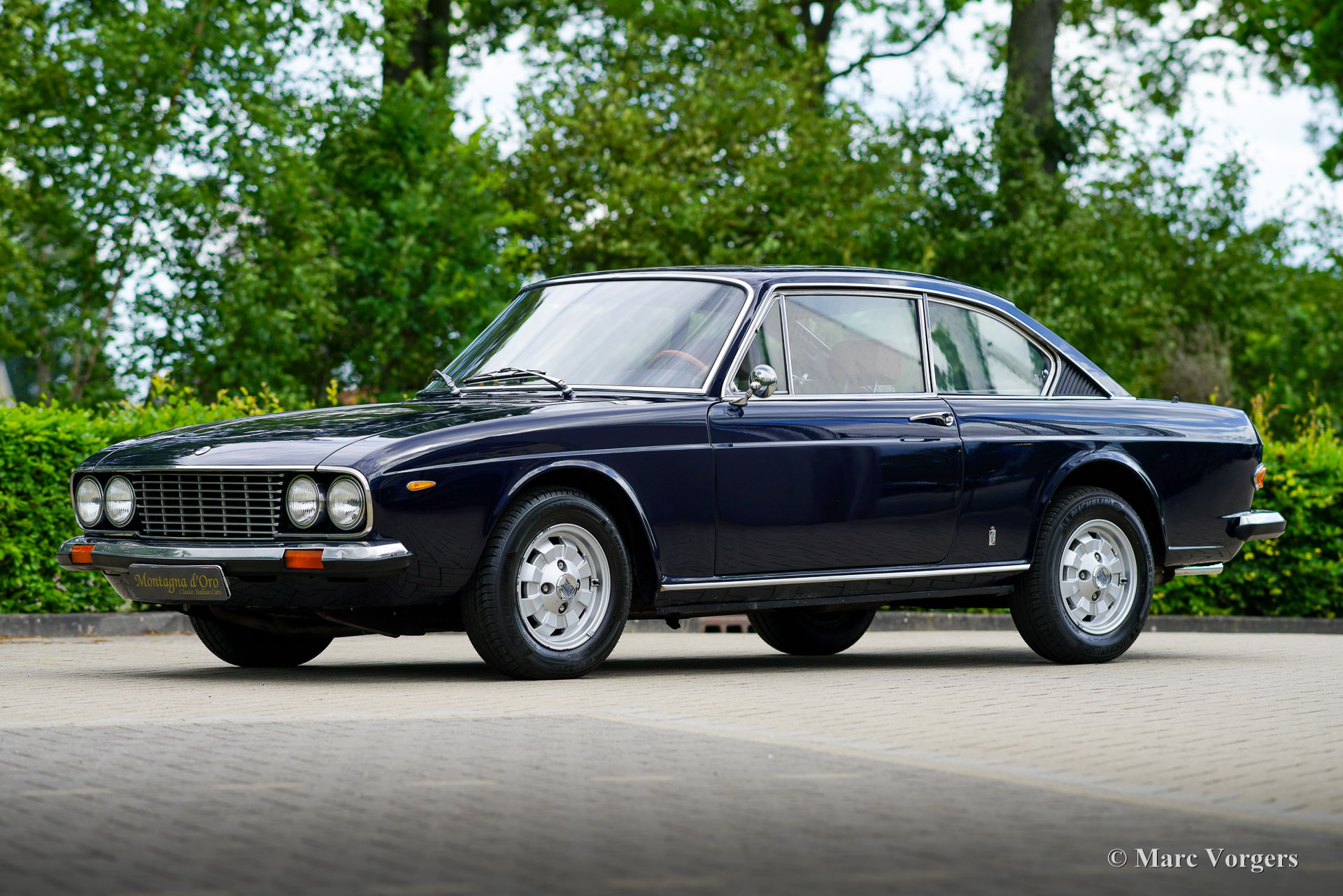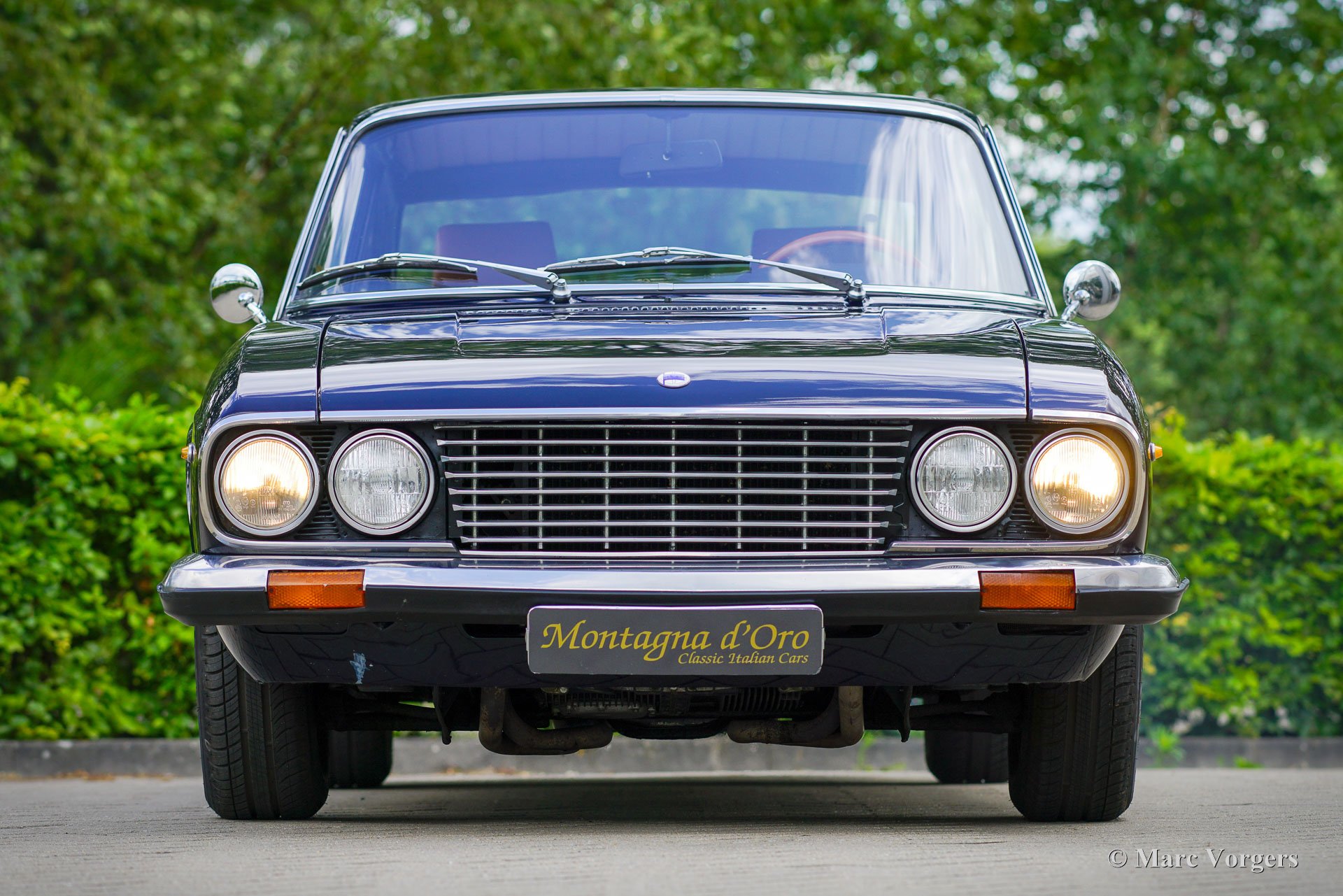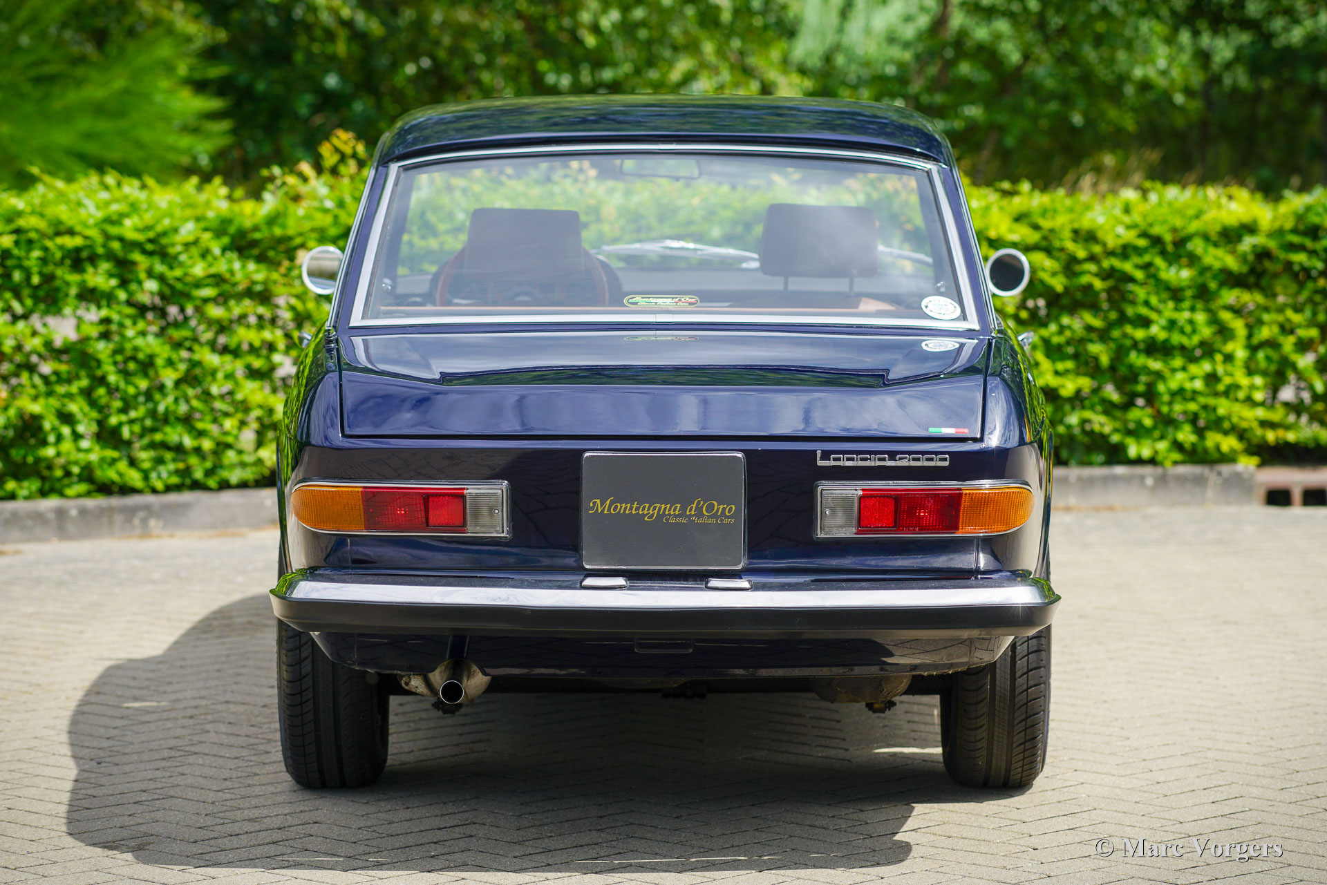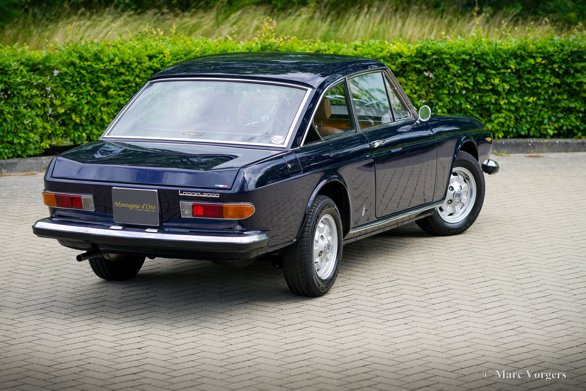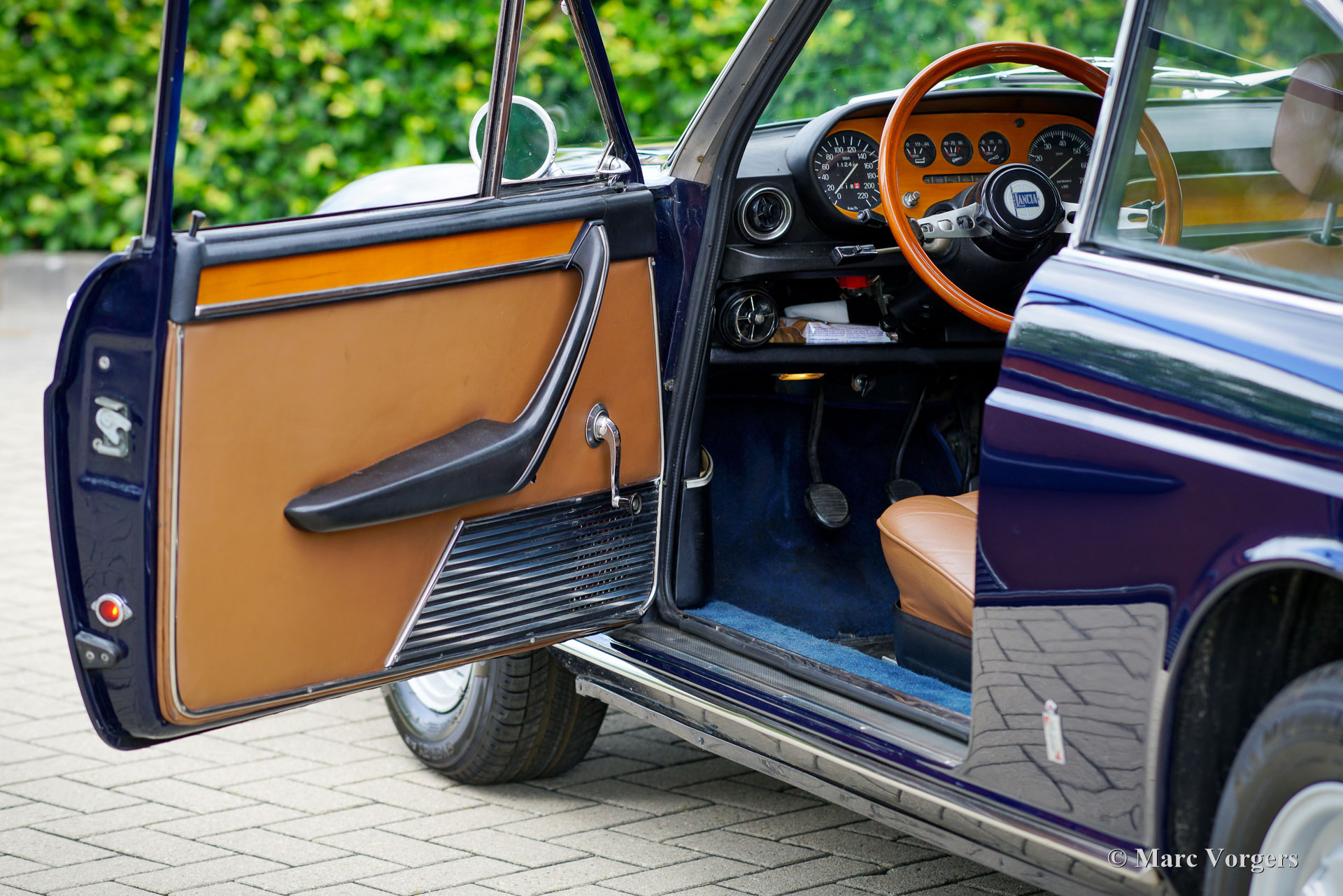 Lancia 2000 Coupé, year 1973. Colour dark blue (Bleu Lancia) combined with a cognac brown leather interior and dark blue carpet. Montagna d’Oro have imported this fine Lancia from Italy 20 years ago. In 2015 the car was sold to a Dutchman living in Singapore with the odometer reading 02.665 kilometres. Since 2015 the car was in storage with us and driven by the owner occasionally when visiting the Netherlands. The odometer currently reads 11.248. The automobile is in a very good overall condition, and it will be fully serviced for the next proud owner. The Lancia 2000 Coupé is the successor of the Lancia Flavia Coupé 2000, but the cars are almost identical. The original and very stylish Pininfarina Lancia Flavia Coupé design was updated sparsely. The air-intake on the bonnet was deleted, the radiator grille was given a chrome frame, and the Lancia logo moved from the grille to the bonnet. The only important improvement was the introduction of a 5-speed gearbox! The water cooled 1991 cc four-cylinder boxer engine delivers 115 bhp and gives the car a top speed of 185 km/h: sparkling performance for a car of the early 1970s! The Lancia 2000 Coupé is a rare and exclusive automobile, only 1399 2000 Coupé cars were built.