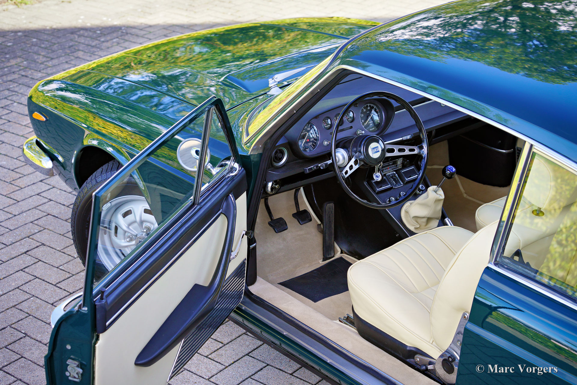 Lancia Flavia 2000 Coupé, year 1970 (1 January 1970). Colour dark green (Verde Scuro) combined with a light beige leather interior trimmed with beige carpet. This beautiful Lancia Flavia 2000 Coupé was sold new to a Mr. Andrea Grandoni who lived in Pesaro on the wonderful Adriatic coast of Italy. In 2018 this gorgeous automobile was purchased on Auto e Moto d’Epoca show in Padua and exported to a proud new owner in the Netherlands. This Lancia Flavia 2000 is in a very good to excellent condition, and the car drives and sounds delightfully! The odometer shows 62379 km. The interior was perfectly new upholstered recently; The leather seats, the wool carpet, and the clean beige headliner look fantastic! The bottom, the engine compartment and the boot are nice and clean. This Lancia Flavia shows all the original details, the car is an irresistible piece of 1960s Italian car design. The Lancia Flavia 2000 Coupé is quite a rare car, only 4163 examples were built from 1969 until 1971. The 116 bhp four-cylinder boxer engine is a wonderful unit, and the engine sound is very special. This is a stunningly beautiful example for the Lancia enthusiast!