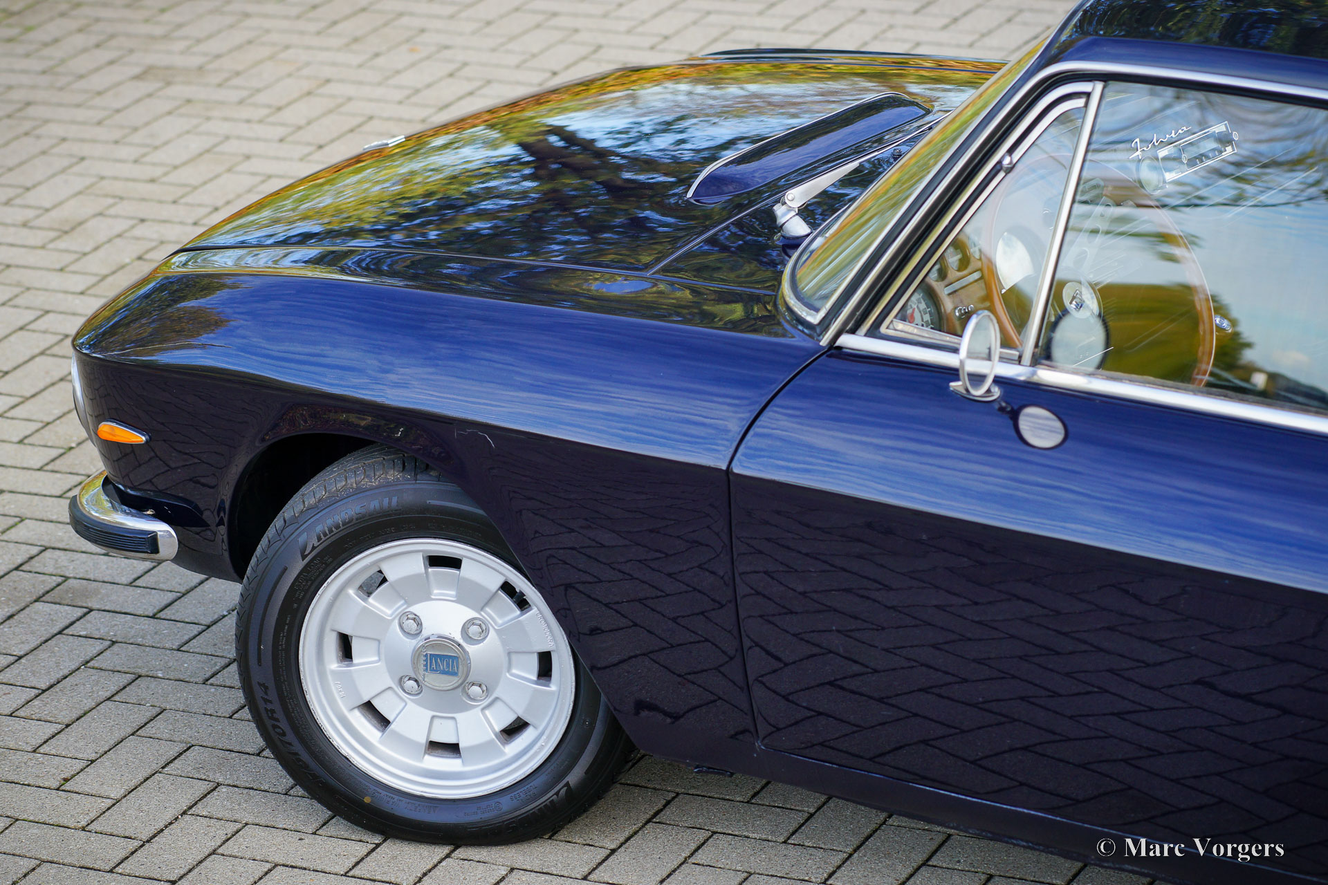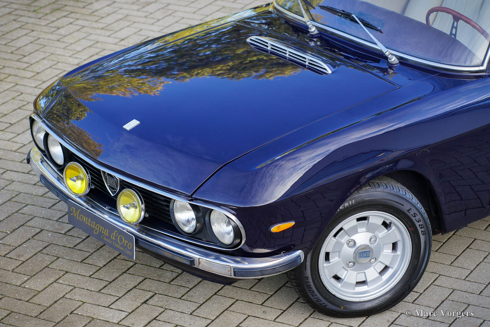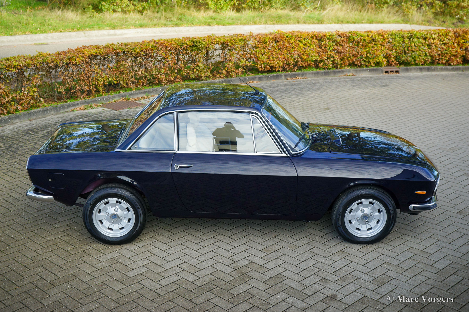 Lancia Fulvia Coupé 1.3 S (3rd series), 1976. Colour dark blue combined with a crème leather interior, light beige vinyl door-trim, and black carpet. This beautiful Lancia Fulvia coupé was sold new in Italy. The car was recently imported from Italy by Montagna d’Oro. The series 3 Fulvia was presented in 1973, and it can be distinguished by the black grille. The interior and instrumentation had received some upgrades over the previous model, but performance figures stayed the same. This very handsome coupe is in a good driver condition with some sighs of use and age to the paint and bodywork. The interior is in a very good condition, and the seats were newly upholstered with leather. The car drives and handles delightfully, and the V4 engine runs beautifully.