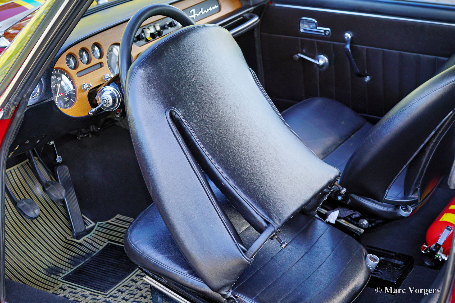 Recent upgrades/renewals: Four new Michelin tyres. Electrical: CCT (computerized) ignition, five new ignition cables, new ignition cover, NGK D8EA spark plugs, new battery, 12 Volt electric Pierburg fuel pump. Suspension and drive train: Four new ball-joints (top and lower), new CV joint driveshafts and rubber sockets, new rear wheel bearings. Brake system: New brake master cylinder (ATE-Bendix), 8 new Stainless Steel T304 brake calliper pistons, four new brake hoses (SAE & TUV conformity), new bronze-copper brake lines, four new hand brake pads, eight new disc brake pads (riveted version not glued). This magnificent and rare Lancia Fulvia 1600 HF ‘Fanalone’ is completely up to date and in perfect condition. This is a great example for the discerning Lancia enthusiast and collector!
