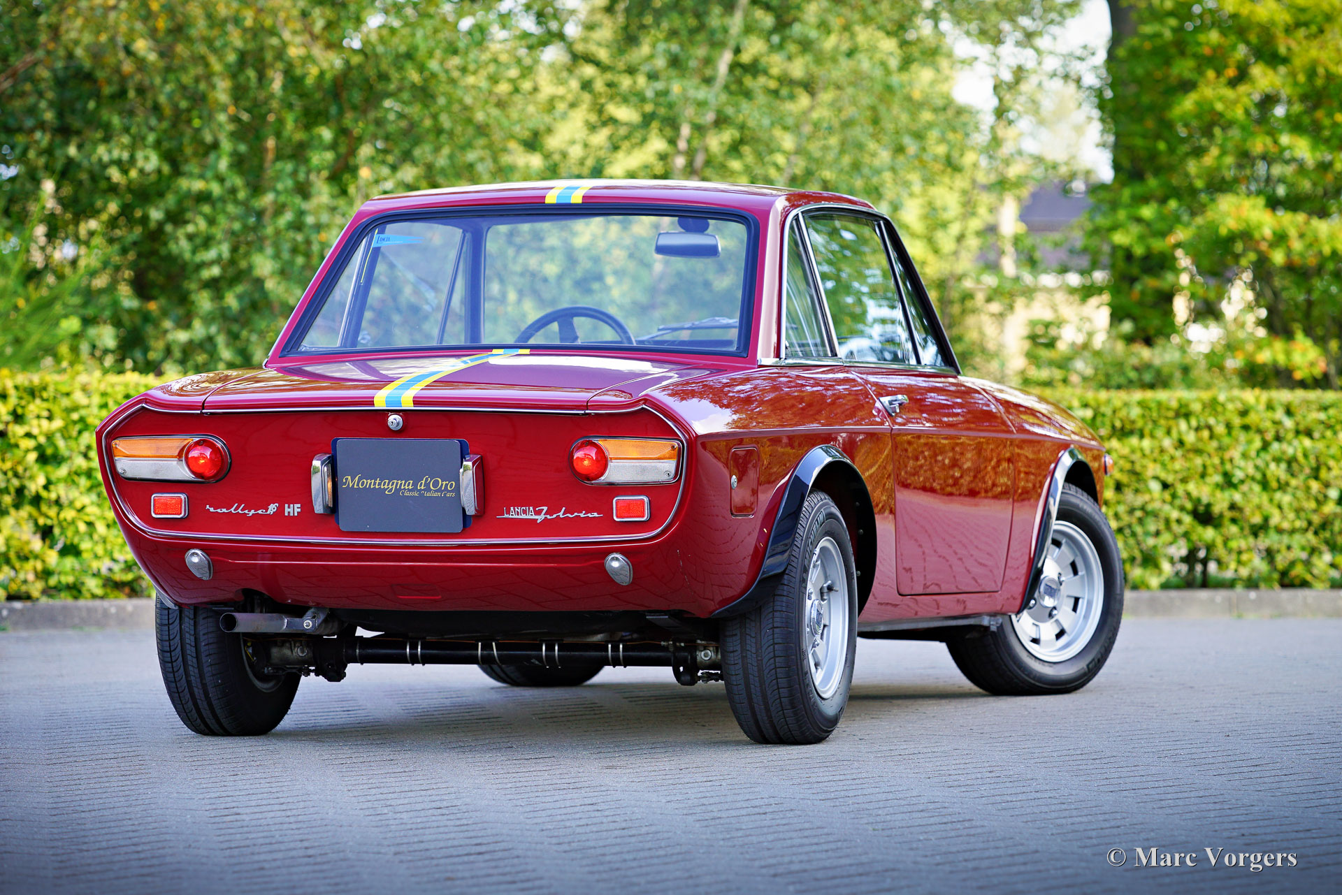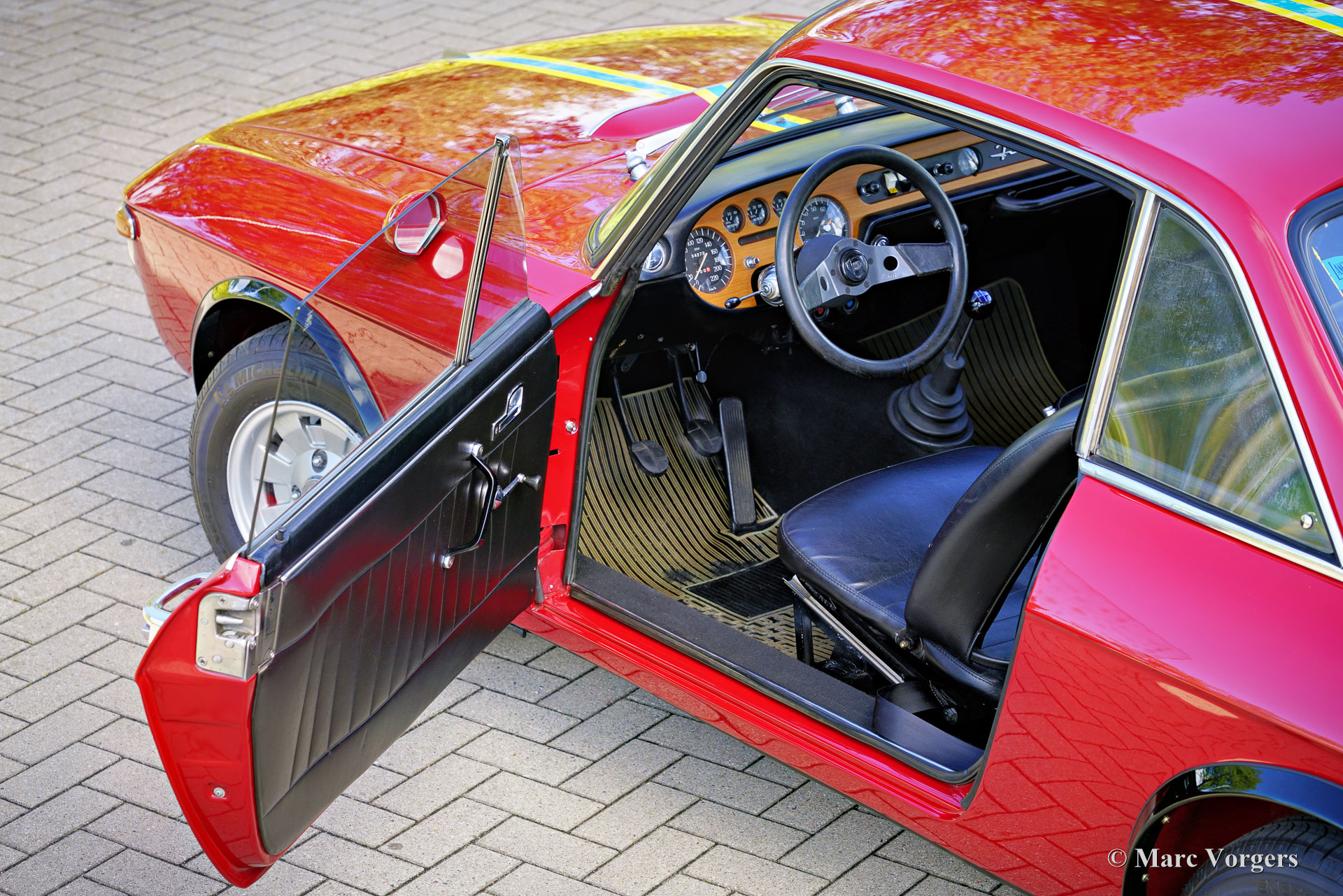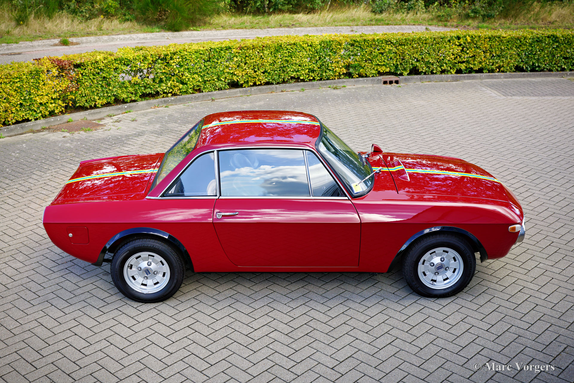 Lancia Fulvia Coupe 1600 HF ‘Fanalone’, year 1971 (built in 1970, first registration 3 February 1971). Chassis (VIN) number 818.540.001.101, engine number 818.540.226.4676. Colour dark red with yellow and blue striping combined with a black leathercloth interior and black carpet. This Lancia Fulvia Coupé 1600 HF is the holy grail of the programme. It is an original so called ‘Fanalone’ (big headlamps) version of which only 1258 cars were built from 1968 until 1970. The easiest way to distinguish this special version is by the triangular holes between the big headlights and the grille. This original sporting version is built using a lot of aluminium panels, plexiglass rear window and rear side windows, no bumpers, and a minimal interior to save on weight. This Lancia Fulvia was extensively restored in the past; the car is in a superb top condition! The car shows all the original details and is fitted with the special original Ferrero steering wheel with the engraved autograph of Sandro Munari (legendary Lancia rally driver). The bodywork has received a full Waxoil treatment of the hollow spaces. The odometer currently reads 64272 kilometres. Recently the Lancia received and extensive service and adjustment of the ignition and the carburettors on a Dynamometer (Dyno test). The engine delivers a very healthy 133 (DIN) hp.