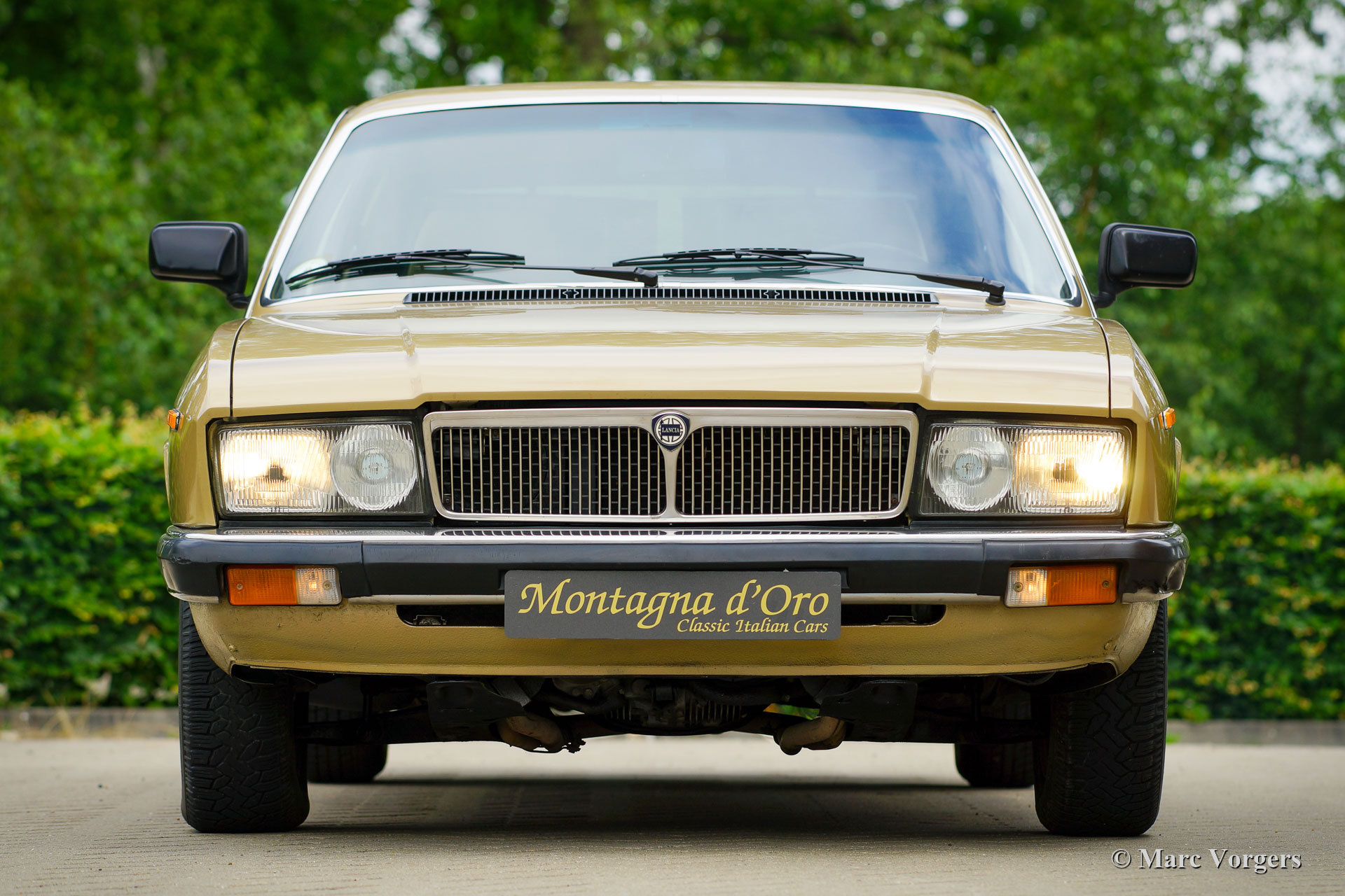 Lancia Gamma 2000 Berlina, year 1981. Chassis number ZLA830A32000066XX, engine number 830A2000*0112XX* Colour gold metallic (Oro Metallizato) combined with a beige cloth interior and dark brown carpet. The Lancia Gamma Berlina of the 2nd series (1980-1984) with the 2 Litre flat-four engine was only sold in Italy, a rare model of which only 2465 were built. The car was designed by Pininfarina and technically everything on the Gamma was the cream of the crop. The Gamma features all independent suspension, four-wheel disc brakes and a five-speed gearbox. This wonderful example was delivered new to Francesco and Anna Marzo on 21 March 1981 by the Lancia representative in Lecce, Italy. Mr. Marzo was a doctor in the local hospital, and the car was used in the weekends and for longer journeys. Mr. Marzo passed away in the year 1997. From that moment the Lancia was kept in garage. Mrs. Marzo could not say goodbye to the Lancia. After she died, over twenty years later, the car was sold by the family. Our contact found the Lancia in fully original condition and with just over 21.100 original kilometres on the odometer. The car was given a perfect and professional new paintjob and the rear lamp lenses (which showed some cracks) were renewed. The beige cloth interior and the brown carpet is still in perfect and like new condition! After internal cleaning and service of the mechanical parts, we have brought the engine back to life. The timing belt will be renewed with the check-out service on delivery of the car. The odometer currently reads 21.136 kilometres. This Lancia Gamma Berlina is in a very good original condition! The car comes with Italian documents. This rare Lancia Gamma Berlina is a beautiful find for the Lancia collector / enthusiast.