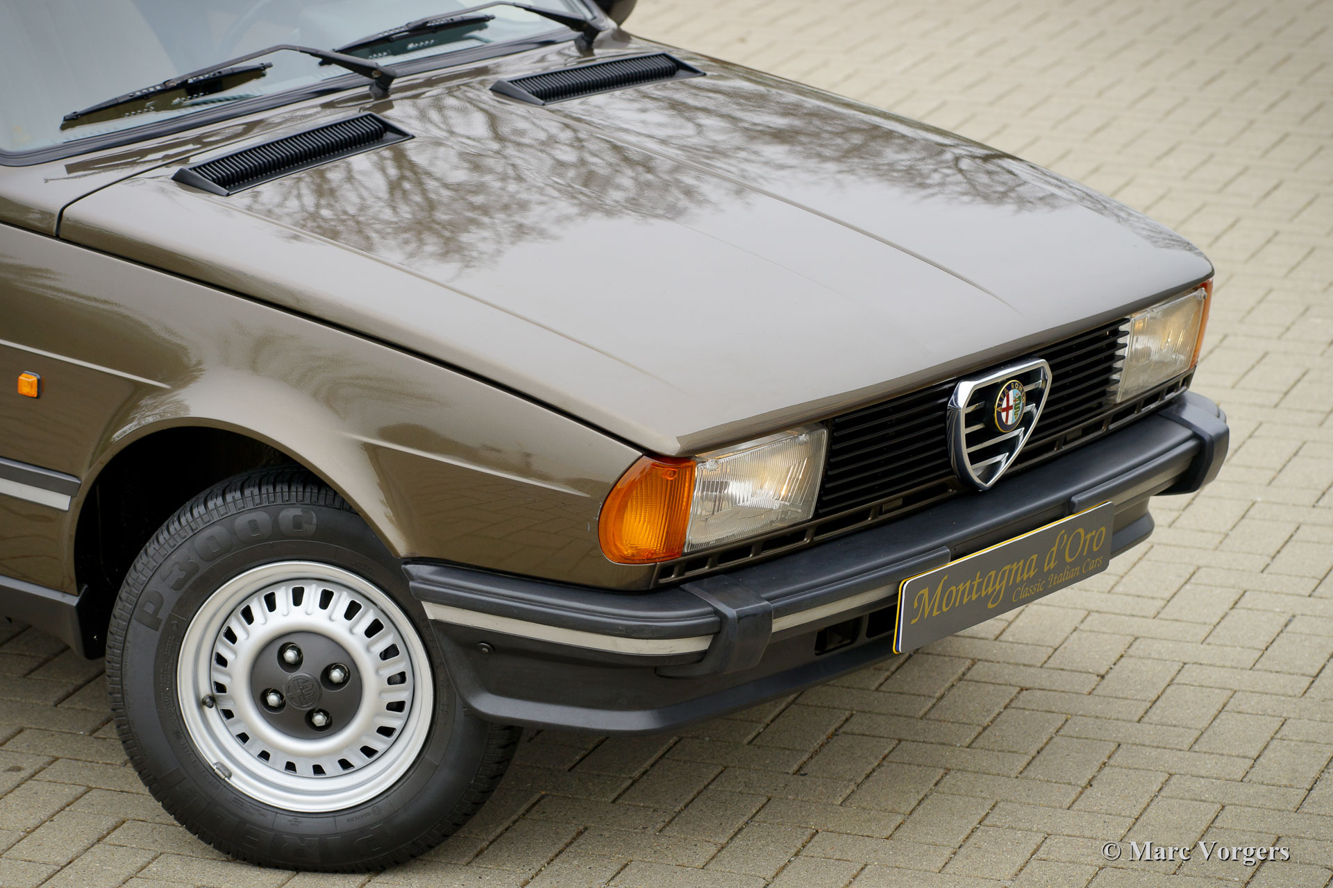 Alfa Romeo Giulietta 1.6 Lusso, year 1983. Colour Olive green Metallic (Metall. Luci del Bosco AR543). This gorgeous Alfa Romeo Giulietta 1.6 Lusso was sold new in Italy. The car was purchased from Mr. Conco from Sacanna Paolo. Now the car is registered in the Netherlands. From new the car has driven only 89.653 km which is confirmed by the service history. This Alfa Romeo Giulietta is in a superb top condition! The bodywork and the paint are factory original and like new! On the passenger side door, you will find a mark in the paint which was caused by an alfa Romeo factory employee who had put his hand on the unpainted body… A slight blemish but special at the same time. The luxurious “Lusso” interior is also in pristine and like new condition, as is the engine compartment and the boot. The Giulietta is a very sporty sedan, very much coveted by sporty and stylish car enthusiasts of the period. With a twin-cam engine, disc brakes around, a “transaxle” 5-speed gearbox (like the Alfetta) installed just in front of the rear suspension giving a near 50-50 weight distribution, and a de-Dion rear axle the Giulietta has a sports car like setup. The car shows all the original details and is fitted with a Philips stereo radio cassette system. The bodywork has received a thorough Waxoyl anti corrosion treament. This might be one of the best preserved fully original Alfa Romeo Giulietta’s of this type you will find on the market!