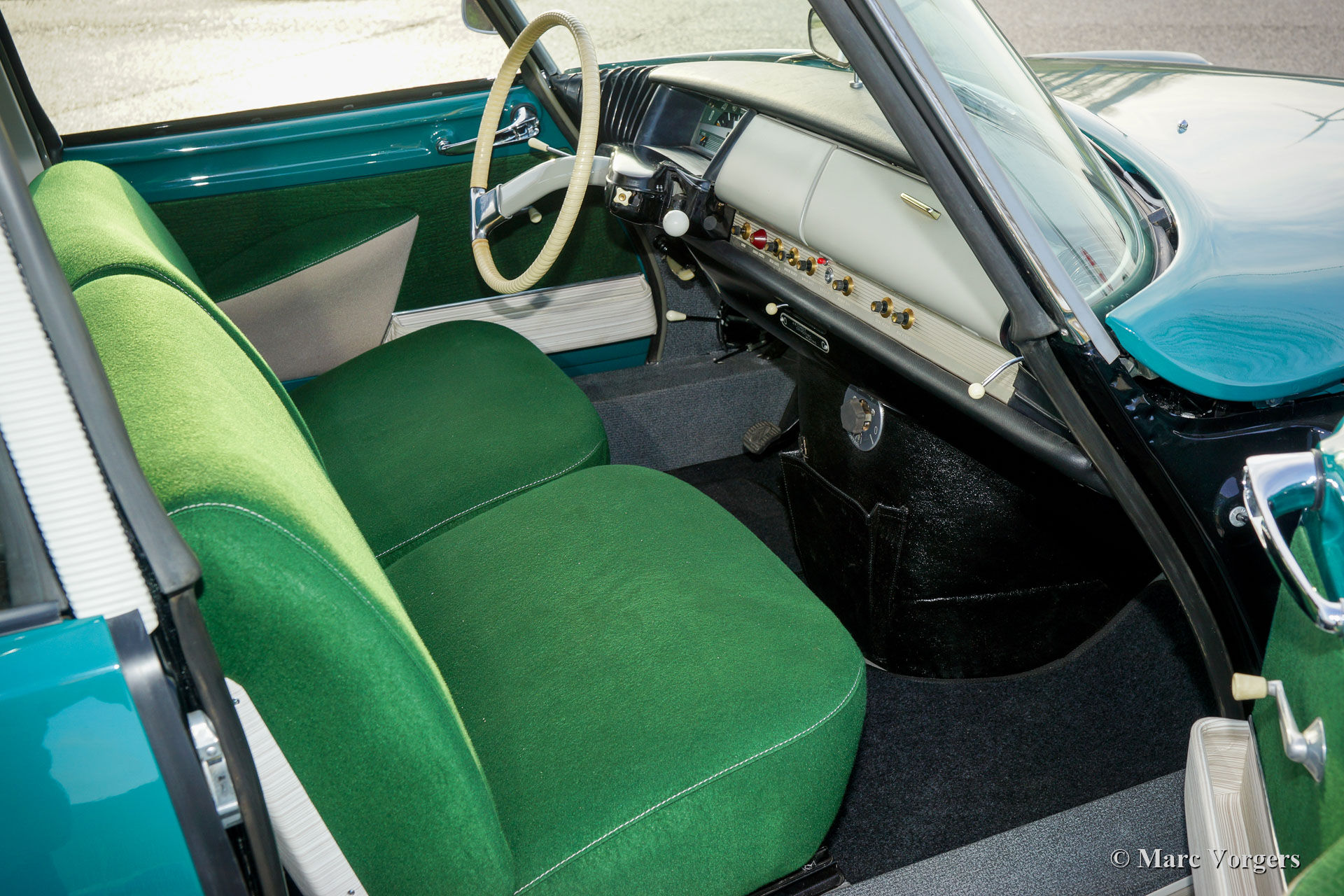 Citroën ID19 P, year 1964. Colour green with a crème roof-top and a green / crème cloth interior. This gorgeous Citroën ID 19 was sold new in the United States. After the car was imported from California to the Netherlands, the car was extensively ‘nut and bolt’ restored to perfection in the period 2017-2019. Of course, the powerful four-cylinder engine was overhauled. A photo report of the restoration is present. The car shows all the original details. The interior was newly upholstered to original specifications. The dashboard features many fantastic details like the single spoke steering wheel, the vent-levers, and the many small switches. Wherever you look everything looks like brand new! This Citroën ID19 P is fitted with a four speed manually operated gearbox. This stunning Citroën looks a picture, and it drives perfectly. The hydraulic suspension and hydraulically operated brakes and clutch all work smooth and like new. The driving experience is unsurpassed by any large saloon of the 1960s because of the hydropneumatics suspension; you feel like driving a ‘magic carpet’! This is a superb specimen for the true enthusiast and avid collector.