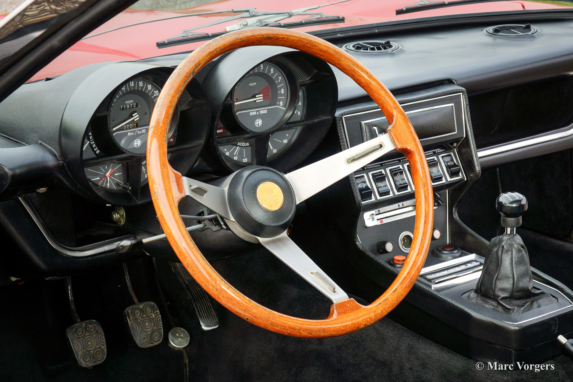 The Alfa Romeo Montreal drives comfortable/ sportive and is very well suited to drive long distances; a real GT. The engine sounds incredible, also inside the cabin. The dashboard design combined with the view over the bonnet is exquisite.