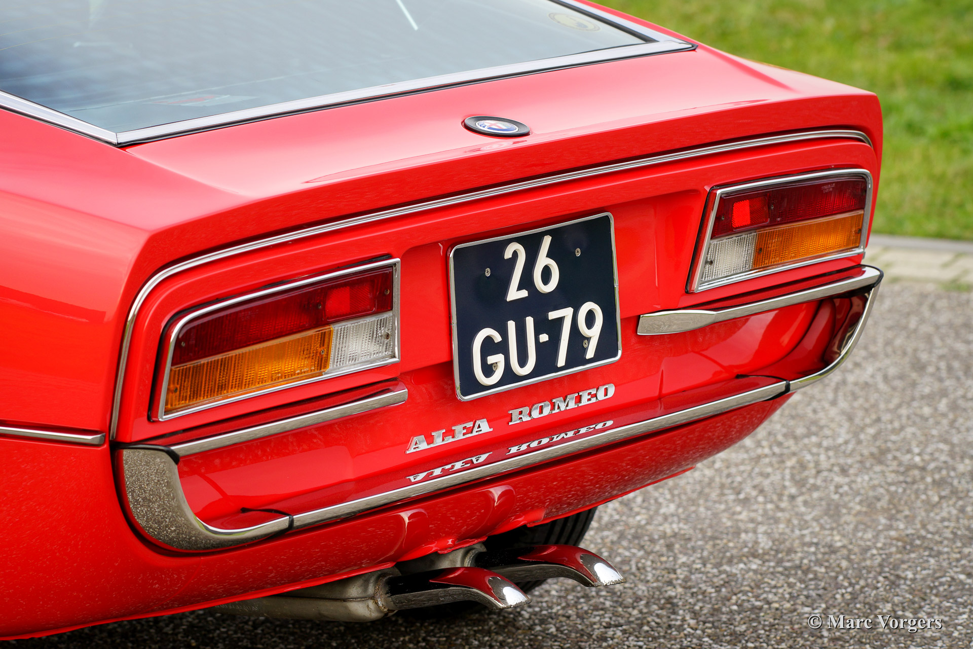 All other mechanics are as to be expected from Alfa Romeo in the late sixties and early seventies of the twentieth century: 5-speed floor shift gearbox, coil springs all round, independent front suspension, limited slip differential and disc brakes all round.