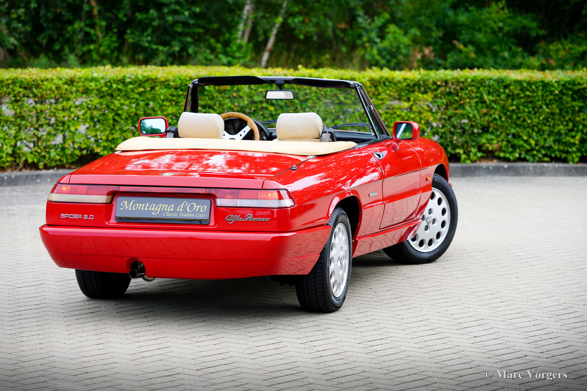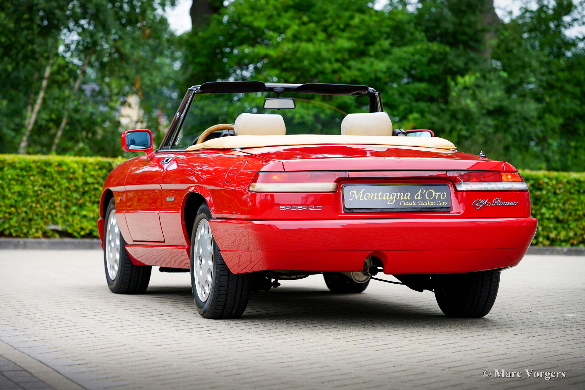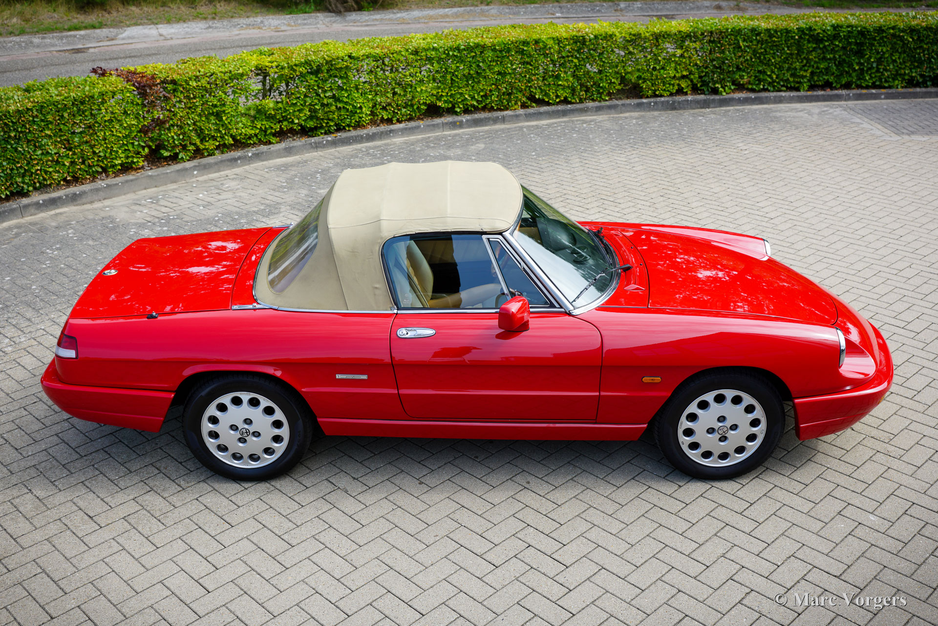 Alfa Romeo Spider 2.0 (Type 4), year 1991. Chassis (VIN) number ZAR11500006013677, engine number 115A1*01590*. Finished in wonderful Alfa Romeo red (AR501) and the interior upholstered in beige cloth and faux leather this Alfa Romeo Spider looks a picture. The car was imported to the Netherlands in December 2002, and the car was enjoyed by the second Dutch owner since June 2010. The odometer currently shows 154.410 kilometres, and the car is in a very good condition! In 2020 the car was given a full professional repaint and at 139.000 kilometres the engine and the gearbox were overhauled by the firm of Rinsma in Berlikum the Netherlands. The total costs of the improvements exceeding the €10.000 mark. The interior shows slight signs of previous use nut is very good for its age. The hood is still original and watertight. The hood fabric shows signs of age and some wear around the side edges. The Alfa Romeo (Giulia 105 series) Spider story started with the Spider Duetto in 1966, the type 4 was the last of this successful series and was produced until 1994! The Alfa Romeo Spider cars offer a sporty, yet comfortable driving experience, and the model features a very user-friendly soft-top which can be folded up or down in a matter of seconds. The fuel injected 1962 cc four-cylinder twin-cam engine delivers a healthy 120 bhp propelling the Spider to a top-speed of 190 km/h. The Alfa Romeo Spider 2.0 Type 4 is a delightful and sporty tourer suitable for long journeys and ‘hotel hopping’ holidays all over Europe.