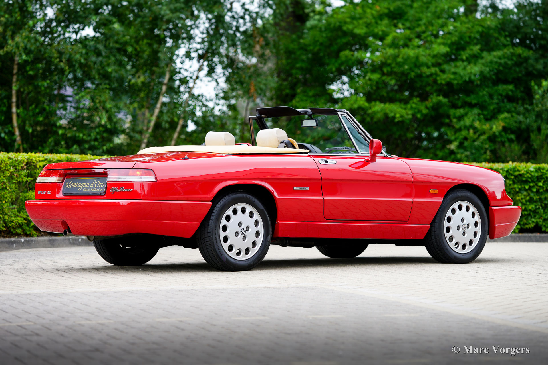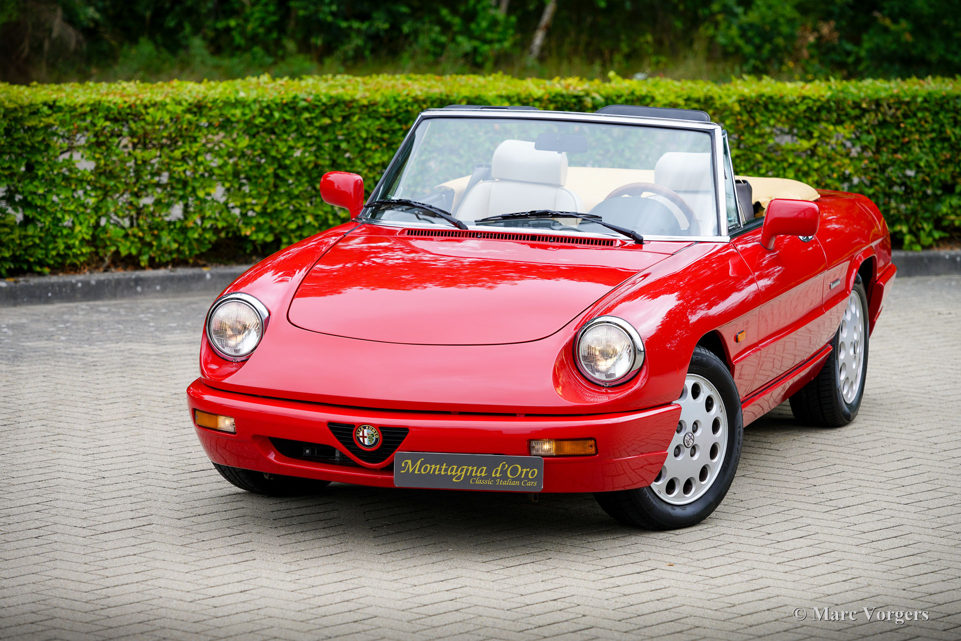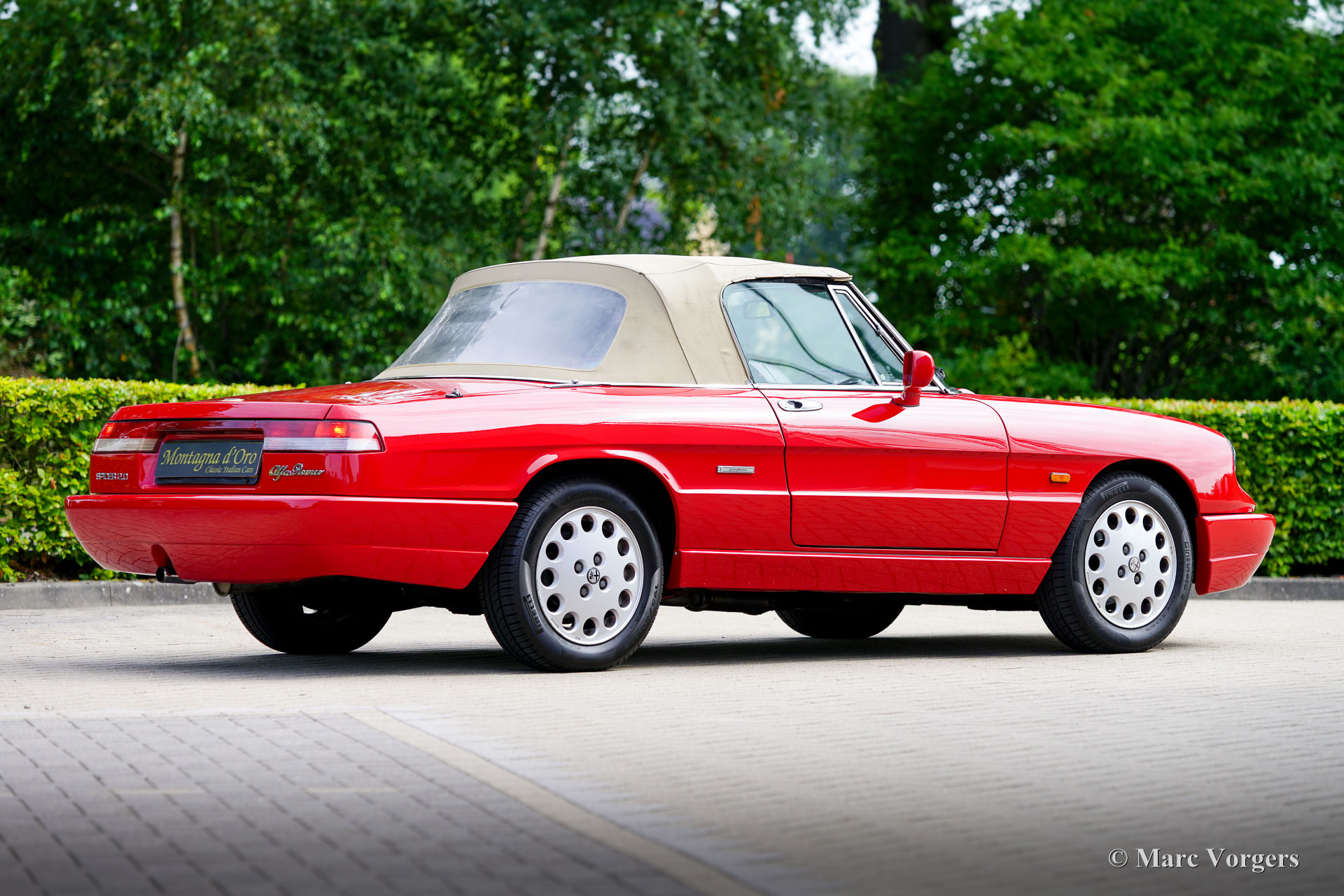 Alfa Romeo Spider 2.0 (Type 4), year 1991. Chassis (VIN) number ZAR11500006013677, engine number 115A1*01590*. Finished in wonderful Alfa Romeo red (AR501) and the interior upholstered in beige cloth and faux leather this Alfa Romeo Spider looks a picture. The car was imported to the Netherlands in December 2002, and the car was enjoyed by the second Dutch owner since June 2010. The odometer currently shows 154.410 kilometres, and the car is in a very good condition! In 2020 the car was given a full professional repaint and at 139.000 kilometres the engine and the gearbox were overhauled by the firm of Rinsma in Berlikum the Netherlands. The total costs of the improvements exceeding the €10.000 mark. The interior shows slight signs of previous use nut is very good for its age. The hood is still original and watertight. The hood fabric shows signs of age and some wear around the side edges. The Alfa Romeo (Giulia 105 series) Spider story started with the Spider Duetto in 1966, the type 4 was the last of this successful series and was produced until 1994! The Alfa Romeo Spider cars offer a sporty, yet comfortable driving experience, and the model features a very user-friendly soft-top which can be folded up or down in a matter of seconds. The fuel injected 1962 cc four-cylinder twin-cam engine delivers a healthy 120 bhp propelling the Spider to a top-speed of 190 km/h. The Alfa Romeo Spider 2.0 Type 4 is a delightful and sporty tourer suitable for long journeys and ‘hotel hopping’ holidays all over Europe.