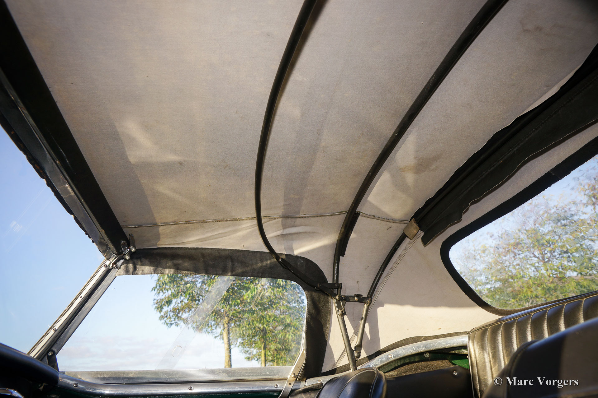 The former Healey models were more Spartan and featured fully detachable soft tops with separate side screens which could be stowed away in the booth.