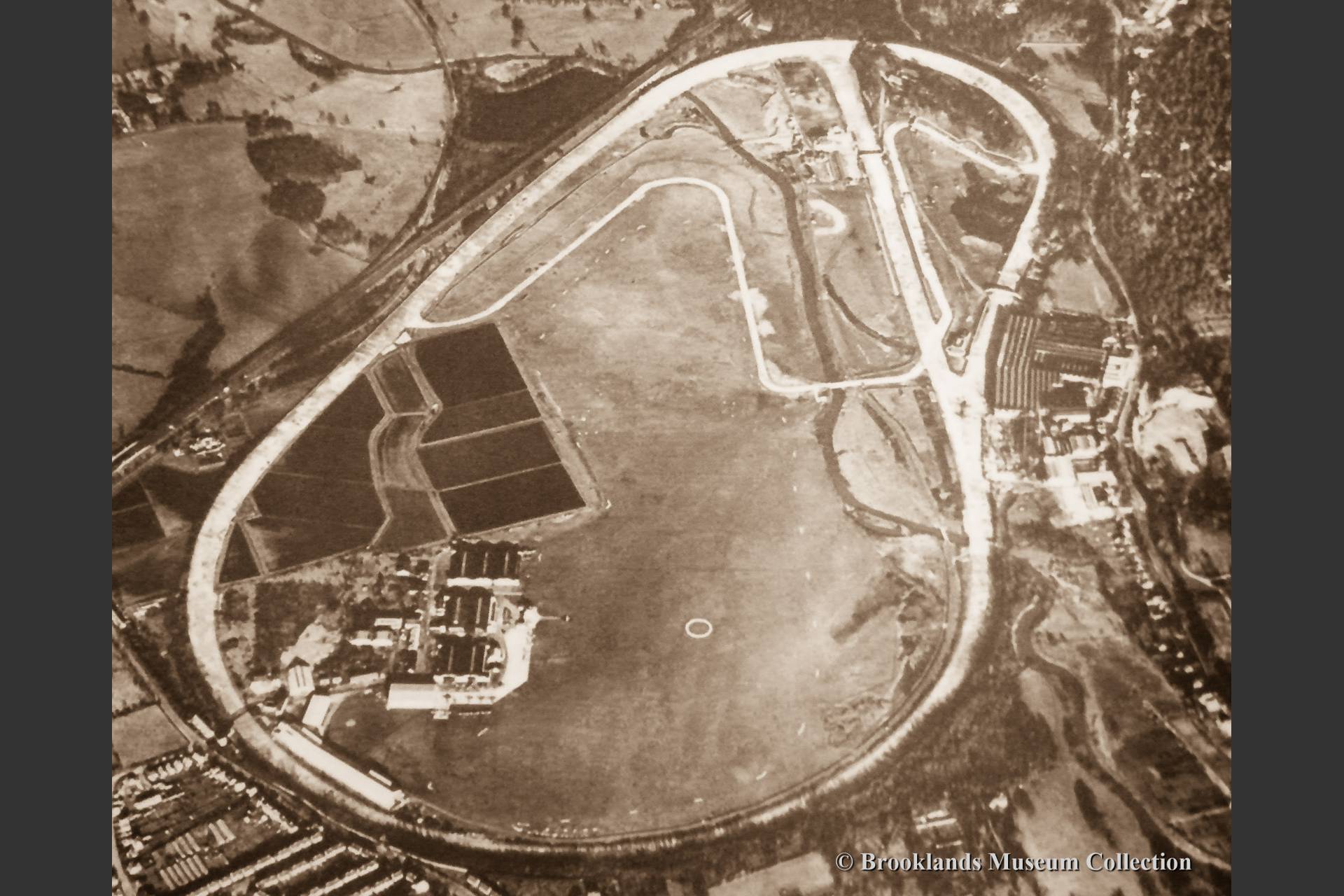 3 Aerial photo of Brooklands in the late 1930ies incorporating the 'mountain circuit' and the 'Campbell circuit'