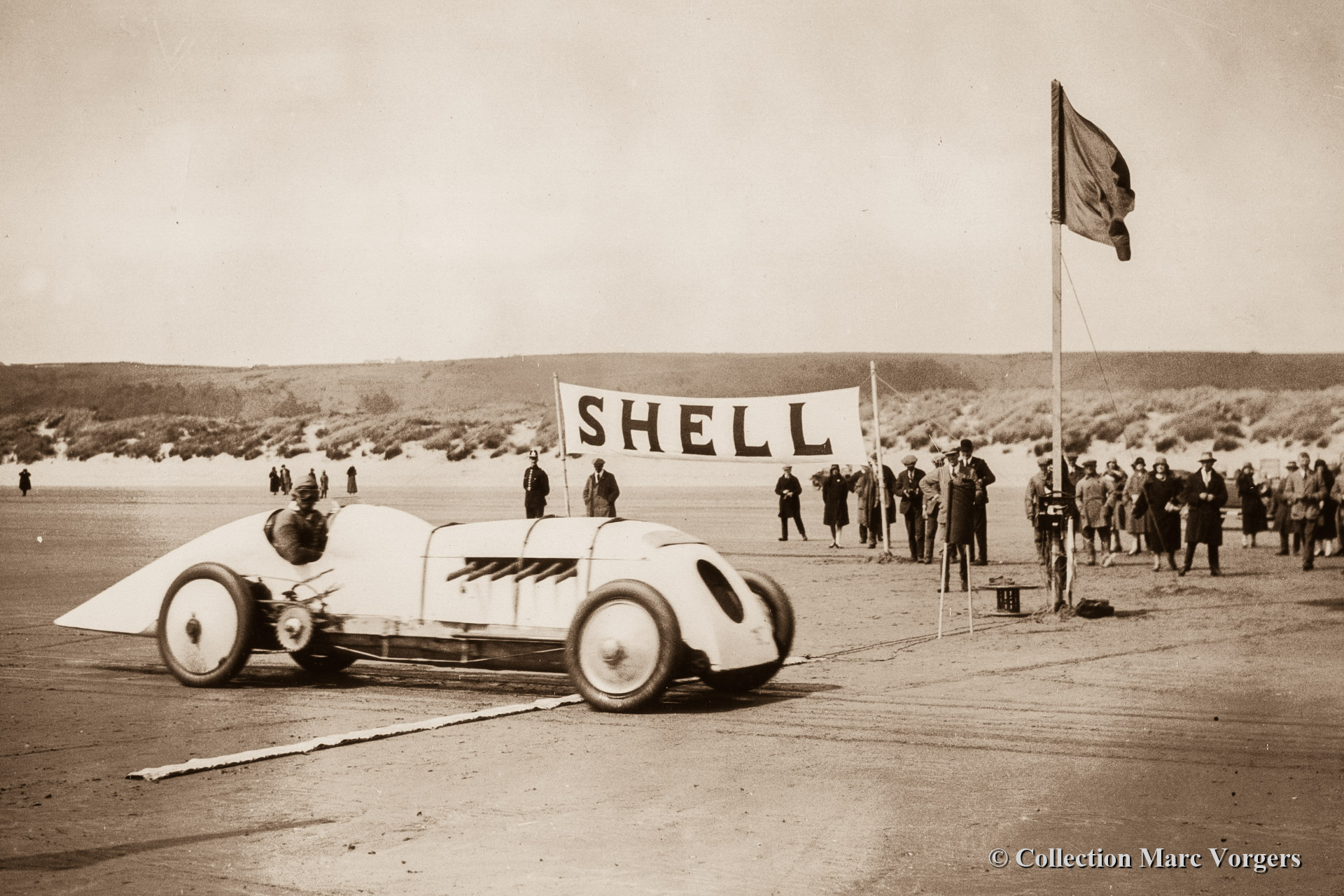 40 Parry Thomas crossing the line during his Land Speed Record bid with BABS at Pendine Sands April 1926. World's absolute speed record 171.02 mph. (273.6 km/h.)