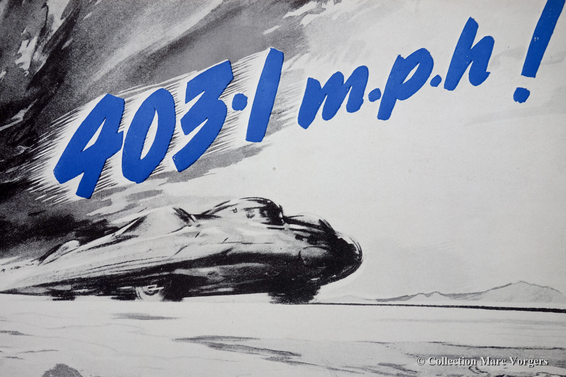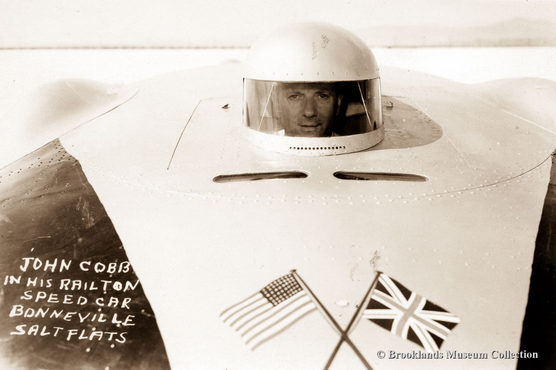 91 After the Second World War, in 1947, John Cobb took the Railton Mobil Special to Bonneville. Now sponsored by the Mobil oil firm. He set a new LSR for wheel driven vehicles of 394.19 MPH (643.39 km/h). This speed is the average of two runs over the measured mile. The second run was clocked at a speed of 403.1 mph (695 km/h.) making John Cobb the first to break the 400 mph mark! This 1947 absolute Land Speed Record for wheel driven vehicles stood for seventeen years as it was broken by Donald Campbell the son of Malcolm Campbell the most notable regular at Brooklands track