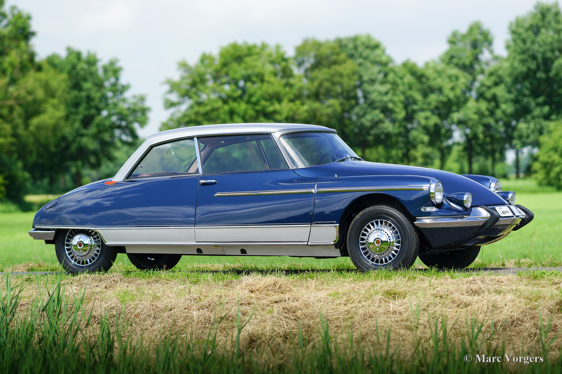 Citroën DS 19 Chapron Concorde, year 1963. Colour blue metallic (Blue Sera) with a silver / white metallic roof-top (Argento Auteuil). Brown leather interior with cloth seat centres. Brown carpet. This magnificent and original Citroën DS19 Chapron Concorde was fully restored to perfection by a renowned Dutch Citroën restorer.