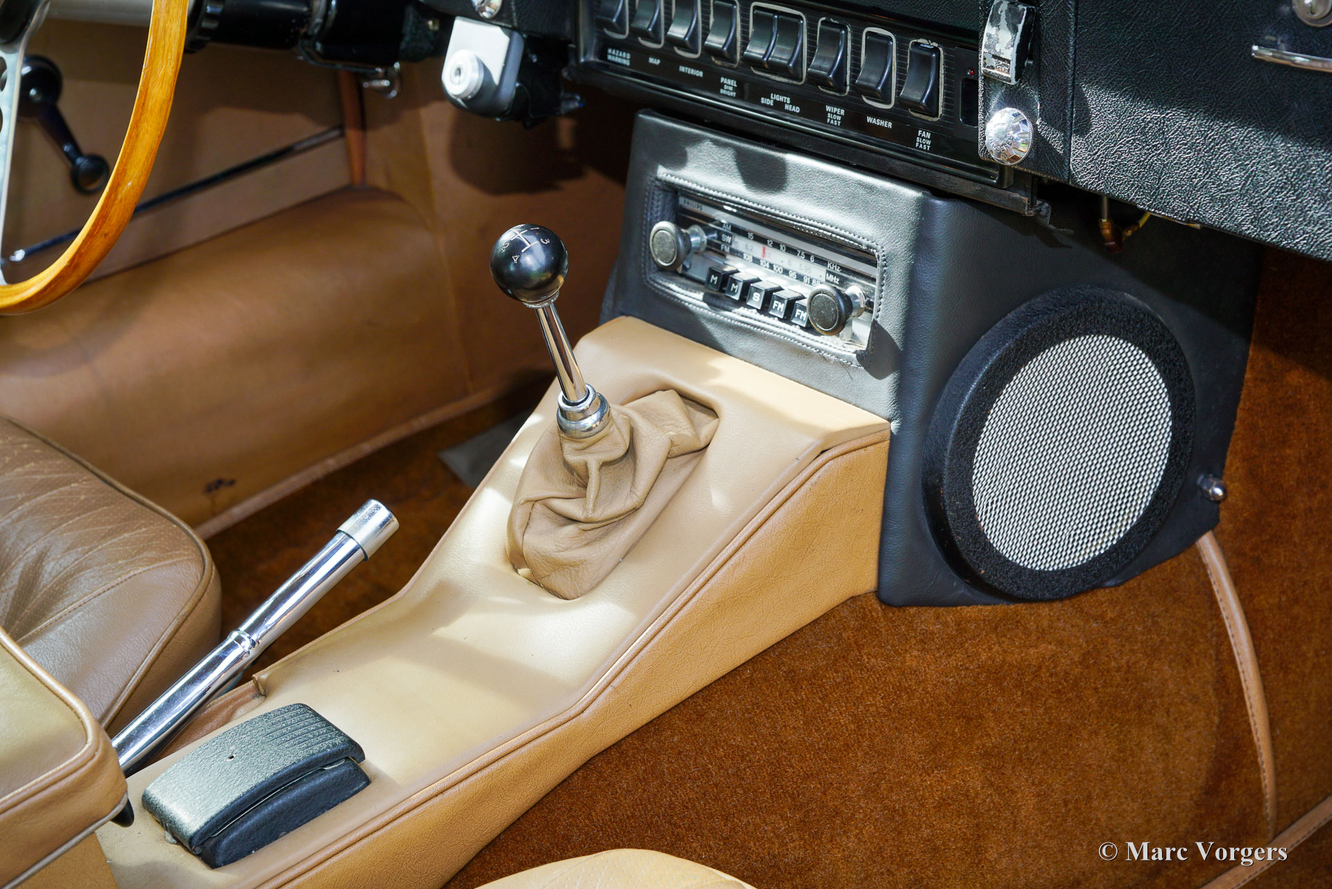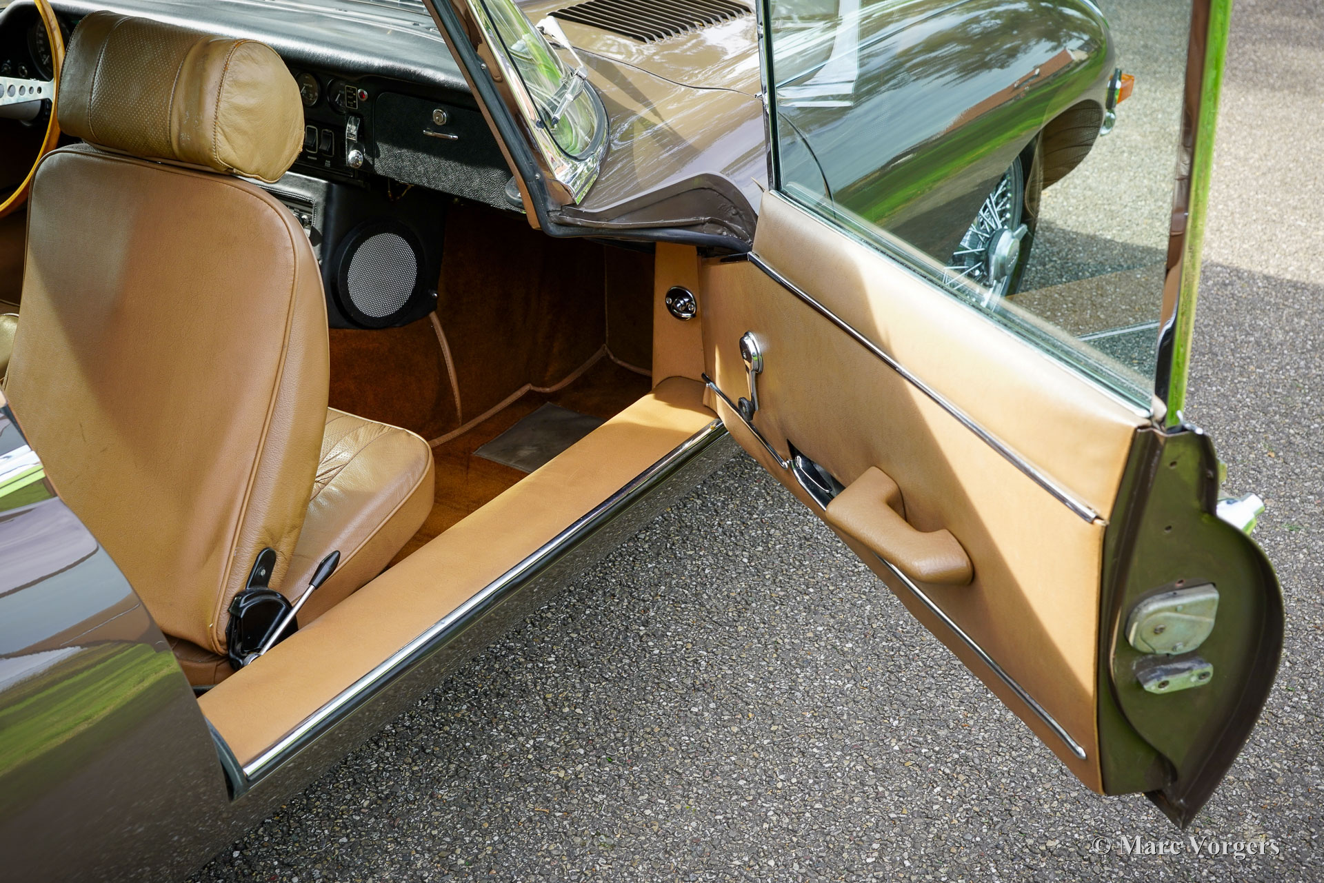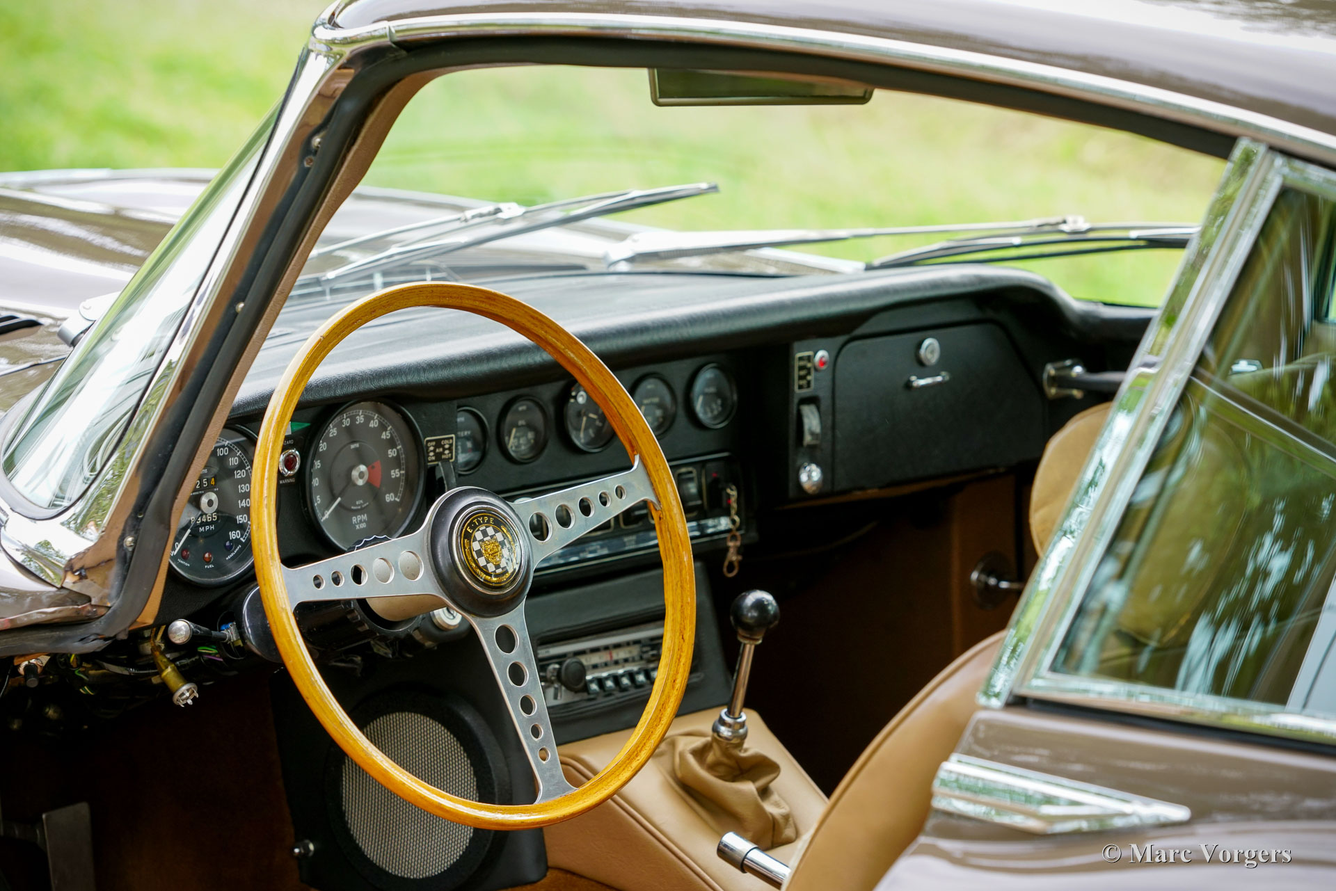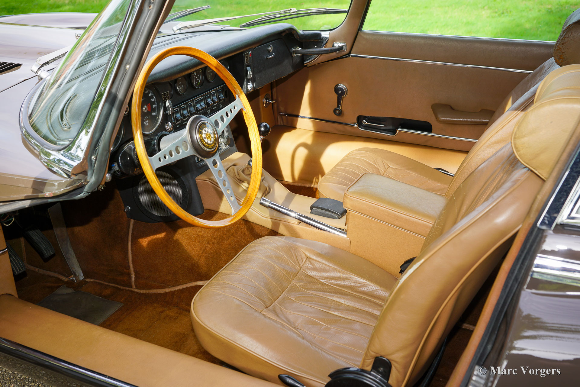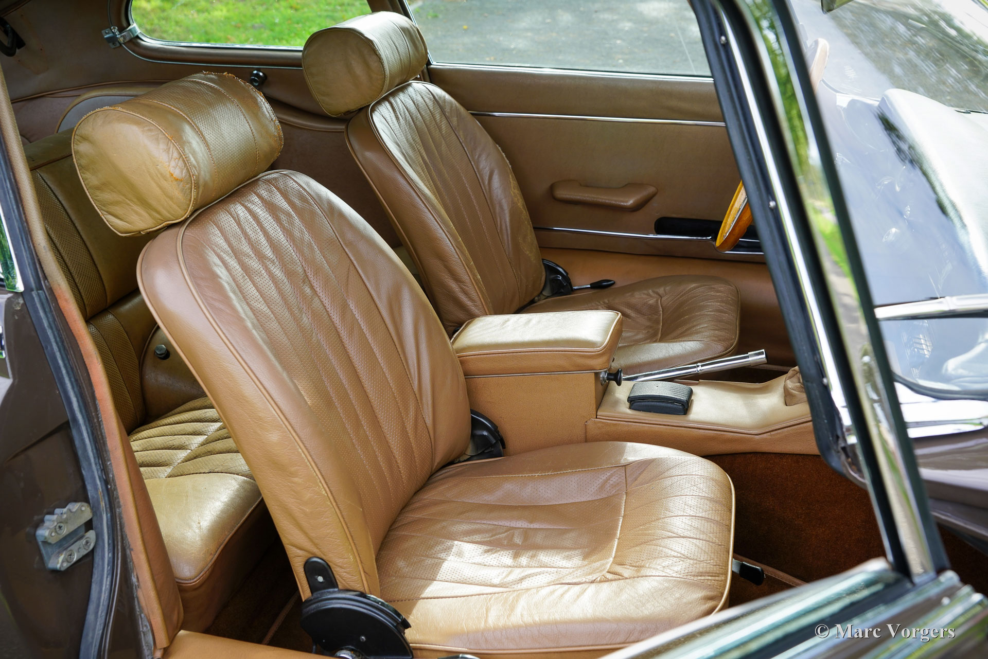 Jaguar E-Type 4.2 Litre FHC 2+2 series 2, year 1969. Colour brown (Sable) combined with a tan (beige) leather interior trimmed with brown carpet. This gorgeous Jaguar E-type of the second series was sold new in the USA. The second series can be distinguished by the open headlamps, and the new rear light cluster below the bumper. The automobile was imported to the Netherlands in 1989. Ever since, the car was cherished by only two enthusiast owners of which the latter owned the car since 2009. This wonderful Jaguar E-type 4.2 Litre FHC (Fixed Head Coupé) is in a good and very original condition! The bodywork was once repainted, the front seats were given new leather upholstery in the past, and the carpet was renewed. The original leather on the head rests, and rear bench show traces of age. This wonderful Jaguar E-type features the very desirable manual gearbox option and three S.U. carburettors. Very special is the presence of a Philips Tourismo FM radio, an original factory option and a sought-after E-type accessory these days. Furthermore, the car sports chrome wire wheels show with 185/15-inch Vredestein Sprint Classic tyres and the original toolset. This Jaguar E-type drives, sounds, and feels perfectly, this is a desirable driver car in beautiful vintage condition!