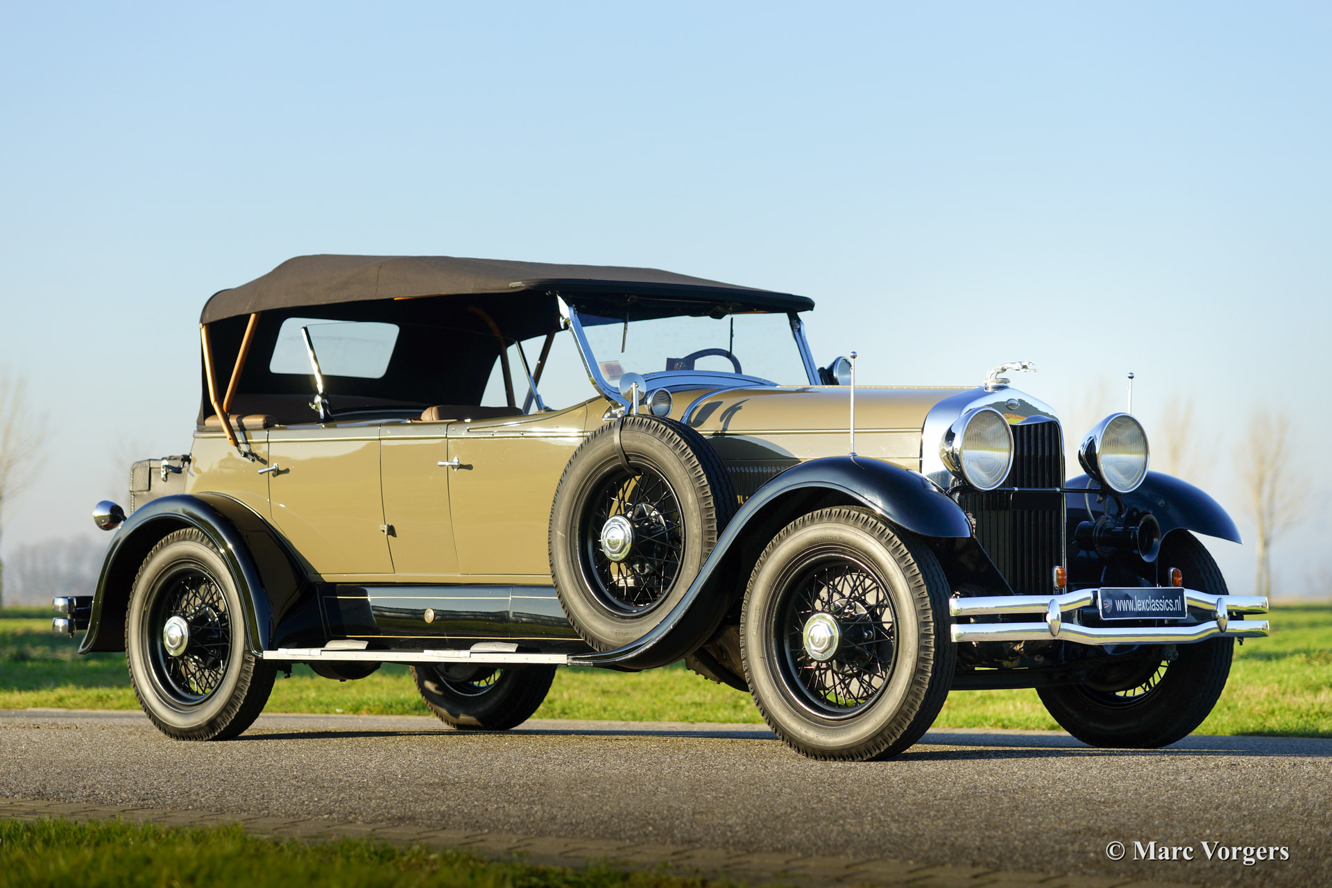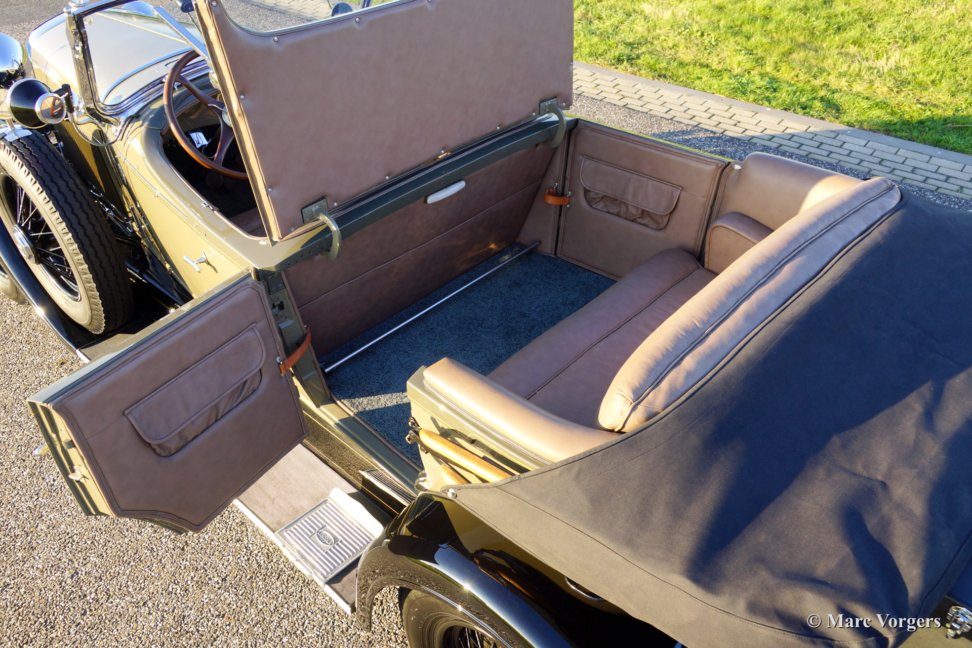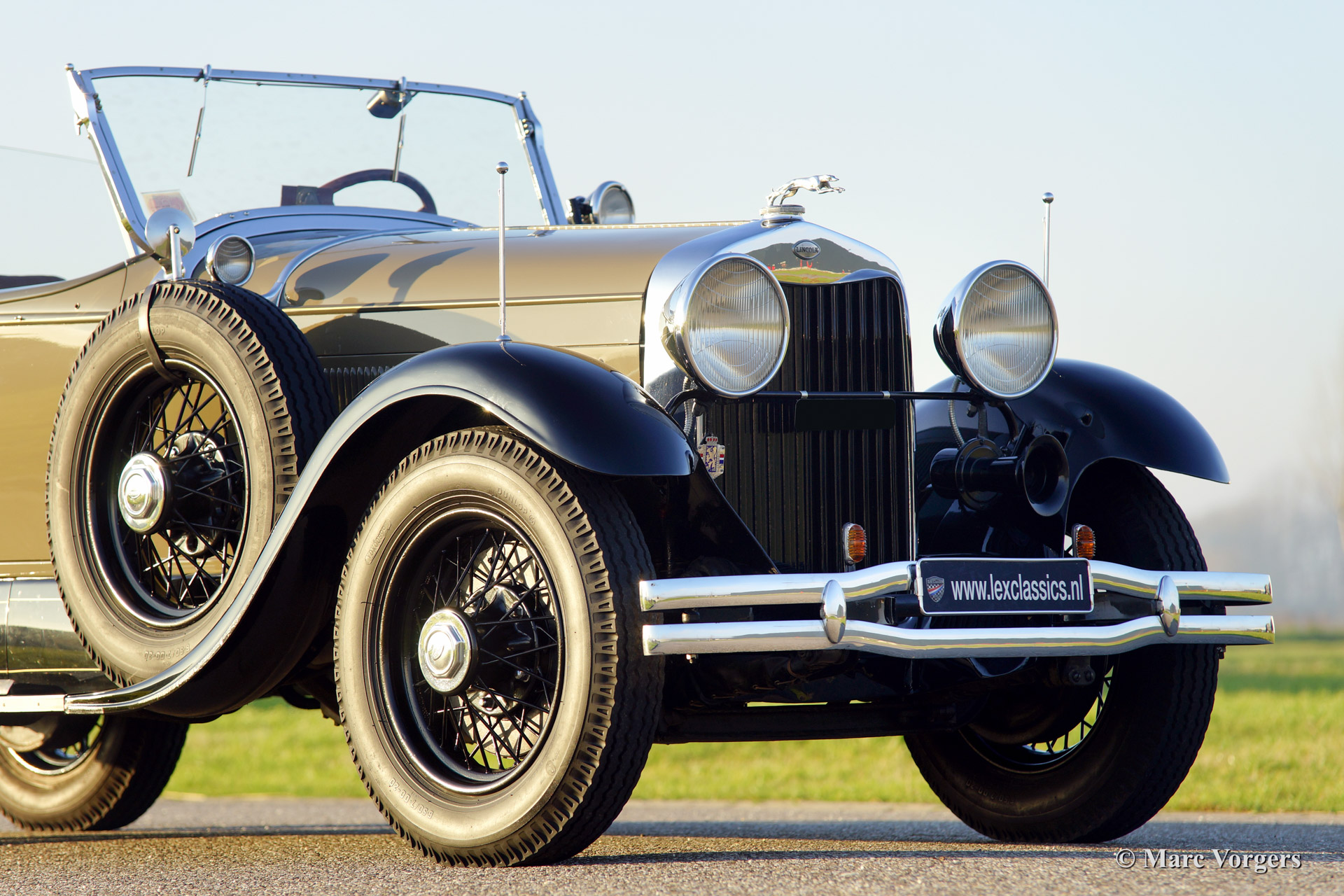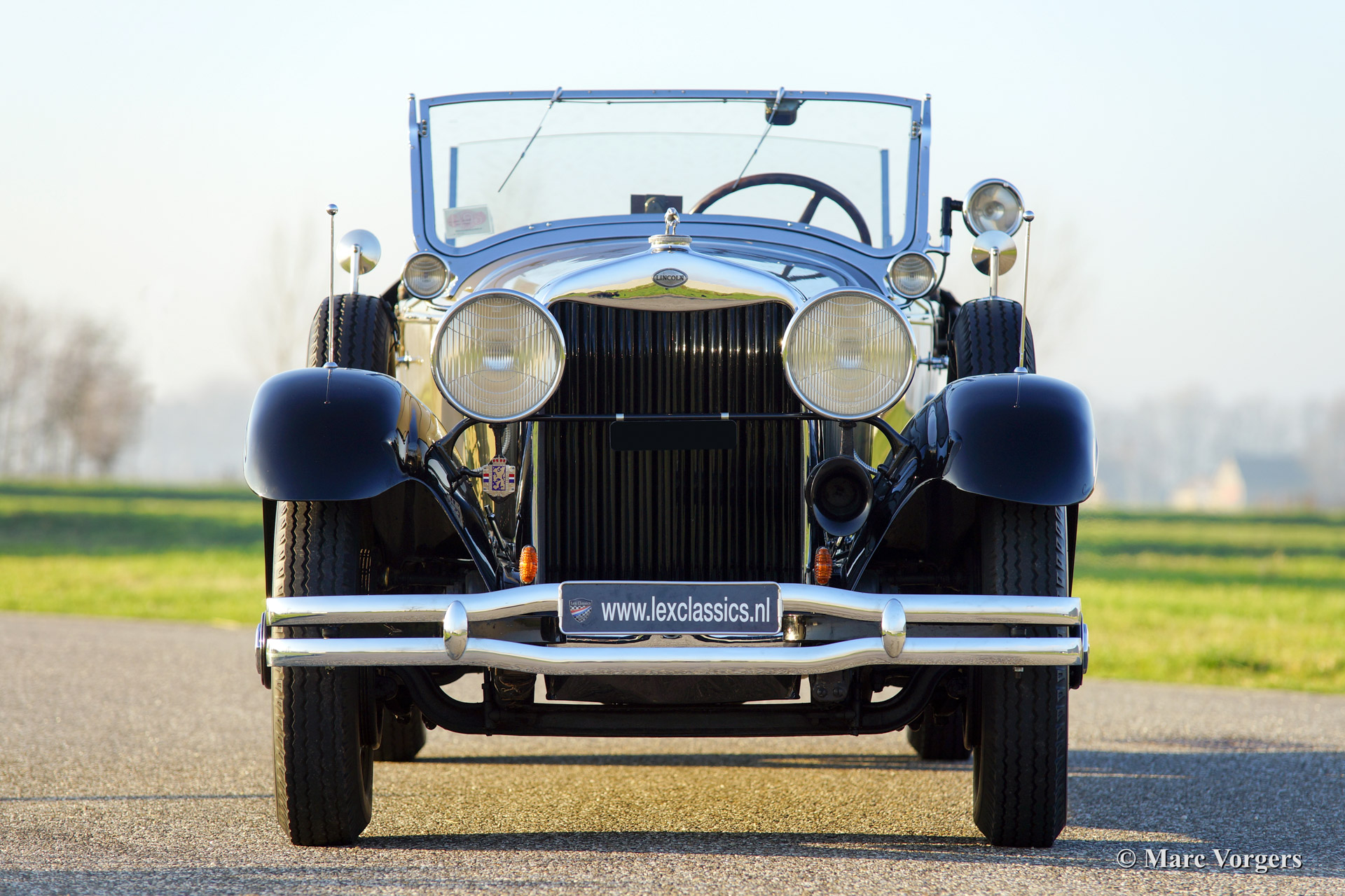 This 1928 Lincoln model L Sport Phaeton was sold new in The Netherlands. The first owner Mr. M. van Marwijk-Kooy purchased the motorcar at Schutter & van Bakel coachbuilders located in Amsterdam. 1930'ies photo's picturing the Lincoln in front of the old 'van Vollenhoven' residence in 'de Bilt' are present. The family still owns this property in The Netherlands.