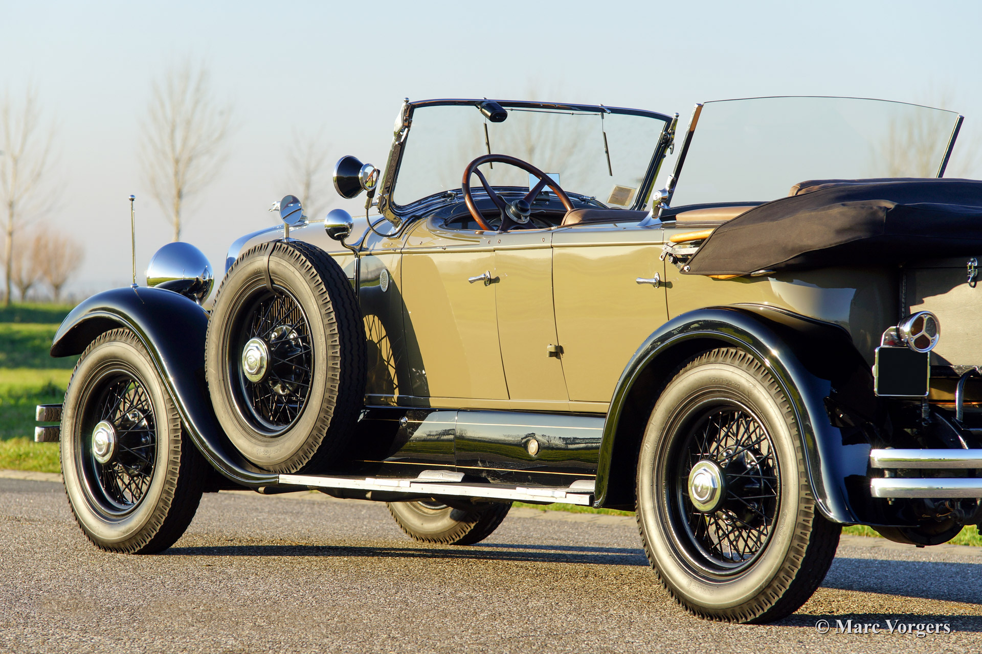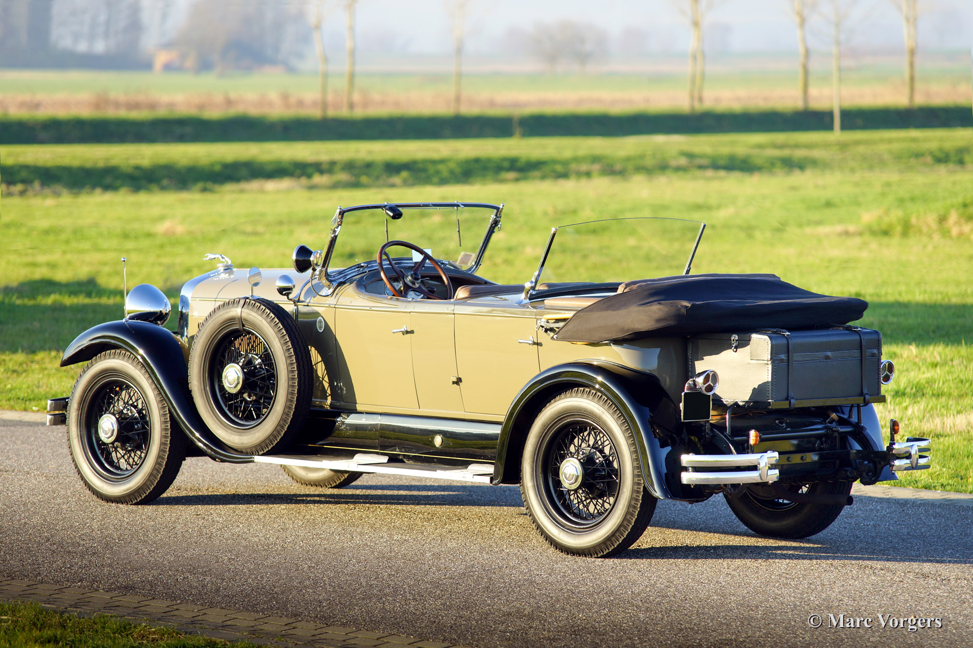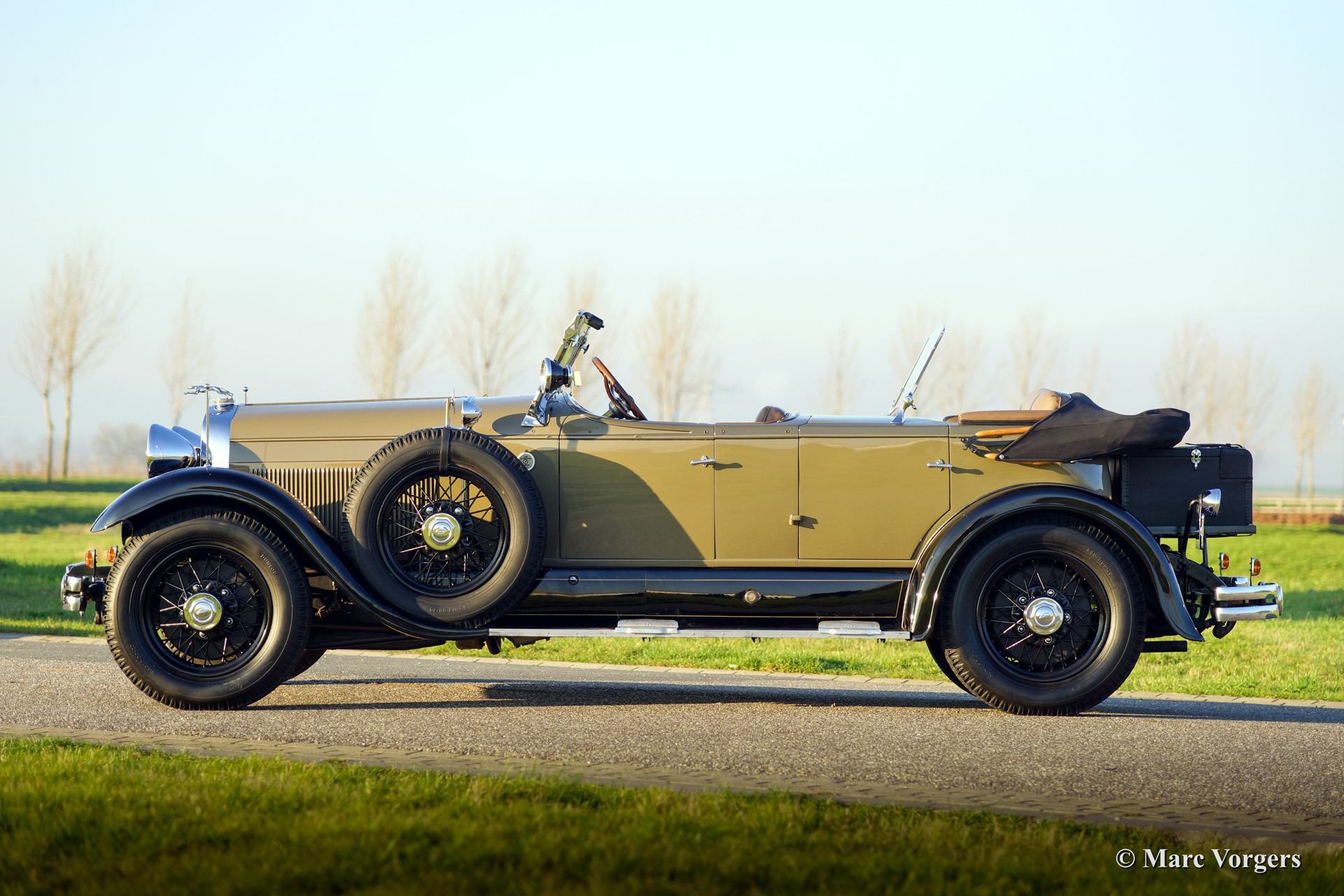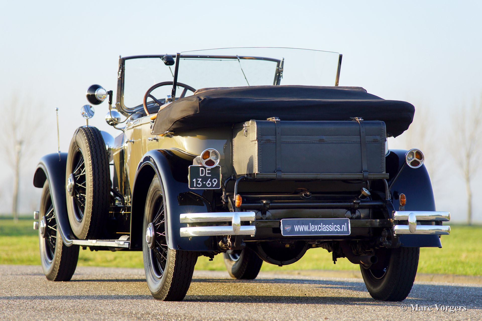 This 1928 Lincoln model L Sport Phaeton was sold new in The Netherlands. The first owner Mr. M. van Marwijk-Kooy purchased the motorcar at Schutter & van Bakel coachbuilders located in Amsterdam. 1930'ies photo's picturing the Lincoln in front of the old 'van Vollenhoven' residence in 'de Bilt' are present. The family still owns this property in The Netherlands.