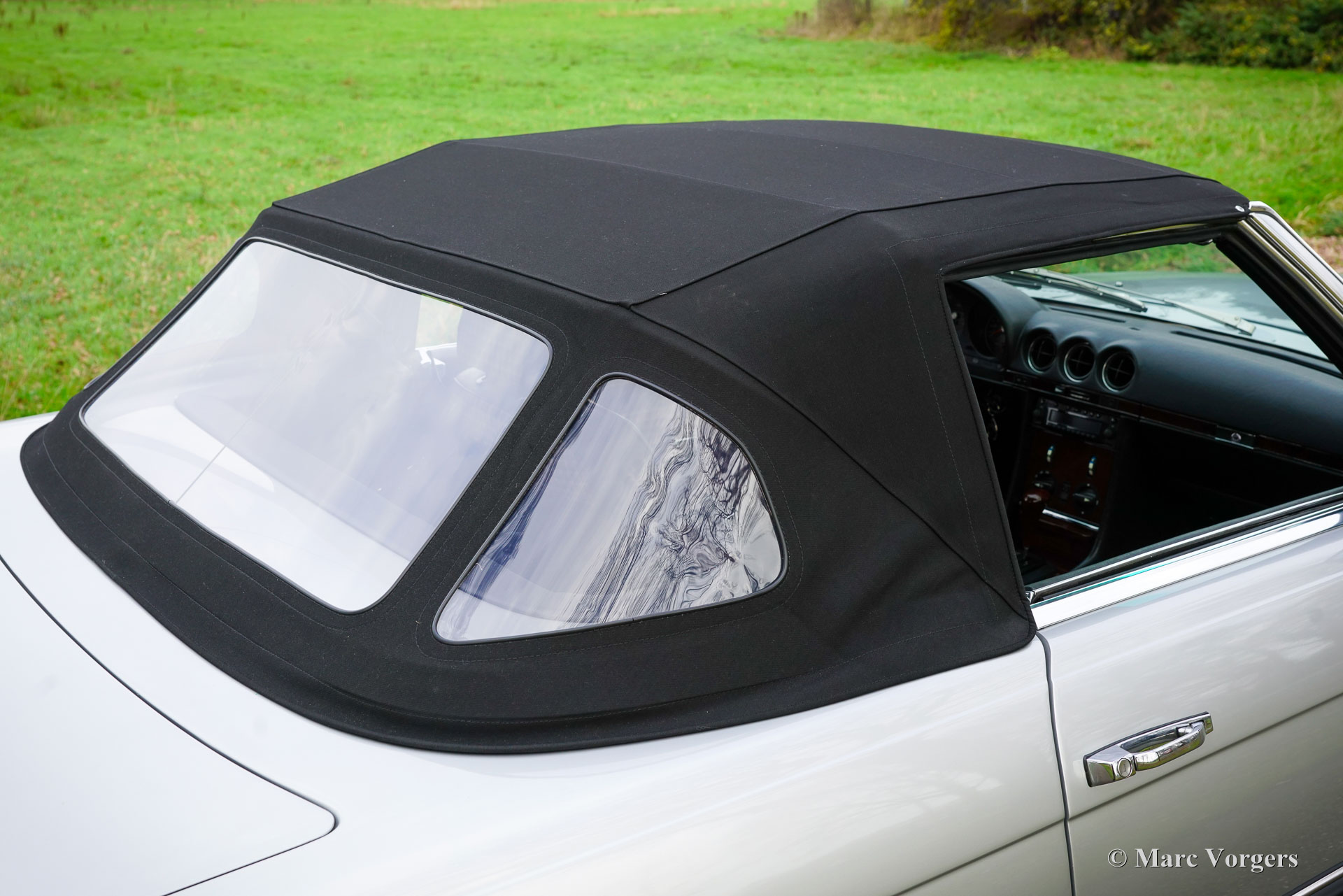 The Mercedes 280 SL, 350 SL and 450 SL are the successors of the 230 SL, 250 SL and 280 SL as we know under the nickname "Pagoda". The "Pagoda was built from the year 1963 until the year 1971, the year the new SL generation was presented to the market. Again Mercedes-Benz achieved to create a timeless design with slick, proper lines. In this shape the SL was sold for over twenty years. The "new" generation Mercedes SL is bigger, wider and heavier than its predecessor but again it was a perfect car considering construction, road holding and driving-comfort. The Mercedes-Benz SL was built with several engines. the buyer had to choose between a V8 with 3.5 or 4.5 liter cylinder capacity or a six cylinder engine with a cylinder capacity of 2.8 liter. The SL was standard equipped with a soft-top which could neatly be stowed away under a lid fully integrated in the car. Optionally the SL could be fitted with a hard-top. The hardtop can easily be fitted to the car, in a couple of minutes, with the soft-top down in place.