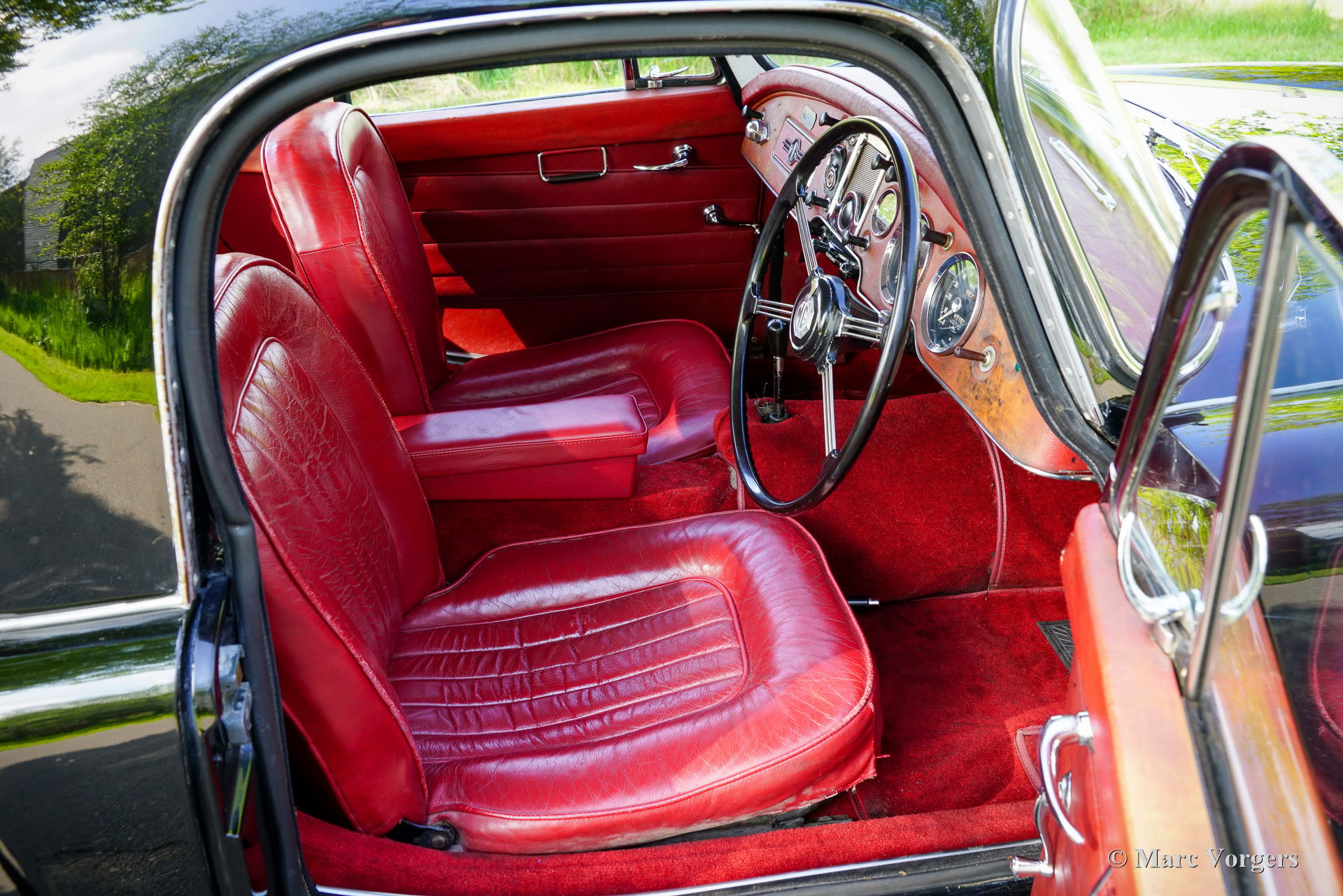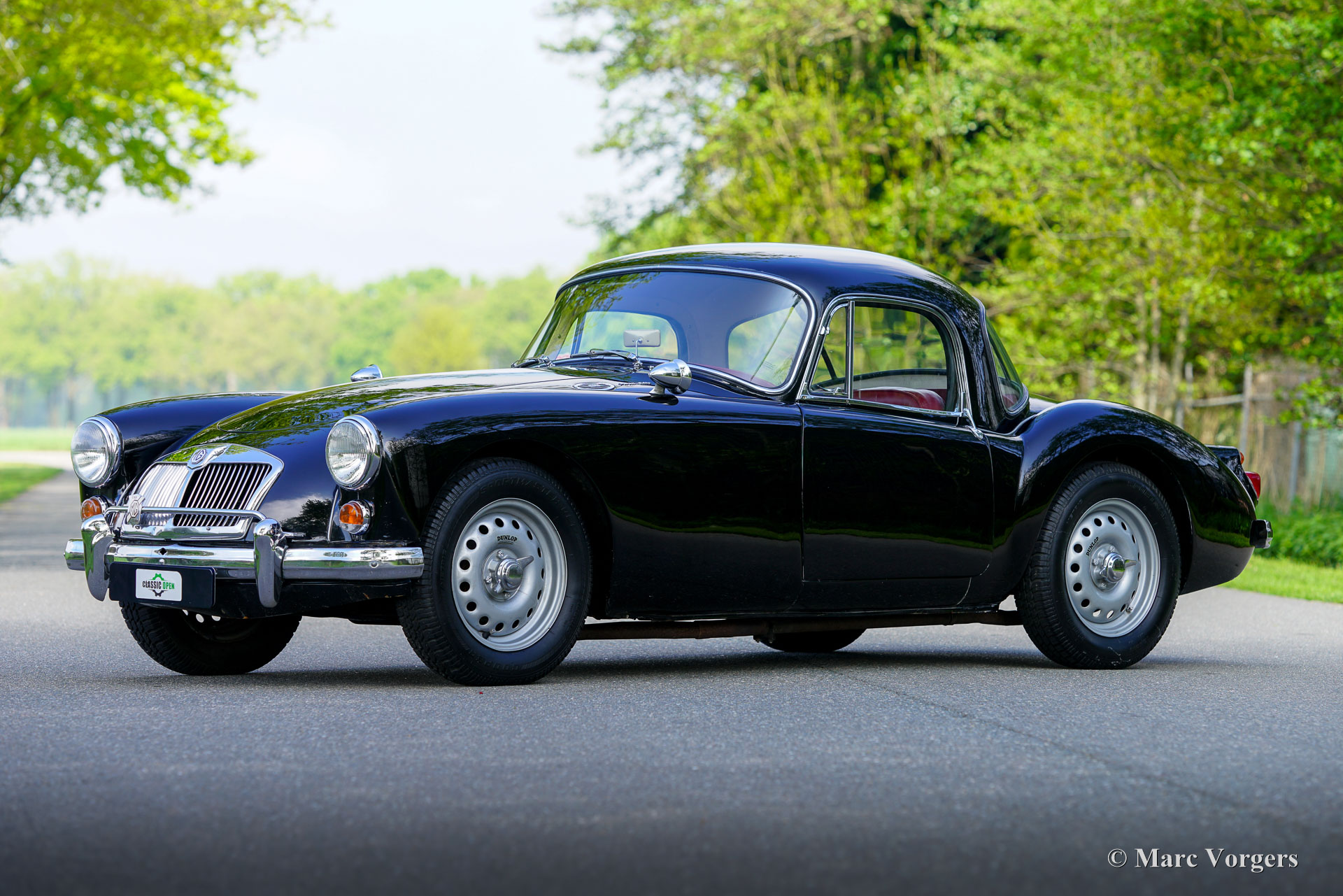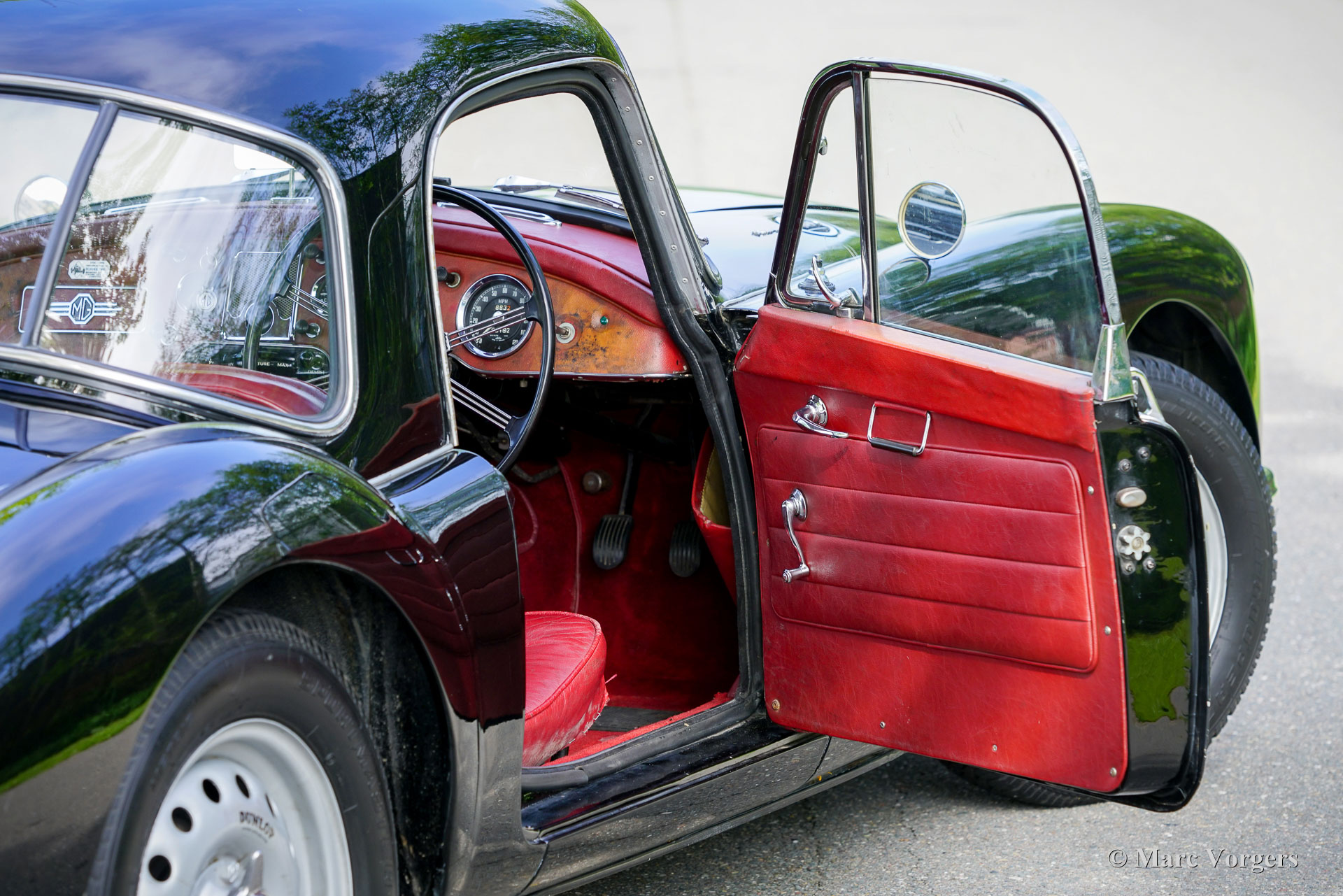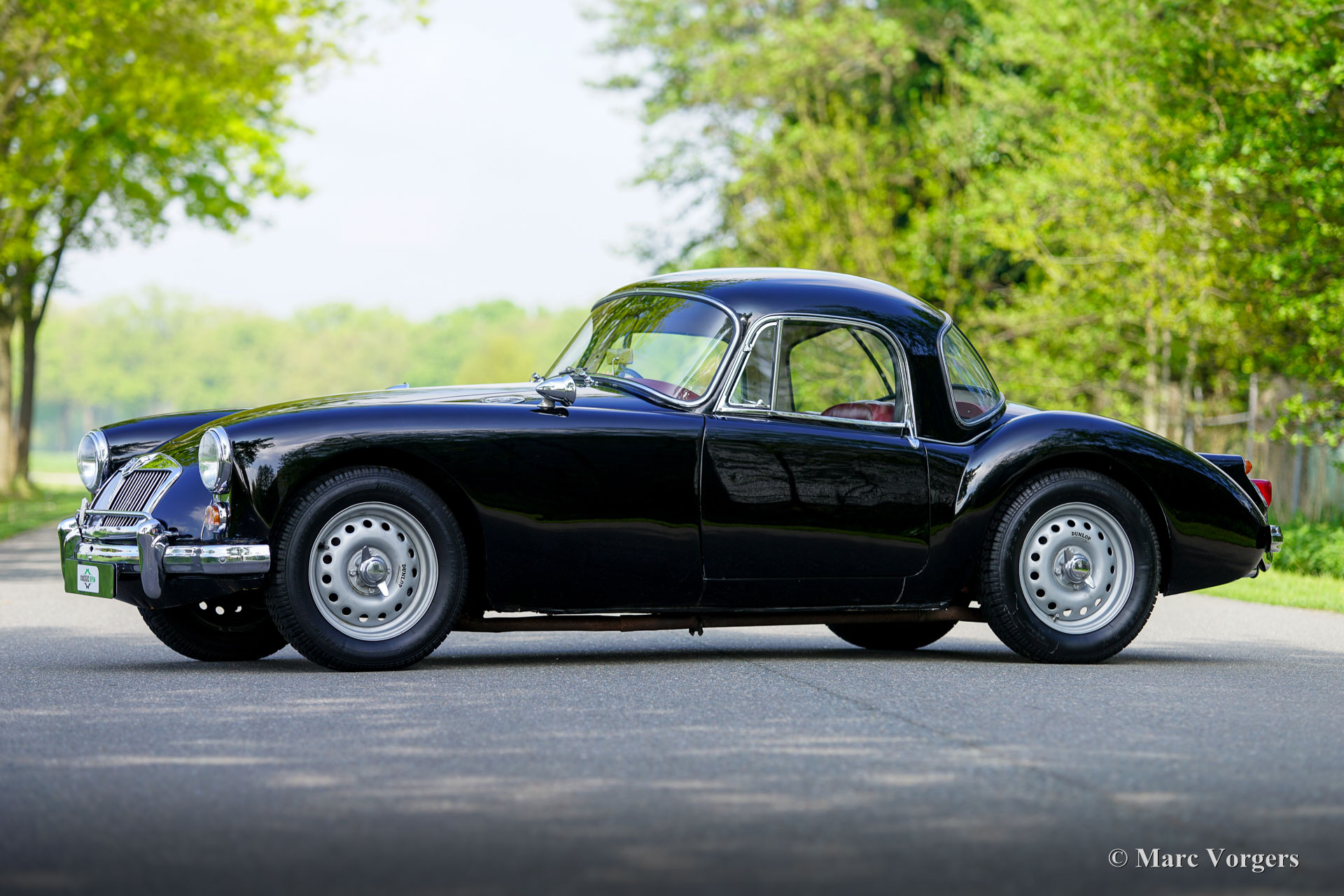 MG MGA ‘Twin-Cam’ Coupé, year 1958. Chassis (VIN) number YMH5/2328, body number MGA509. Black exterior colour combined with a red interior. Red leather seats, red vinyl door cards and dashboard trim, red wool carpet. This rare MGA Twin-Cam was sold new to South Africa; the car was road registered over a year later in January 1960. In the year 2003 the car was imported from South Africa to the Netherlands. This fantastic MGA ‘Twin-Cam’ is in a good condition showing signs of use and age. The body panels and paint show some dings, scratches, and paint flaws. The original interior was refurbished in the past (red leather was newly coloured) and is still in a nice condition, a true time capsule! Mechanically and technically, everything works and operates beautifully. The engine runs and sounds very well, and the modern 5-speed gearbox (modification) shifts snappy and precise. The 1589 cc Twin-Cam’ engine is originally fitted with twin S.U. carburettors (108 bhp output), this car features two twin choke Weber 42-DCOE carburettors adding more horsepower, performance, and an impressive engine noise! The engine is fitted with an oil-cooler. The MGA ‘Twin-Cam’ was one of the first cars fitted with the early Dunlop disk brakes at the front wheels. The brakes were upgraded with Willwood brake callipers. The MGA ‘Twin-Cam’ is a rare MG model of which only 2111 cars were built from 1957 until 1959. The MGA Twin-Cam cars can be easily distinguished by the special Dunlop ‘centre-lock’ wheels and the ‘Twin-Cam’ badges on both sides of the bonnet. With the bonnet open spectators are treated by the magnificent and impressive looks of the ‘Twin-Cam’ cylinder head! This is an MGA “Twin-Cam’ in very good driver condition, the MGA ‘holy grail’ and a rare find for the enthusiast!