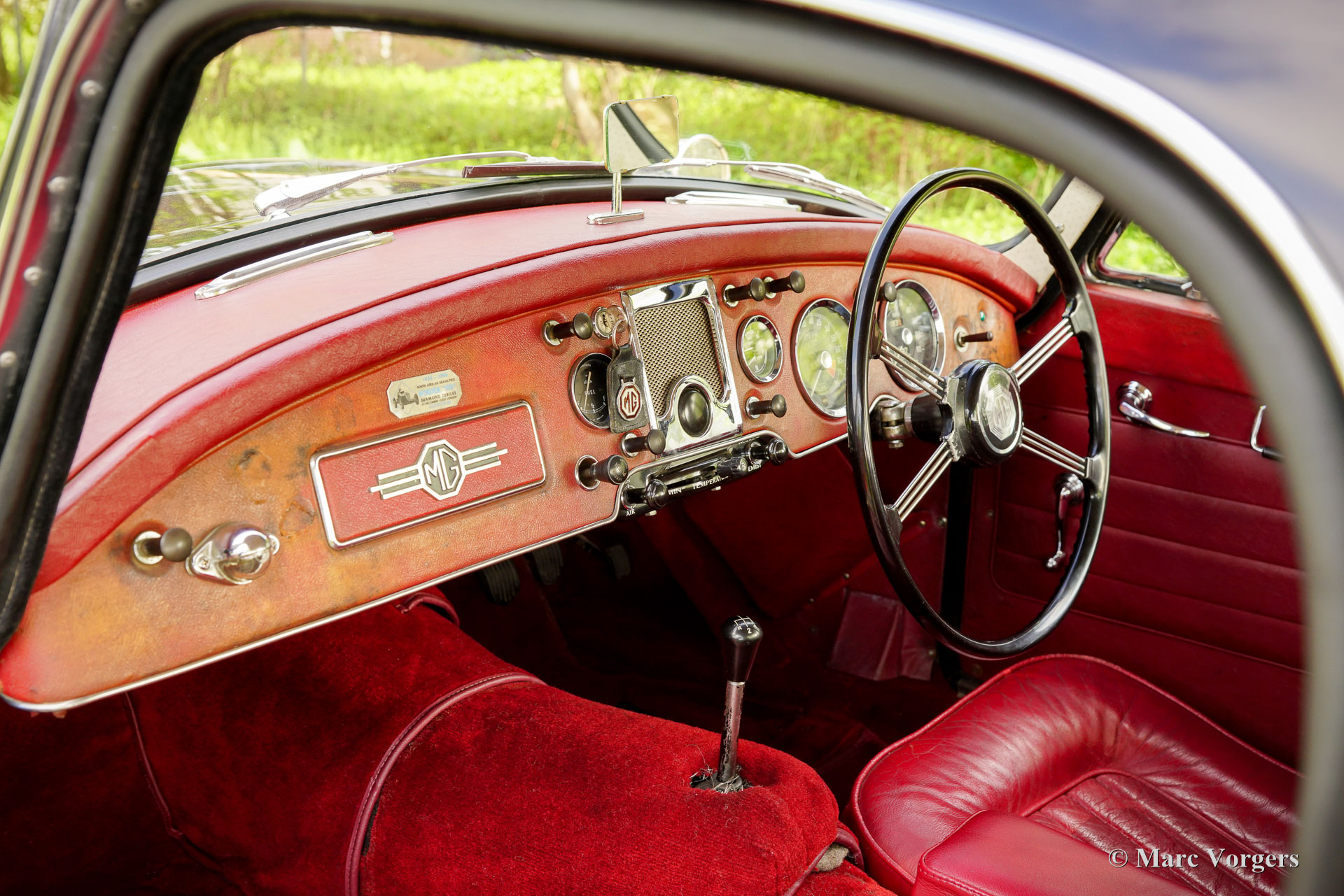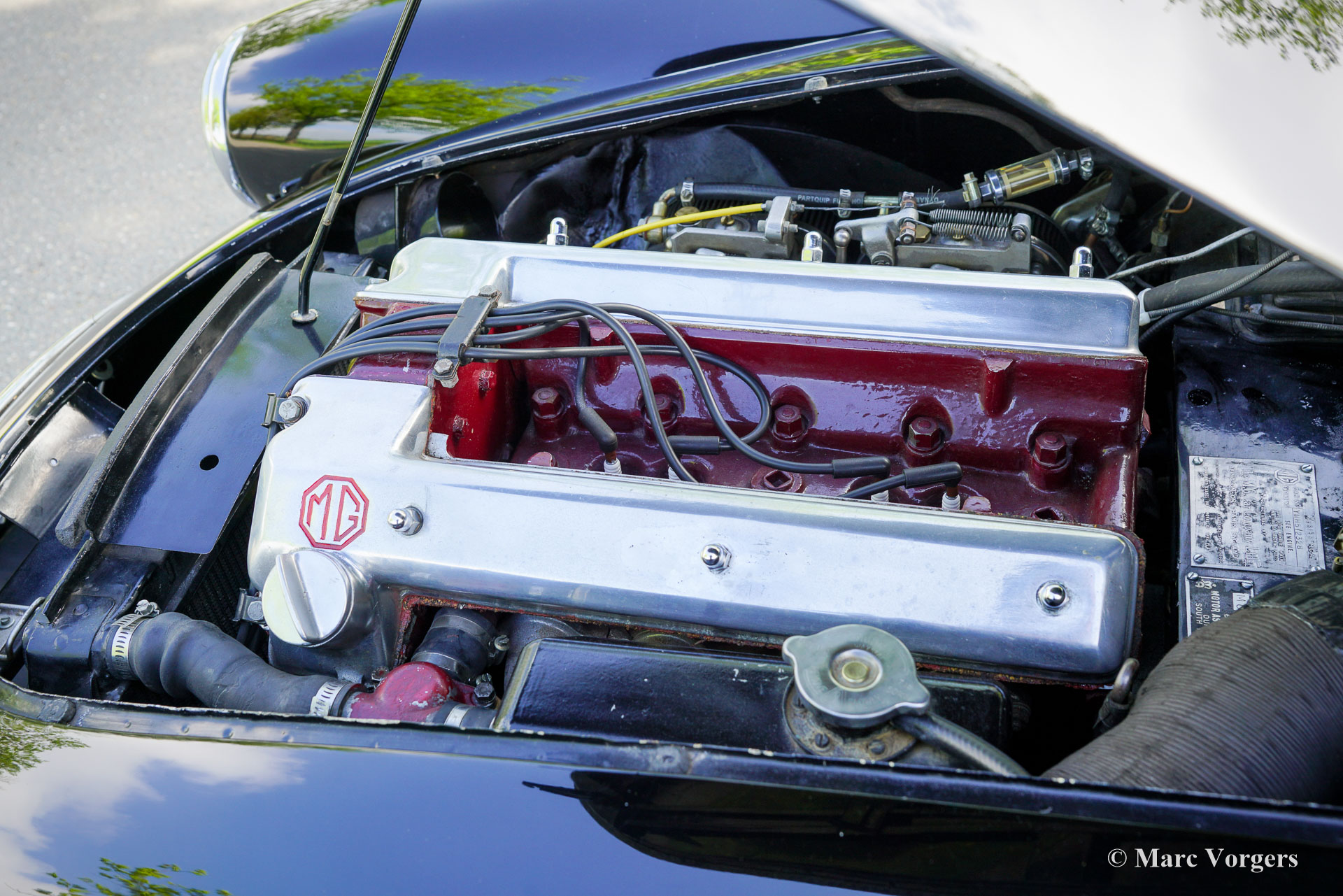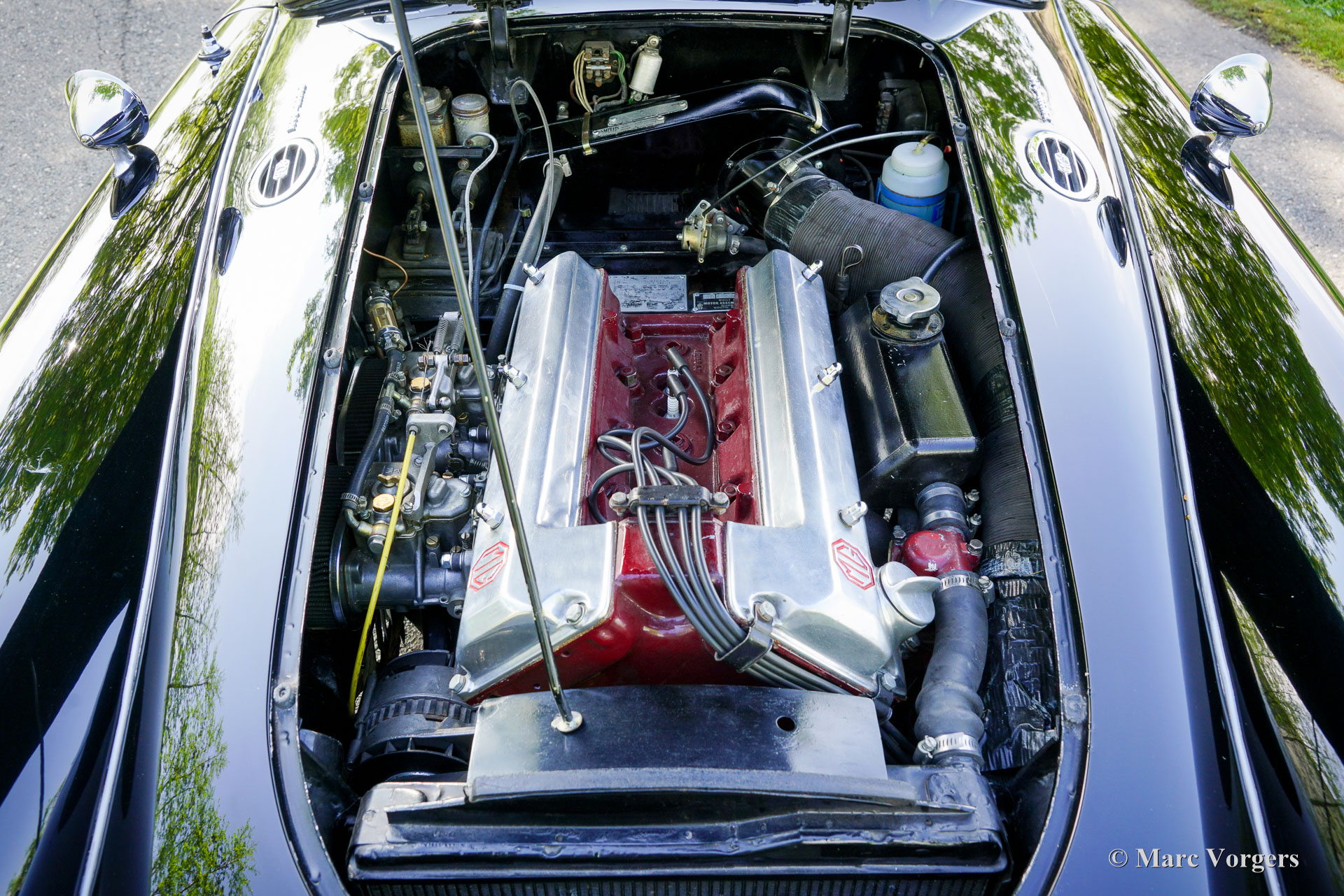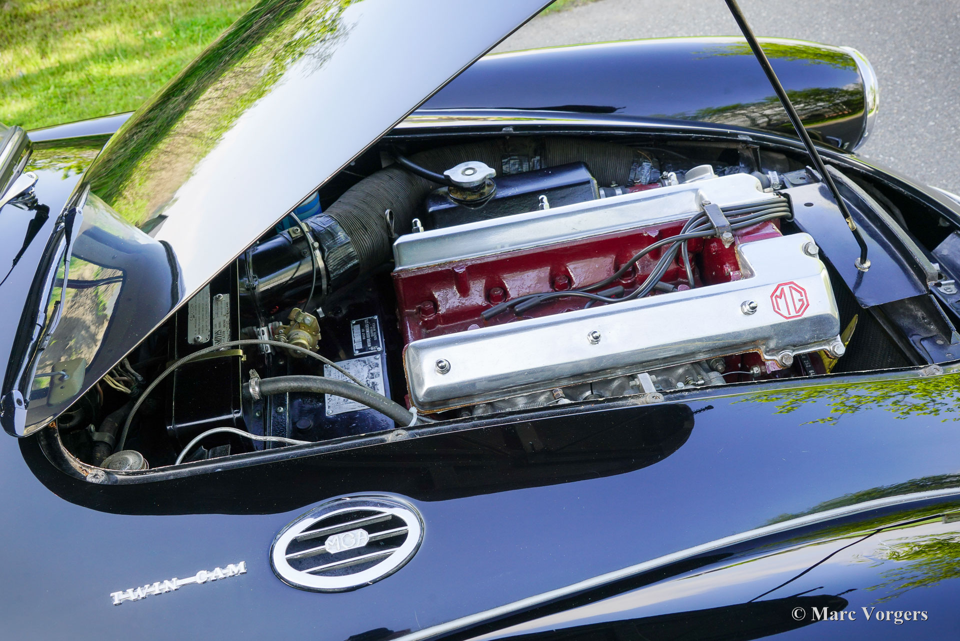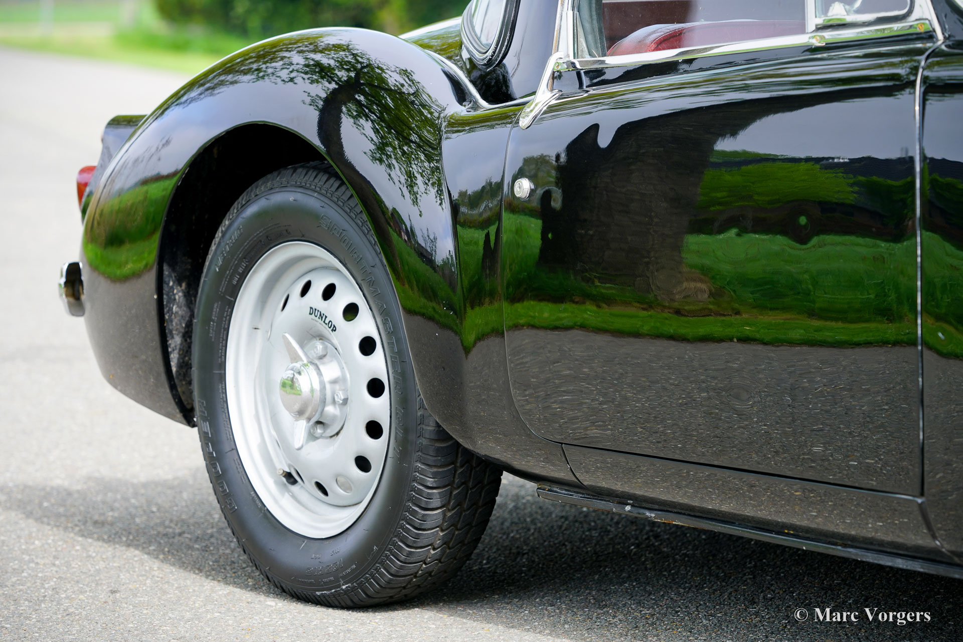 MG MGA ‘Twin-Cam’ Coupé, year 1958. Chassis (VIN) number YMH5/2328, body number MGA509. Black exterior colour combined with a red interior. Red leather seats, red vinyl door cards and dashboard trim, red wool carpet. This rare MGA Twin-Cam was sold new to South Africa; the car was road registered over a year later in January 1960. In the year 2003 the car was imported from South Africa to the Netherlands. This fantastic MGA ‘Twin-Cam’ is in a good condition showing signs of use and age. The body panels and paint show some dings, scratches, and paint flaws. The original interior was refurbished in the past (red leather was newly coloured) and is still in a nice condition, a true time capsule! Mechanically and technically, everything works and operates beautifully. The engine runs and sounds very well, and the modern 5-speed gearbox (modification) shifts snappy and precise. The 1589 cc Twin-Cam’ engine is originally fitted with twin S.U. carburettors (108 bhp output), this car features two twin choke Weber 42-DCOE carburettors adding more horsepower, performance, and an impressive engine noise! The engine is fitted with an oil-cooler. The MGA ‘Twin-Cam’ was one of the first cars fitted with the early Dunlop disk brakes at the front wheels. The brakes were upgraded with Willwood brake callipers. The MGA ‘Twin-Cam’ is a rare MG model of which only 2111 cars were built from 1957 until 1959. The MGA Twin-Cam cars can be easily distinguished by the special Dunlop ‘centre-lock’ wheels and the ‘Twin-Cam’ badges on both sides of the bonnet. With the bonnet open spectators are treated by the magnificent and impressive looks of the ‘Twin-Cam’ cylinder head! This is an MGA “Twin-Cam’ in very good driver condition, the MGA ‘holy grail’ and a rare find for the enthusiast!
