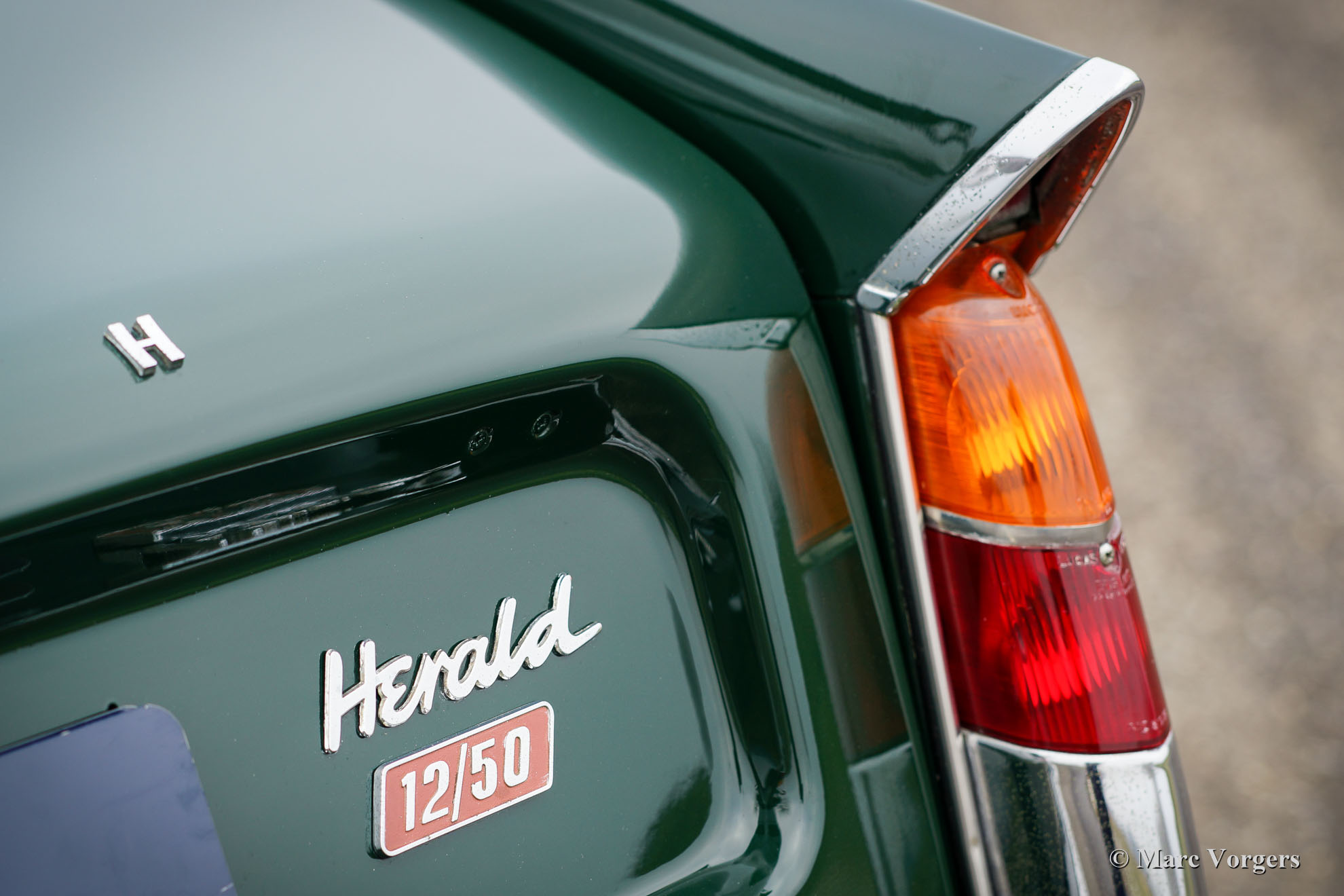 The Triumph Herald 1200 was sold from 1961 until 1970. The Herald 1200 was the bigger motorized sister of the 948 cc Herald which was in production since 1959. Just like the older Herald models the 1200 was available as a two door saloon and convertible. A month after these models a station wagon (estate) was presented. On the 1200 disc brakes were available optionally. On the 1963 Herald 12/50 disc brakes became standard equipment. The Triumph Herald is built upon a sturdy chassis featuring all independent suspension all round. The car has a very narrow turning circle of about 8 metres!