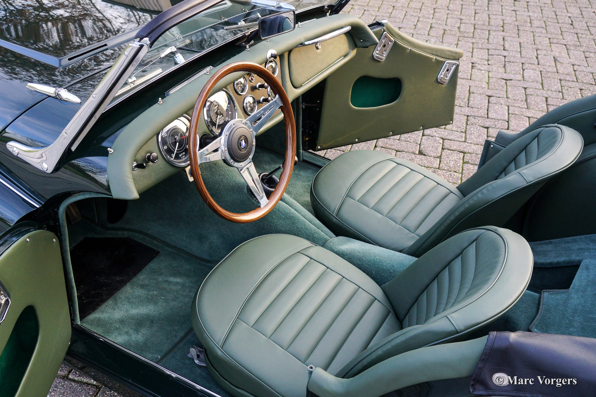 The Triumph TR 3 is a no nonsense sports car; very robust, simple and reliable, a true British sports car all over. The TR 3 was the first production car, off factory, equipped with disc brakes on the front-wheels. The engine was a Standard Vanguard based, cast-iron, long stroke, in-line four cylinder with a displacement of 1991cc. The TR 3 engine was equipped with two carburettors giving a power-output of almost 100 bhp.