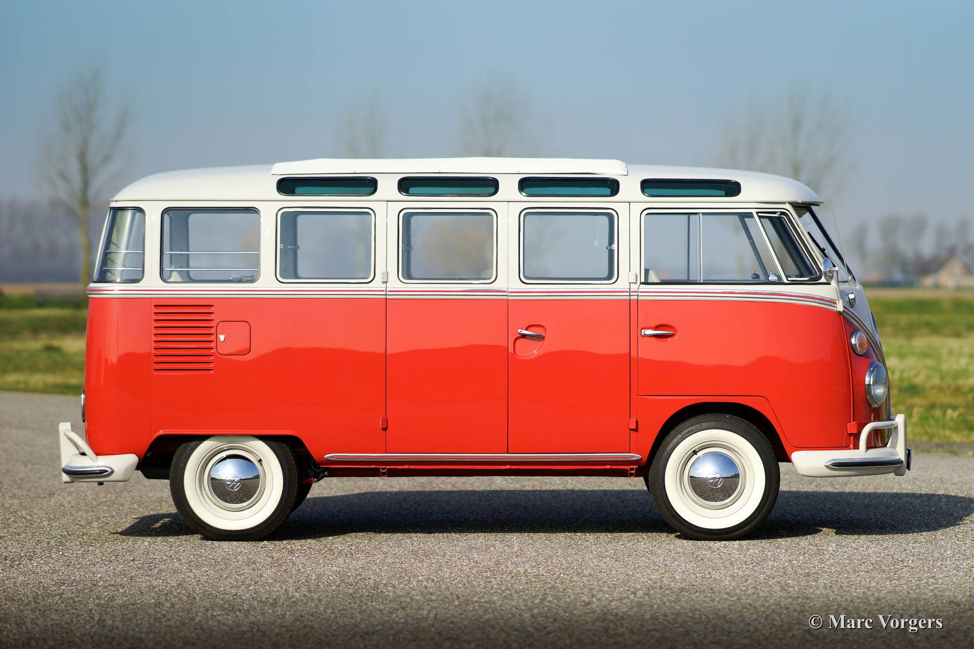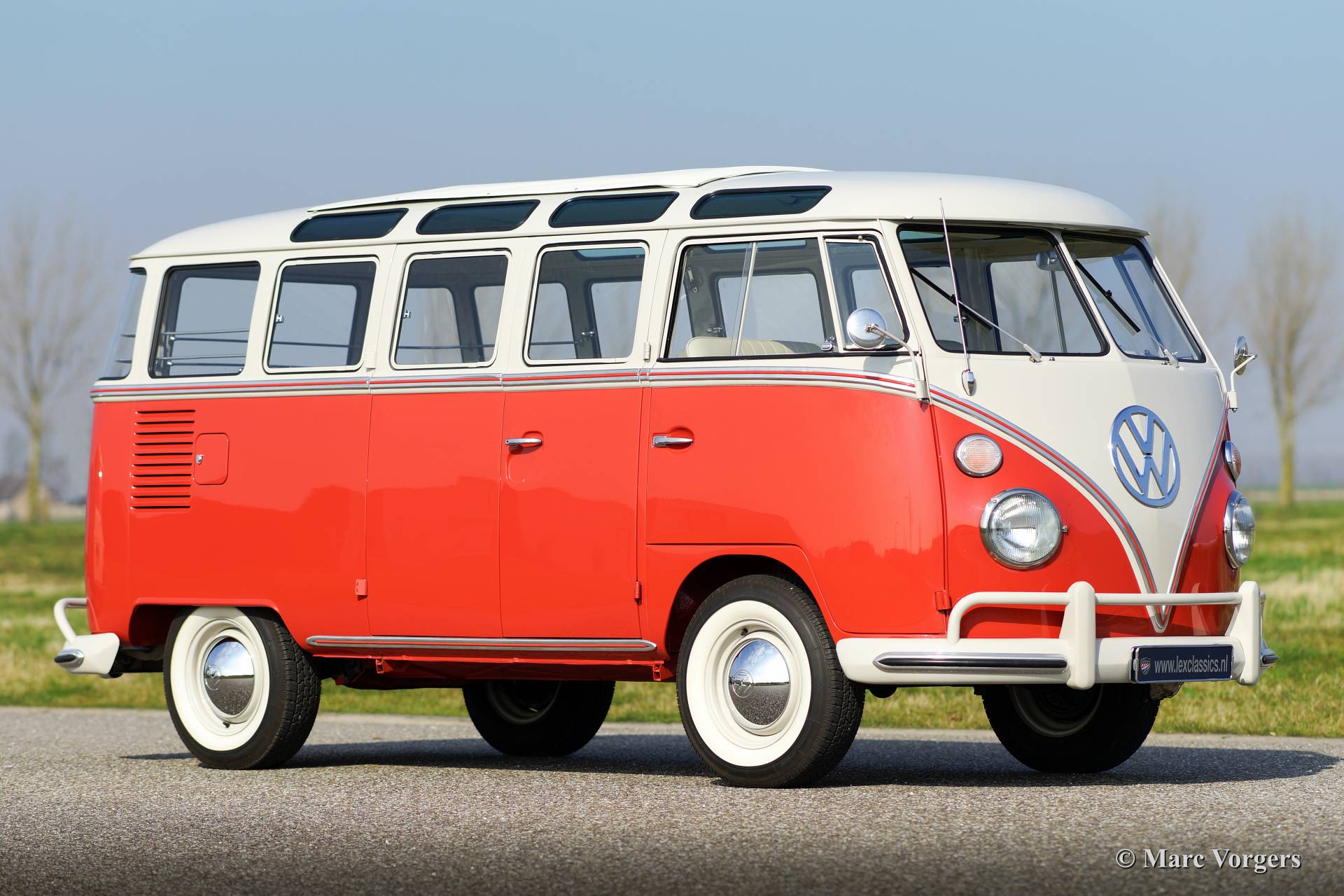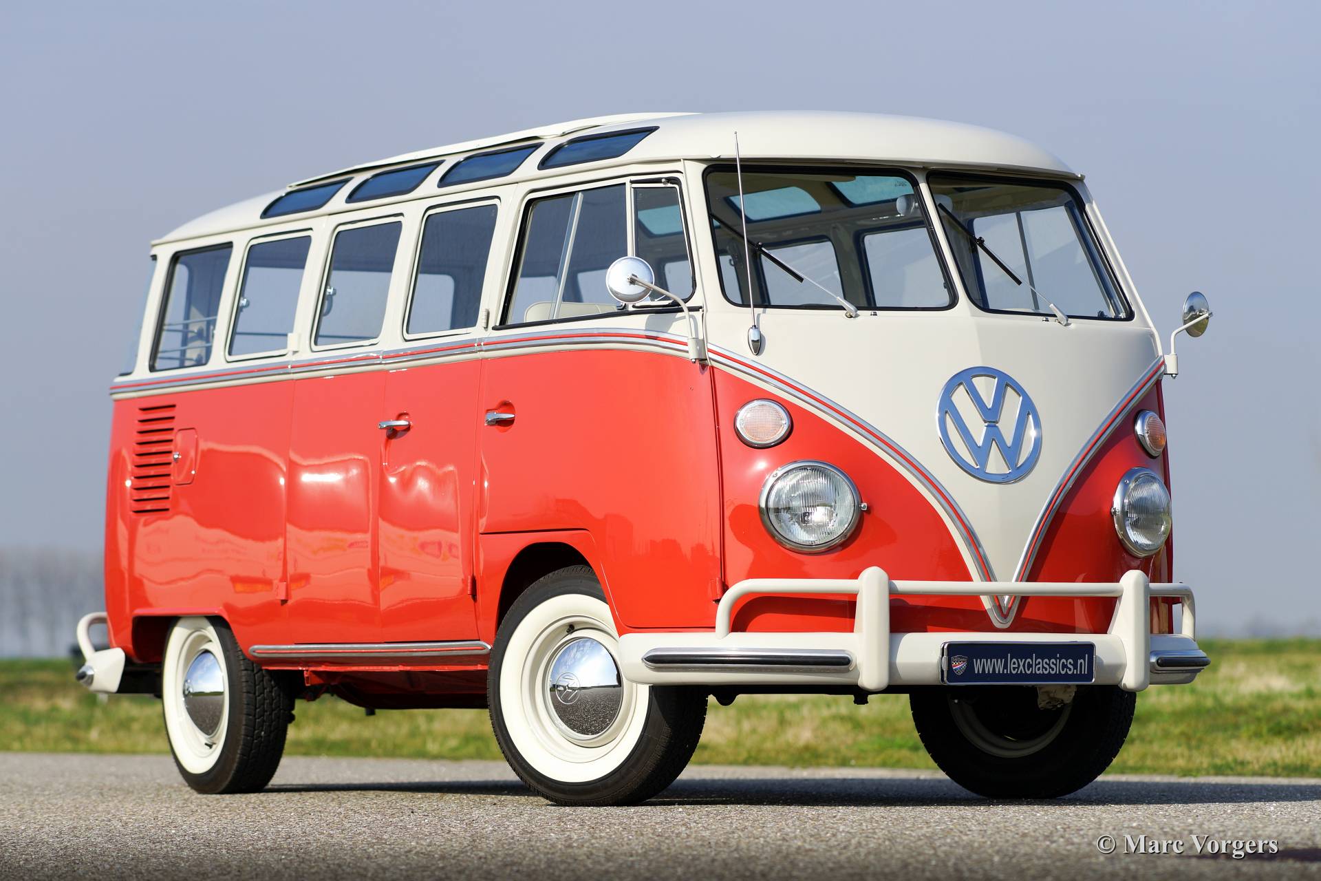 Volkswagen T1 Samba, year 1963. Chassis number 1082XXX. Colour ‘Sealing Wax Red’ with a ‘pearl white’ roof top and a ‘basalt grey’ vinyl interior. This magnificent Volkswagen Samba ‘bus’ is a sought after 23 window T1 Samba ‘deluxe’ model. The ‘deluxe’ features a very large sliding/folding roof! This VW ‘bus’ was imported from the USA to the Netherlands in the year 2008. Then a extensive restoration started in which costs nor effort were saved to reach perfection. The restoration was finished in the year 2013. The automobile has driven 114 kilometres ever since. This 23 window Samba bus in in superb (excellent+) condition, concours!