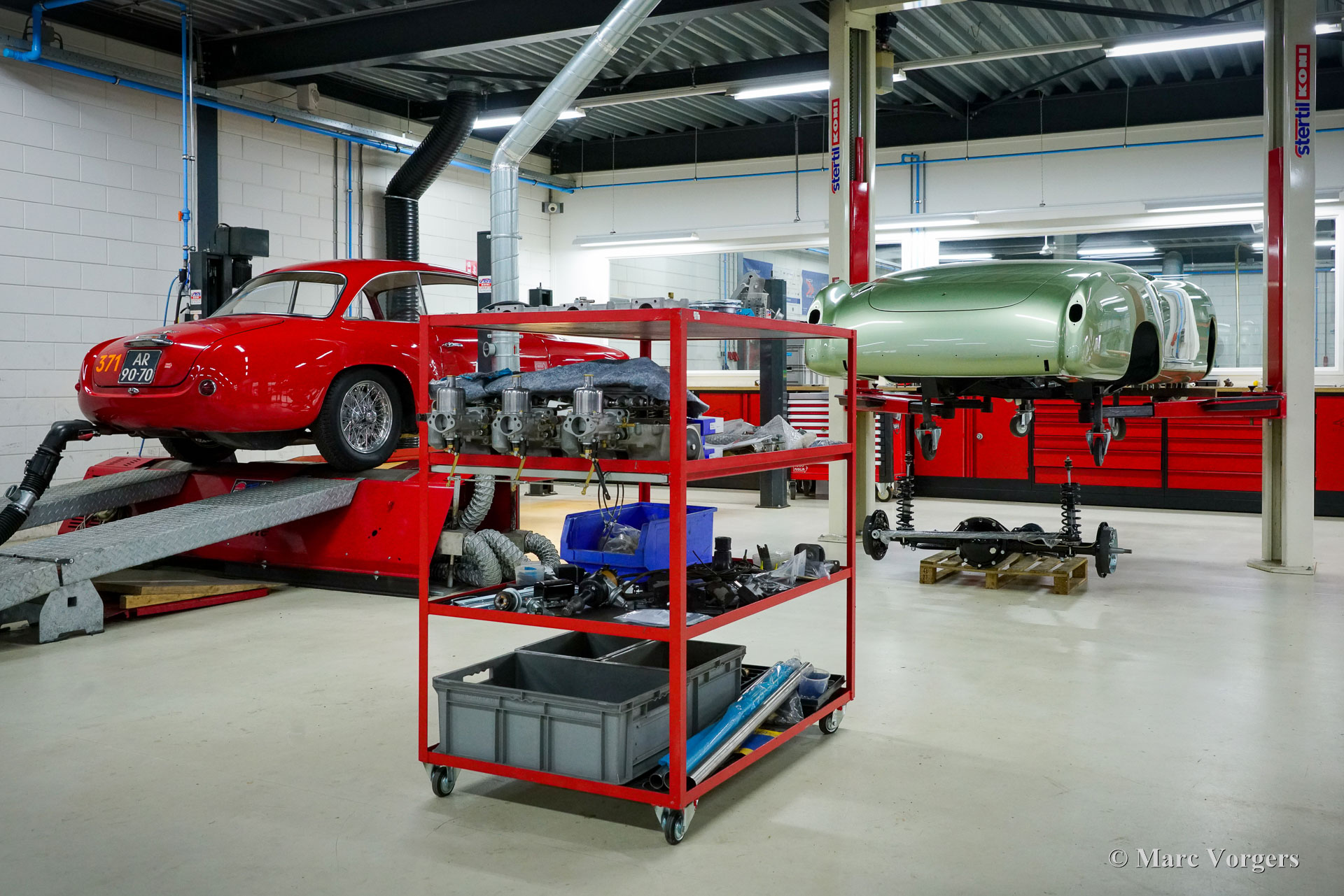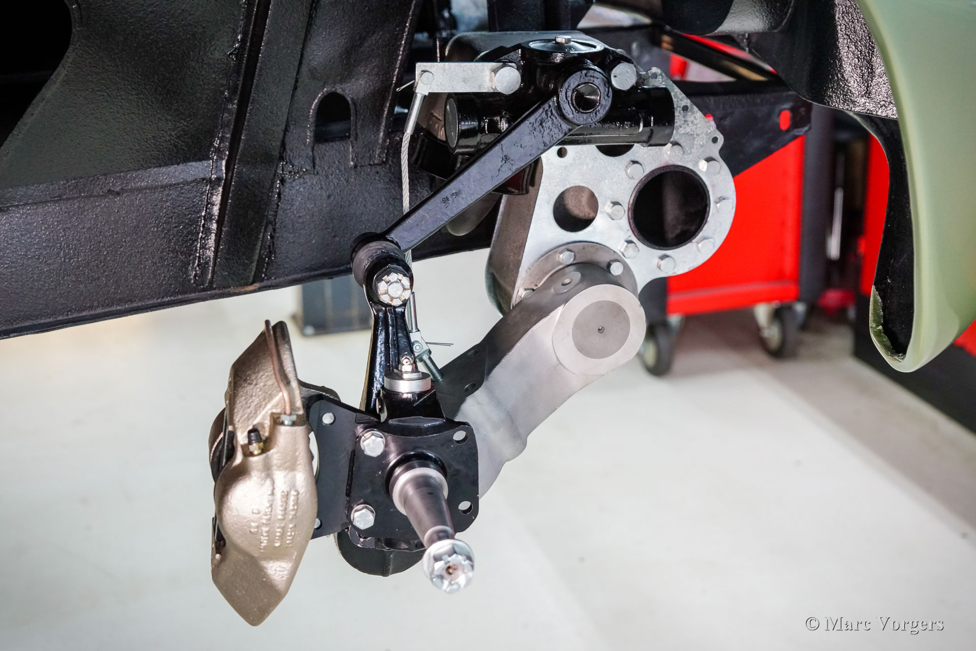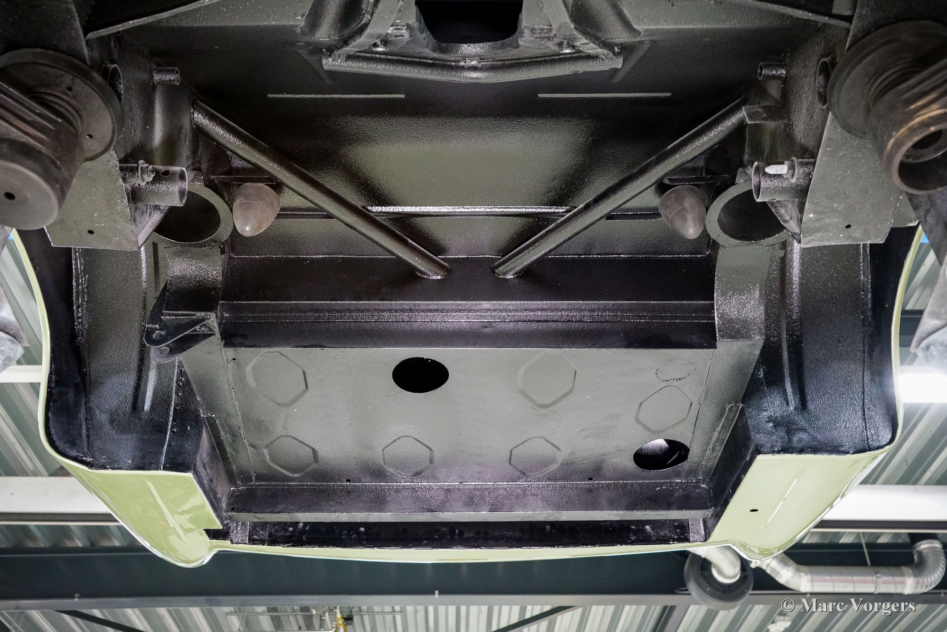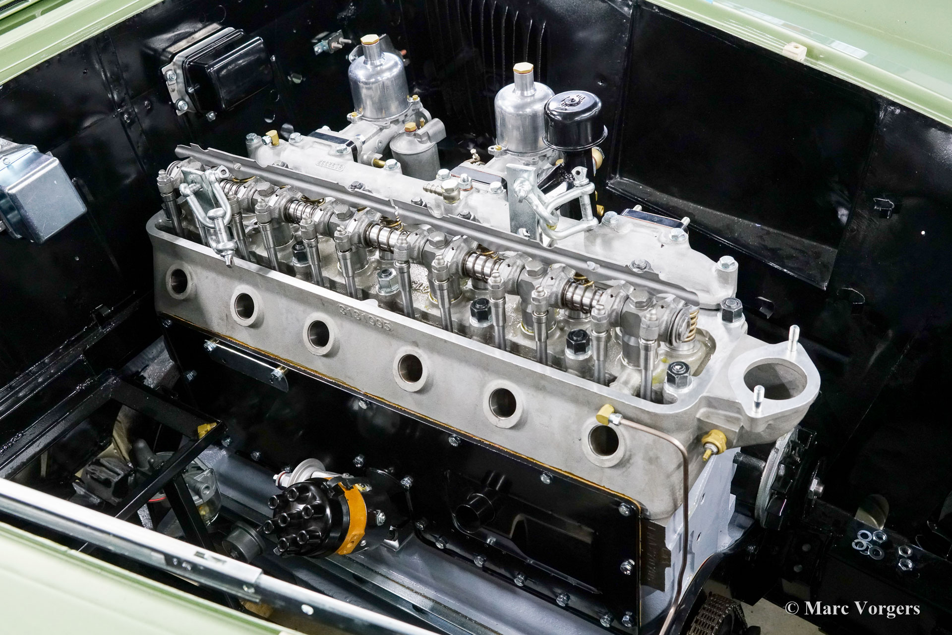 This rare and gorgeous 1953 Nash Healey Pininfarina Roadster was sold new in the USA. A few years back the automobile was found in a complete and still fully functional condition. The car was finished in white with a two-tone blue/ grey interior and a black vinyl hood. All the original details were still present. The Nash Healey was completely dismantled, and our craftsmen had to work many hours restoring the sheet metal of the bodywork starting from the bare metal. After that, the bodywork was passed over in the skilled hands of our partner paint shop to receive a top-class light green metallic 2K paint system and a gloss black protective underbody coating. In the meantime, all the mechanical components were cleaned, overhauled, and rebuilt by the specialists in our technical workshop. The 4.1 Litre straight six engine was slightly modified to deliver a few more horsepower, and to increase the reliability. A new induction manifold was engineered and cast to accommodate 3 S.U. H6 carburettors instead of the original two Carter carbs. The gearbox, differential, rear axle, and drive axle were overhauled and painted in the correct colours. The very special Healey independent front suspension system was also fully rebuilt. This wonderful Nash Healey project is being carried out to the highest concours standards of perfection.