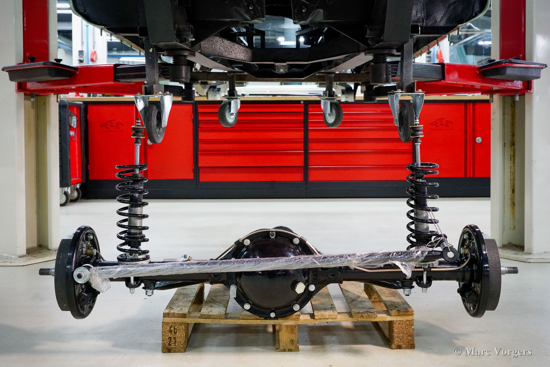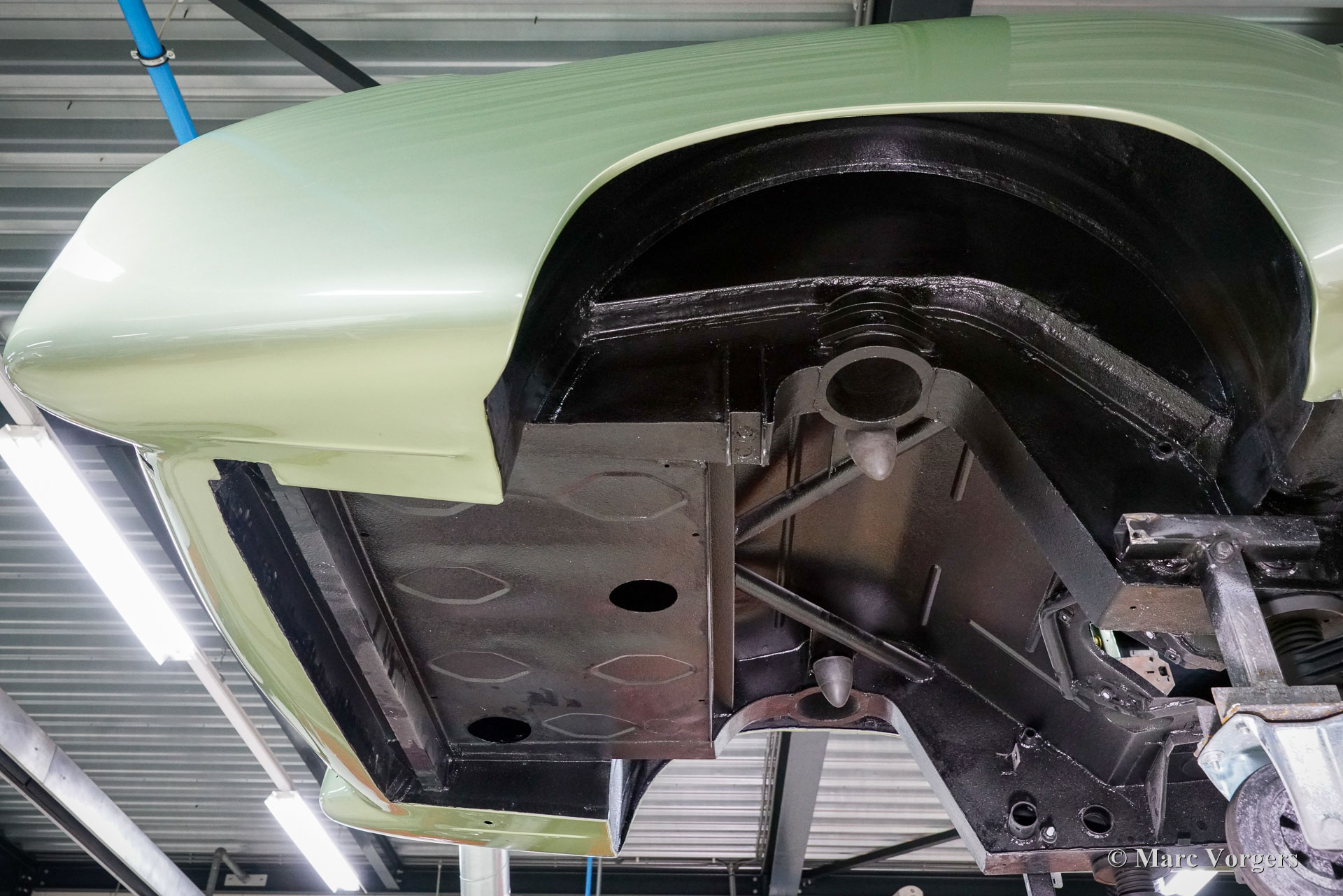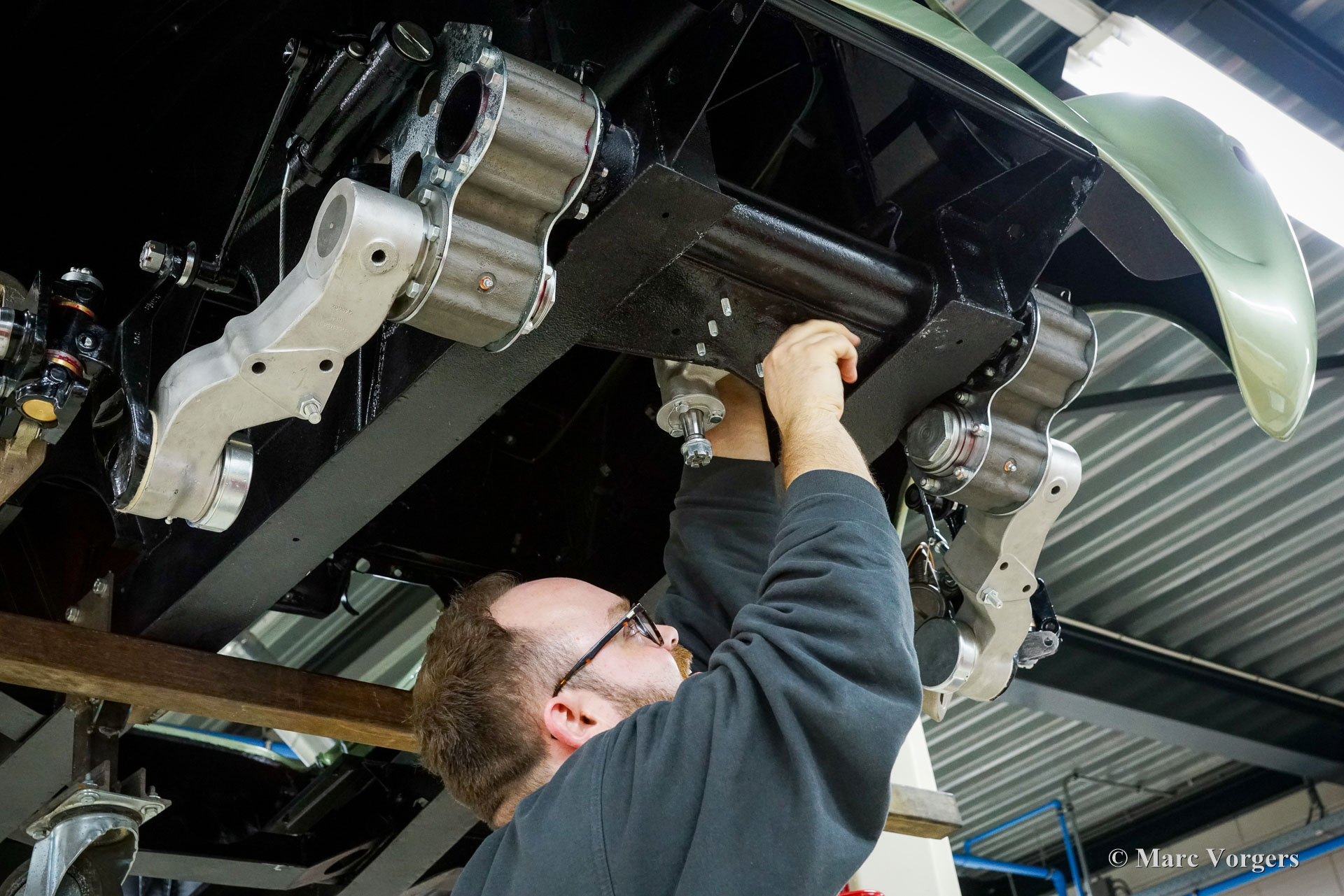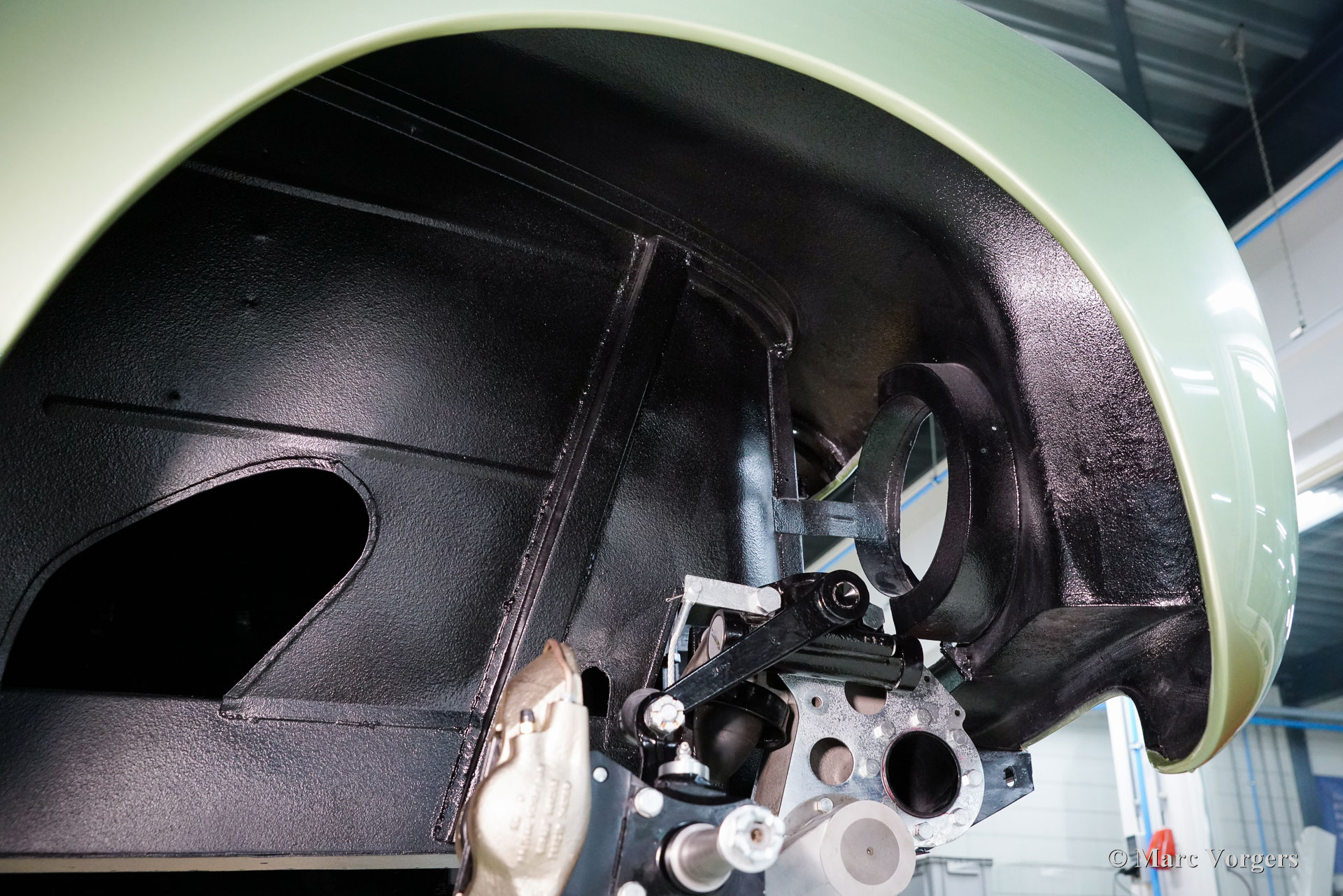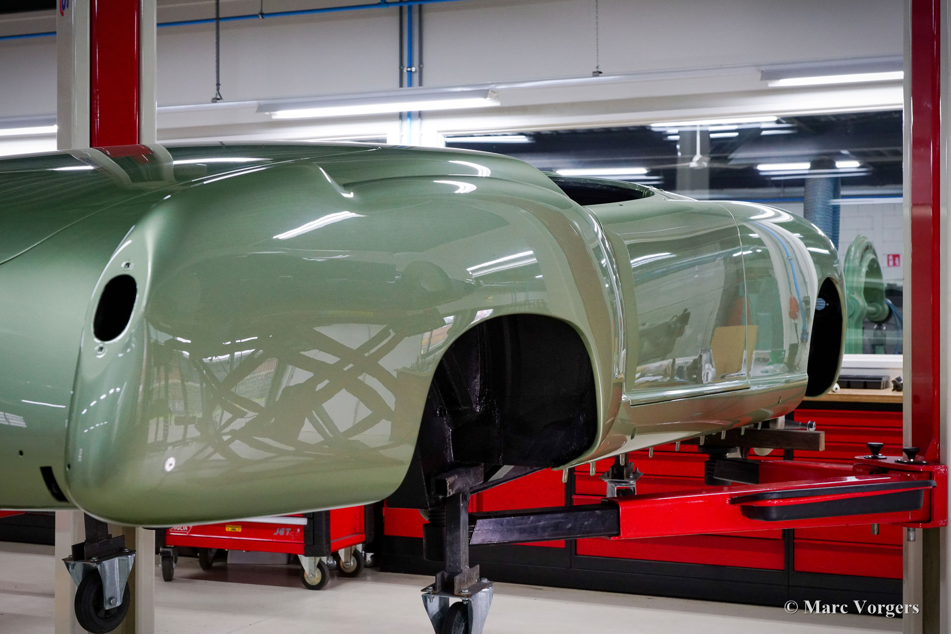 This rare and gorgeous 1953 Nash Healey Pininfarina Roadster was sold new in the USA. A few years back the automobile was found in a complete and still fully functional condition. The car was finished in white with a two-tone blue/ grey interior and a black vinyl hood. All the original details were still present. The Nash Healey was completely dismantled, and our craftsmen had to work many hours restoring the sheet metal of the bodywork starting from the bare metal. After that, the bodywork was passed over in the skilled hands of our partner paint shop to receive a top-class light green metallic 2K paint system and a gloss black protective underbody coating. In the meantime, all the mechanical components were cleaned, overhauled, and rebuilt by the specialists in our technical workshop. The 4.1 Litre straight six engine was slightly modified to deliver a few more horsepower, and to increase the reliability. A new induction manifold was engineered and cast to accommodate 3 S.U. H6 carburettors instead of the original two Carter carbs. The gearbox, differential, rear axle, and drive axle were overhauled and painted in the correct colours. The very special Healey independent front suspension system was also fully rebuilt. This wonderful Nash Healey project is being carried out to the highest concours standards of perfection.